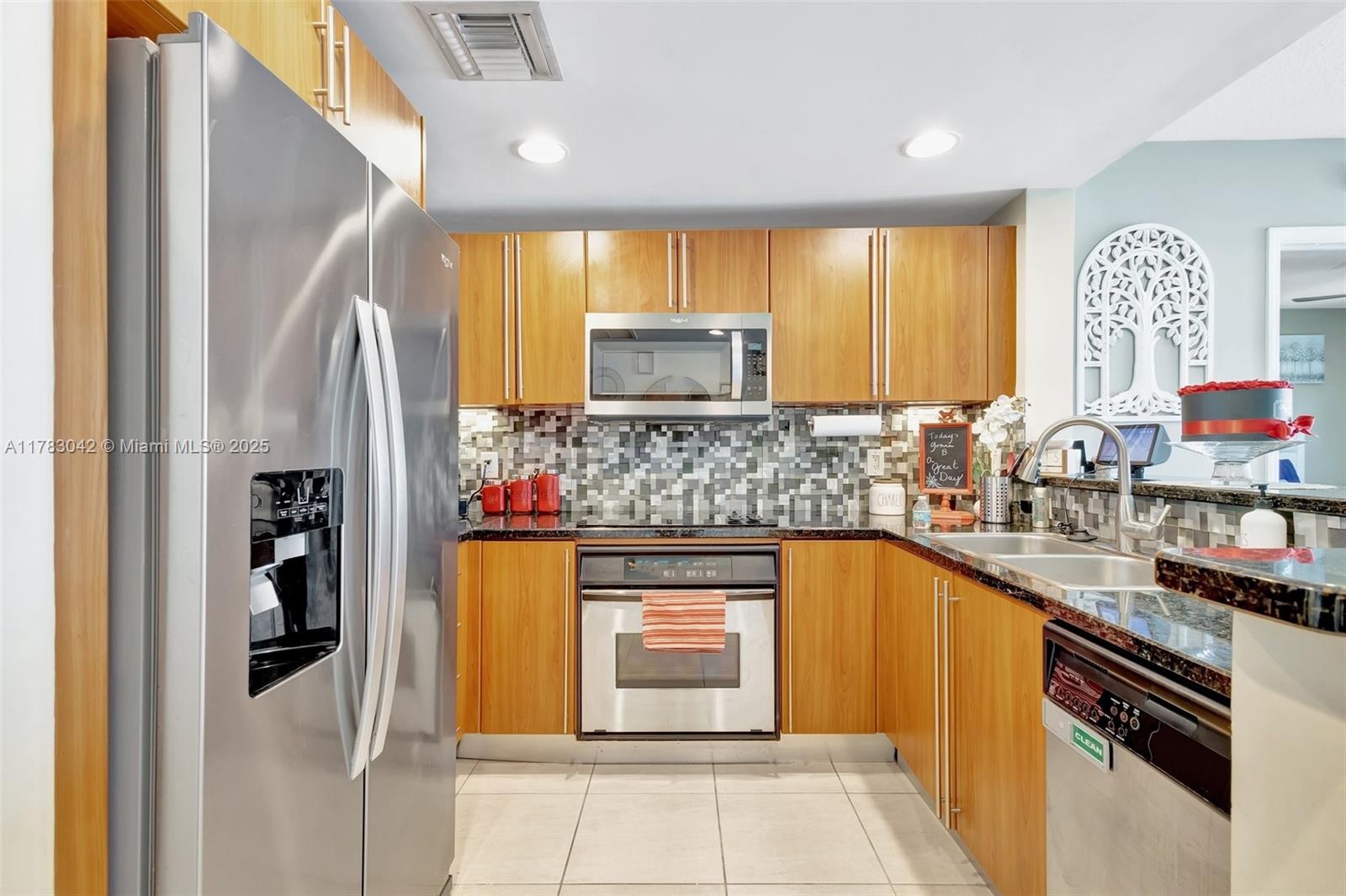 Beautifully maintained 2 bedroom two bath unit, Designer lighting and very light and bright, kitchen with granite countertops and breakfast bar, stainless steel appliances and designer back splash, new SMART ...