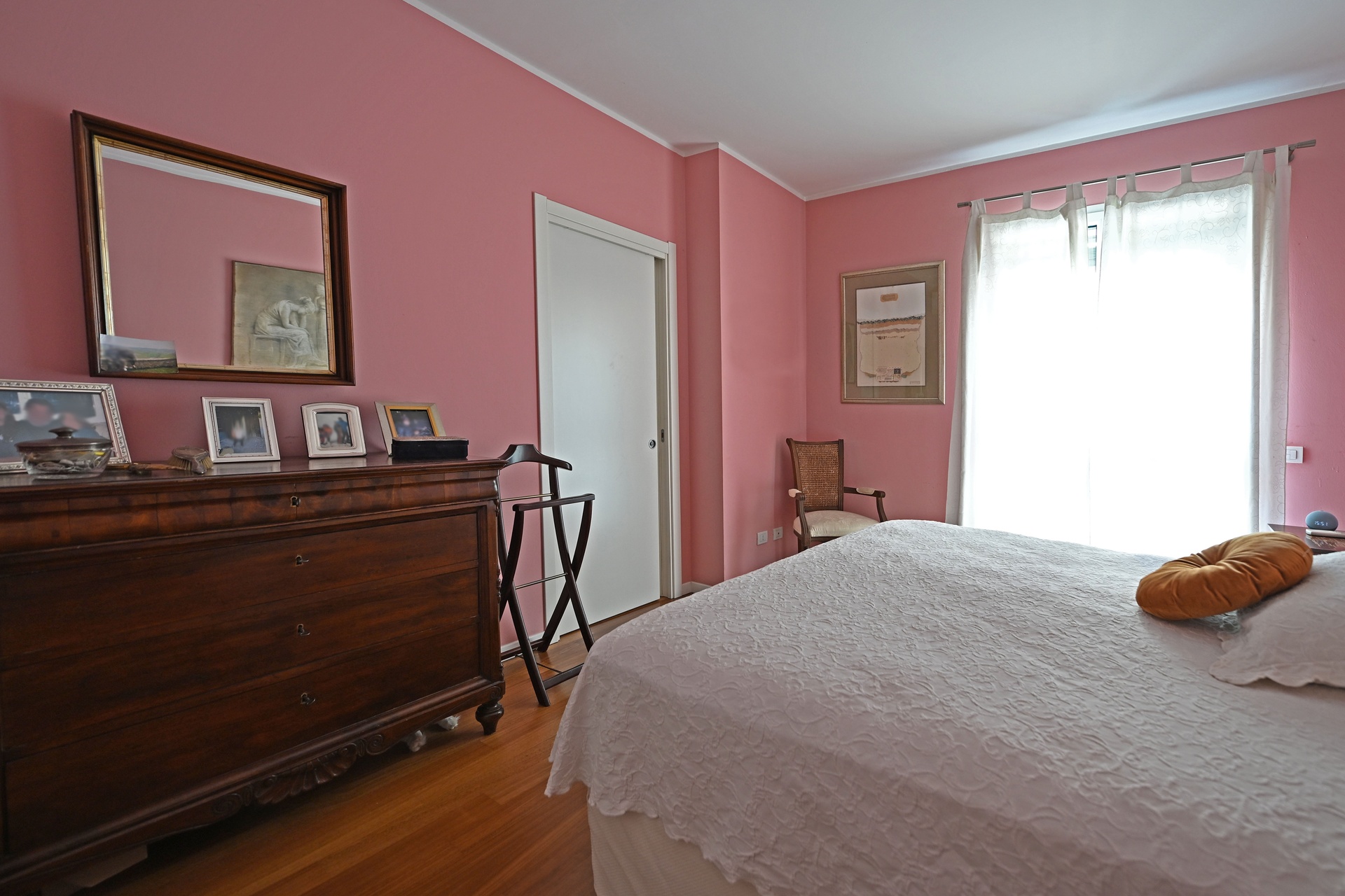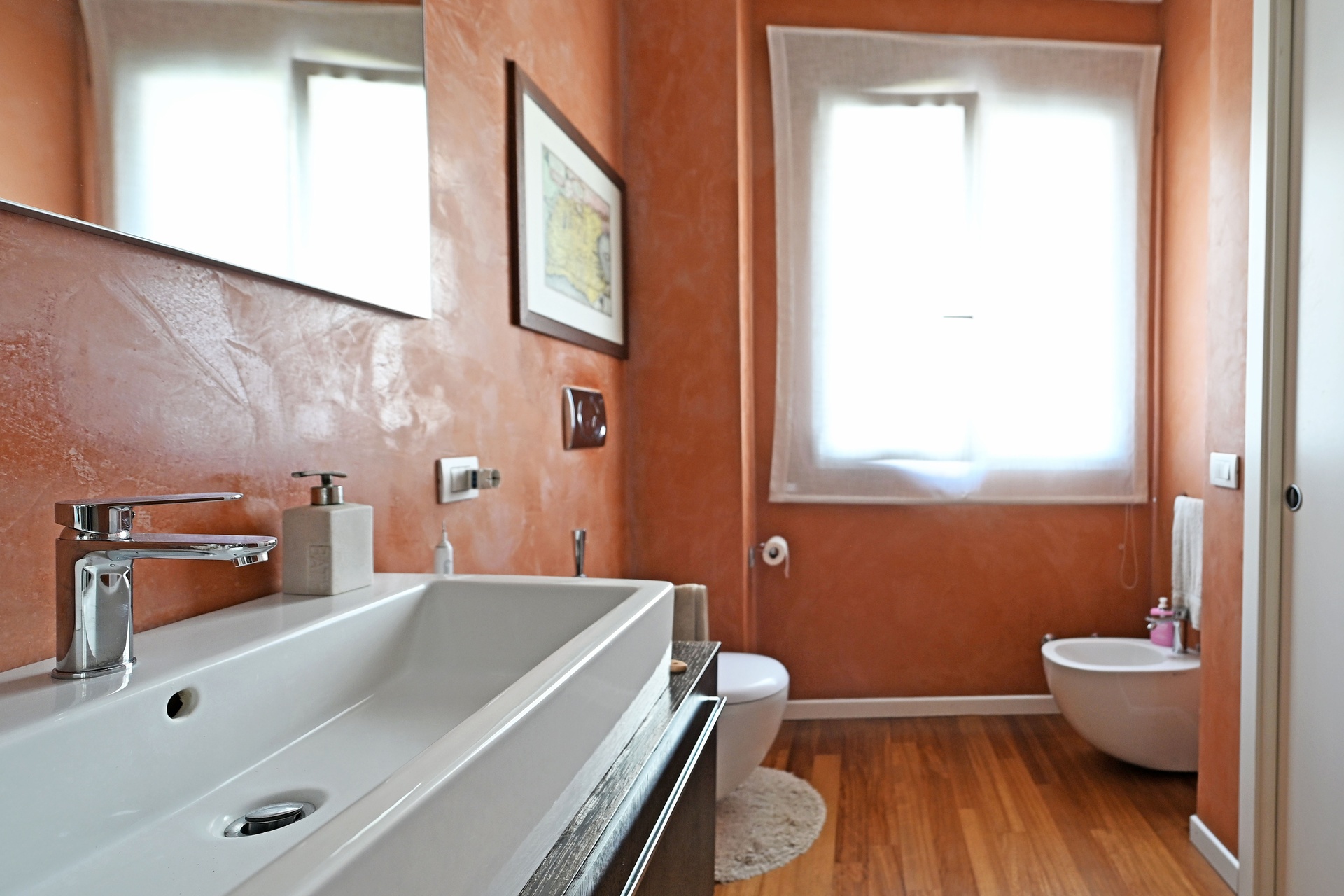 The elegant parquet flooring, also found in the bathrooms, creates a warm and welcoming atmosphere.