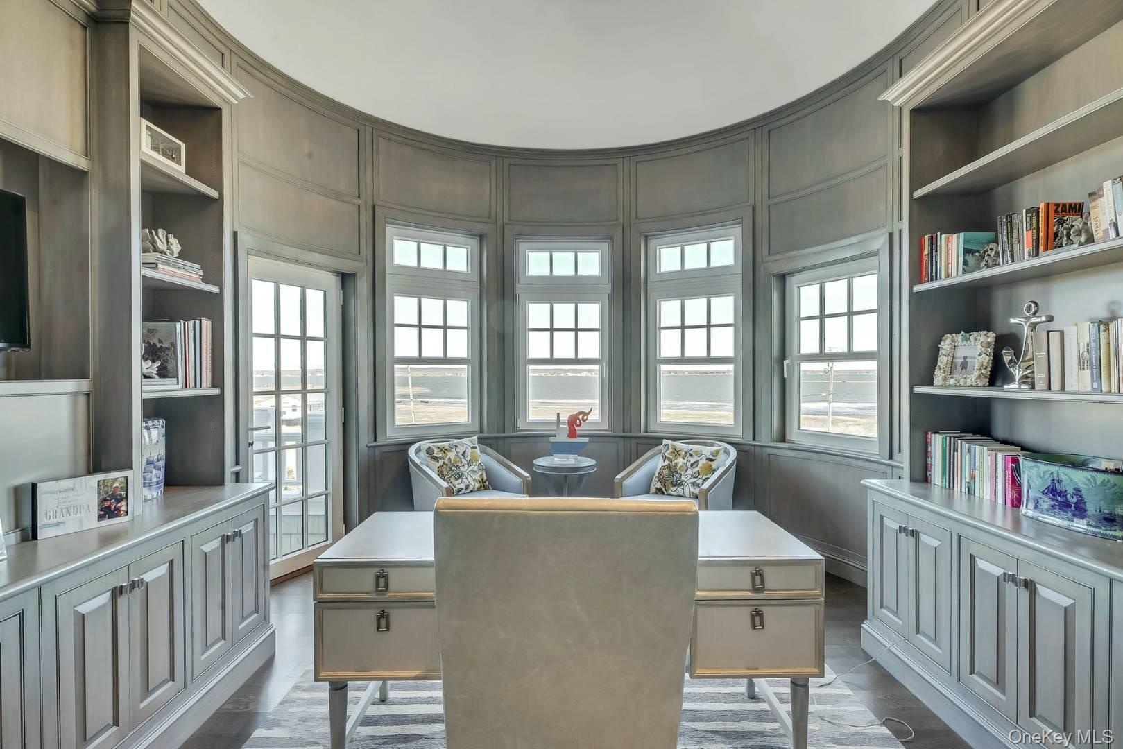 Outstanding state-of-the-art professionally decorated 7300SF oceanfront home. Each of the 7 en-suite bedrooms have panoramic ocean and bay views. The home has a grand entry foyer with a majestic sweeping staircase and opens to a double-sized living room (one of 2 living rooms) with a fireplace, wet bar, and side poolroom. French doors lead to an extra large oceanfront heated Gunite pool with a jacuzzi and is surrounded by ample decking and designer outdoor furniture. The level also has 3 en-suite bedrooms, an elevator, a back staircase, and stairs into the 2 car garage. The 2nd floor has an enormous Master suite with floor-to-ceiling windows showcasing an expansive ocean view. There are stunning built-ins and a wet bar. The stunning bath offers magnificent bay views, a large soaking tub, a large shower, and double sinks. and bidet all with top-line fixtures. Additionally on this floor are the additional bedrooms, the 2nd beautifully designed and professionally decorated living room with a fireplace. and balcony to step out onto and see the panoramic view of miles of an unpopulated Oceanfront and additionally the most amazing sunsets over the bay. The adjoining large dining room also has sweeping views of the ocean. It leads into the gourmet, designer, eat-in kitchen with superior top-line appliances offering all the" bells and whistles". The breakfast nook has semicircle floor-to-ceiling windows with mile long views of the ocean waves breaking on the wide beach. This floor has a wood-paneled office with built-ins and also a semicircle wall of windows with remarkable unobstructed bay vistas. An ample elevator travels to all floors. The 2 acre property has 180' of premiere ocean frontage and beautiful open bayscapes. There is a 3rd floor "widow's walk" with the most breathtaking bay and ocean vistas. Add to this a very private setting and you have an exceptional and rare summer rental.