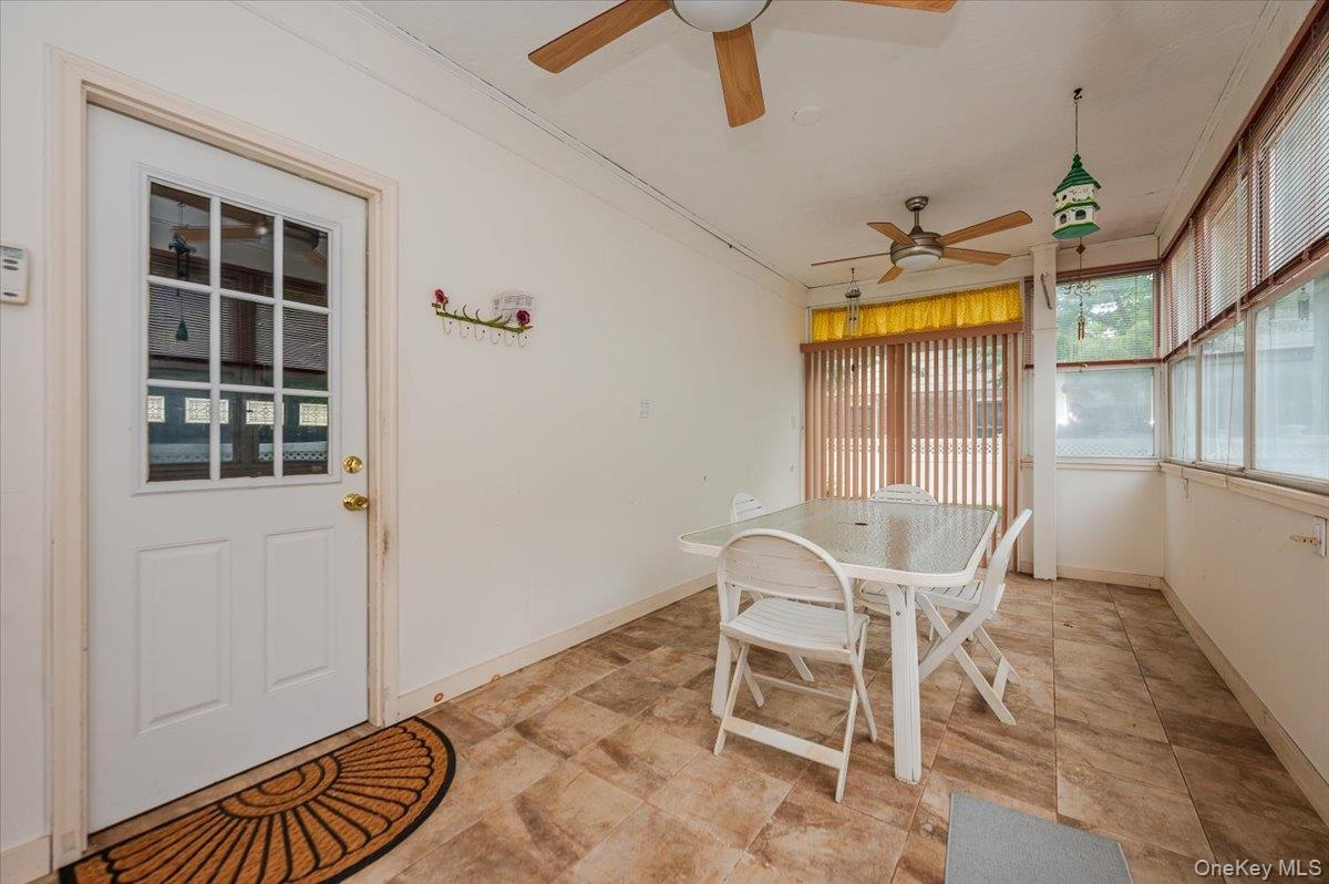 - Sunroom / solarium featuring baseboards and ornamental molding