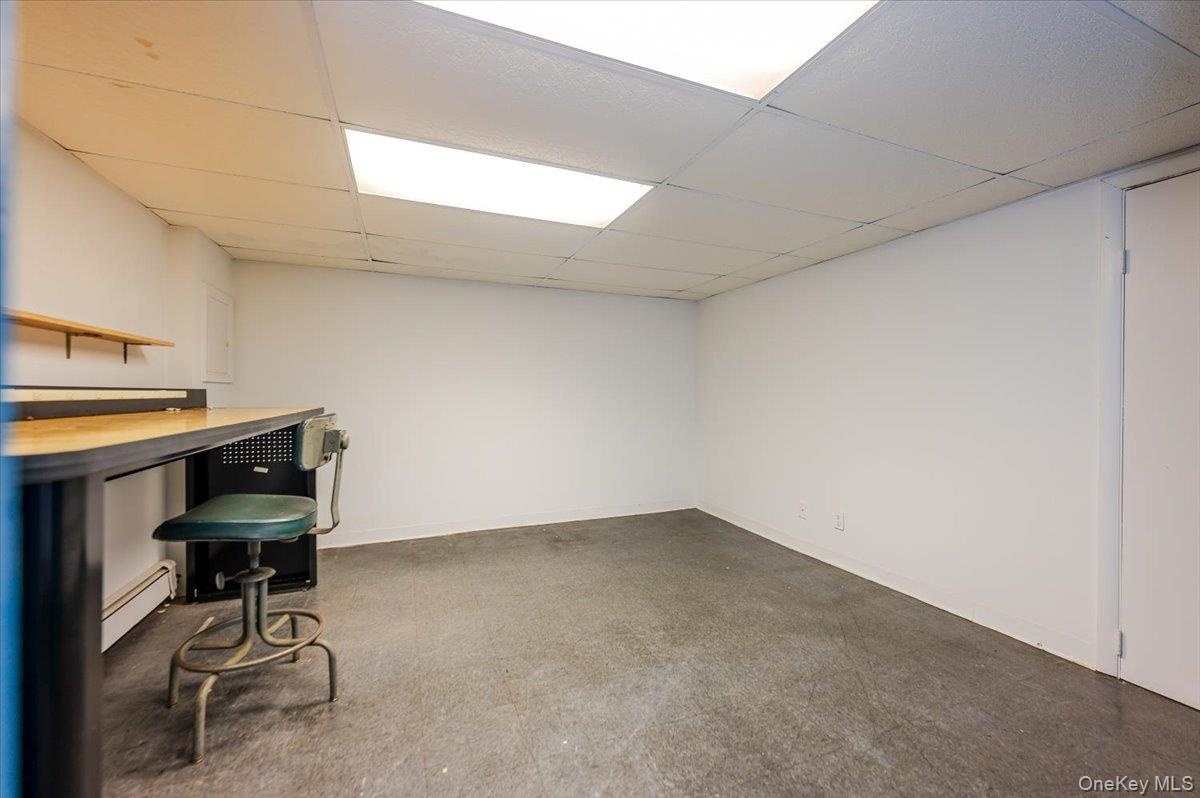 - Unfurnished office with a baseboard heating unit and a paneled ceiling