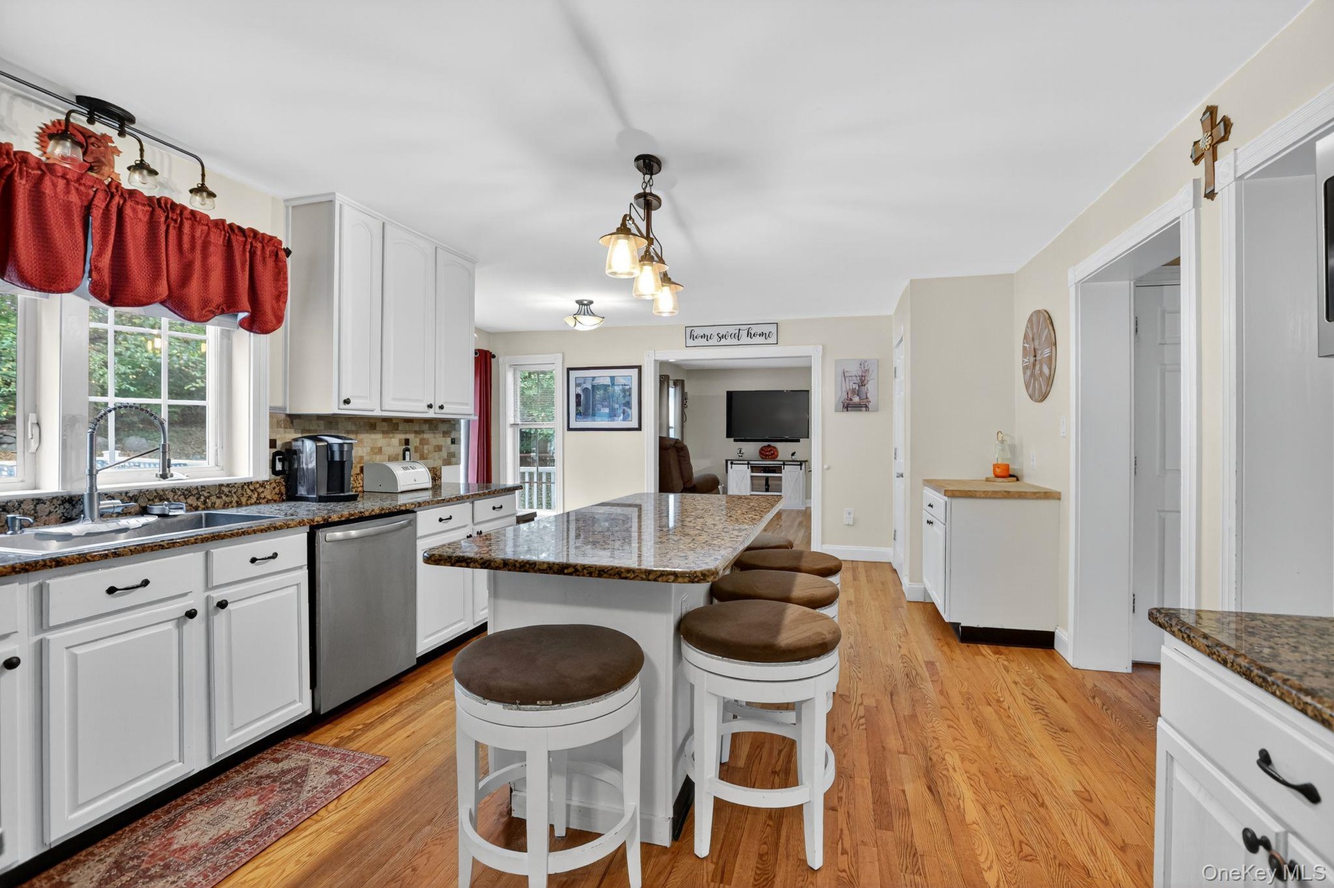 Step inside to discover hardwood floors throughout, a spacious center island kitchen with granite countertops, gas stove, stainless steel appliances and a cozy breakfast nook—ideal for morning coffee with views of the peaceful yard, extended deck and pool.