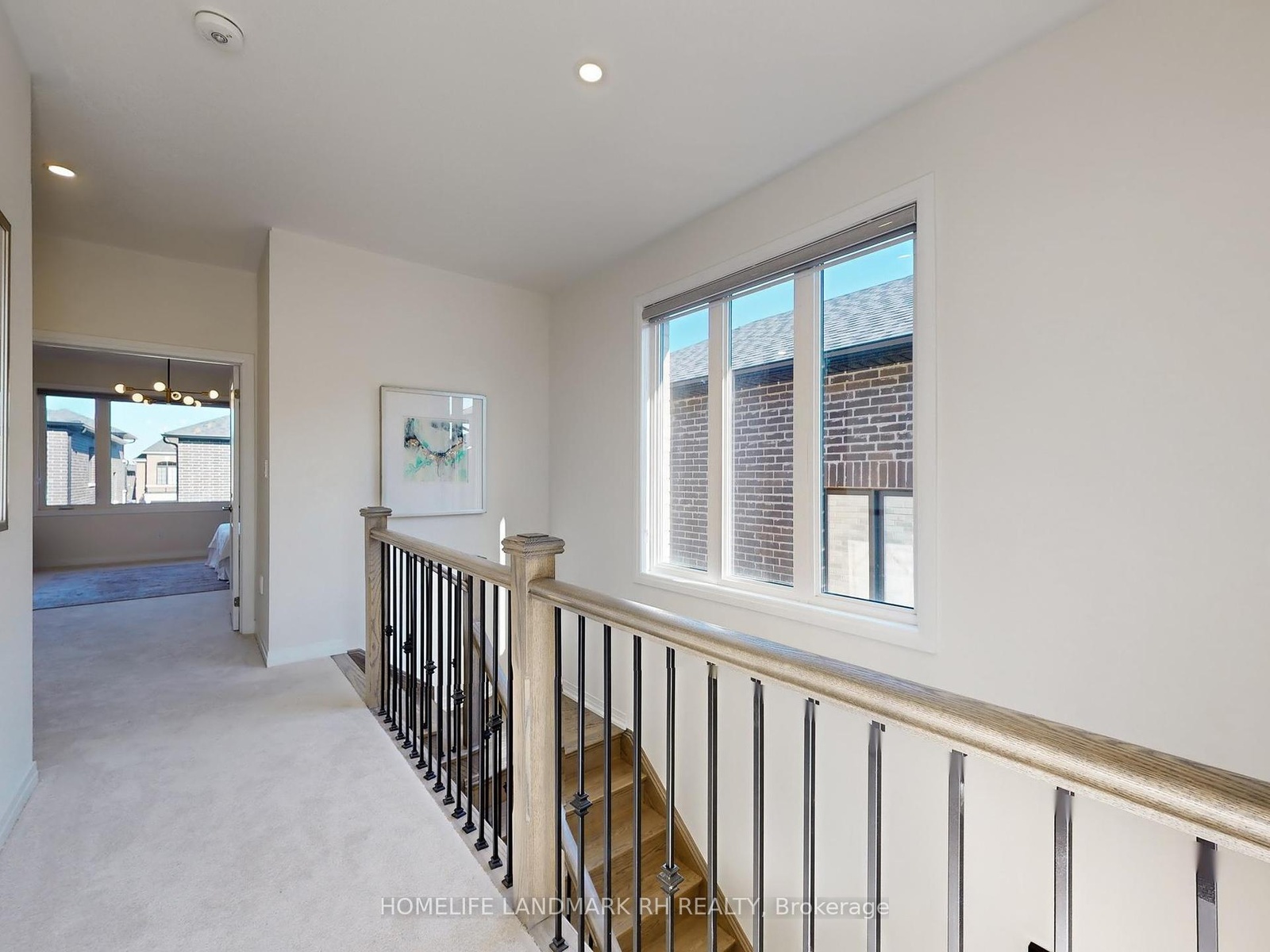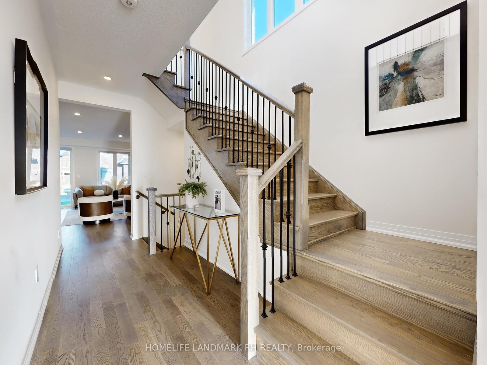 1 Yr New Gorgeous Detached Home w/ Double Car Garage in High Demand Location. Brick & Stone Exterior with Contemporary Design. 8' Double Entrance Doors with Covered Porch. 9' Ceiling on Main & the 2nd Floor. $$ Upgrades: Hardwood Flooring on Main, Pot Lights Throughout. Modern Kitchen Cabinet w/ Valance Lighting & Backsplash. Granite Countertop and S/S Appl. Large Center Island w/ Breakfast Bar. Oak Staircase w/ Iron Pickets. 4 Bdrm & 3 Baths on Upper ( 2 Master Bdrm w/ Ensuite Bath). Primary Bdrm with Access Wall, Sitting area, Study & W/I Closet. Unfin. Bsmt with Separate Entrance - Potential for In-law Suite or Rental Income. Steps to Park & Trail, Closet to Public Transit, Supermarket & Golf Course, Mins to Highways & Go Train Station..