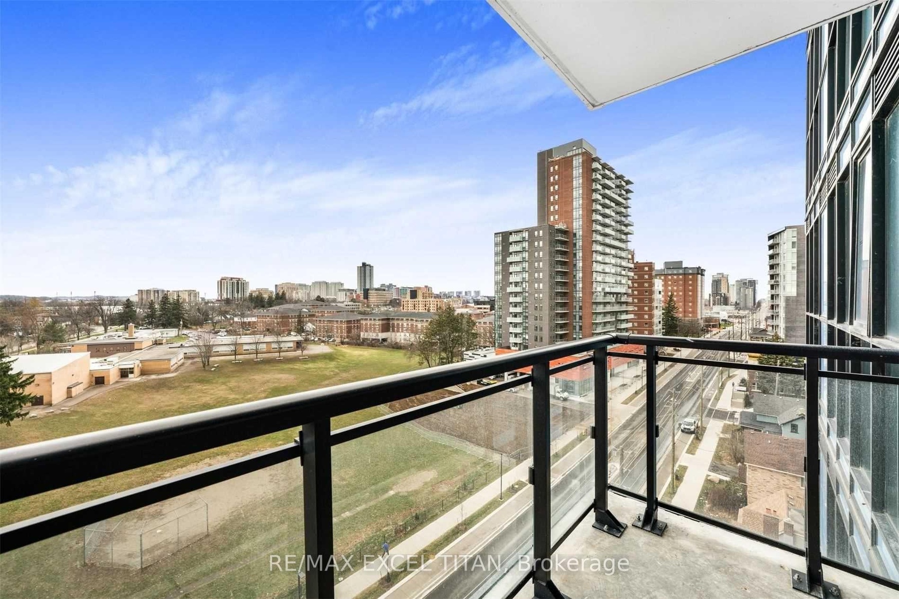 Welcome to One28 King North Condos in the heart of Waterloo! This bright and modern 1 Bedroom + Den, 1 Bathroom suite features a spacious open-concept layout with a south-facing balcony offering sweeping, unobstructed views. The upgraded kitchen boasts quartz counters, backsplash, full-height cabinetry, stainless steel appliances, and a double sink. Floor-to-ceiling windows bring abundant natural light into the primary bedroom, while the versatile den easily converts into a second sleeping space or home office. A chic 4-piece bath and in-suite laundry complete the unit. Residents enjoy outstanding building amenities including 24-hr concierge, fully equipped gym and yoga studio, party/media room, rooftop terrace with BBQs, guest suites, EV charging, and secure bike parking. Conveniently located steps to Wilfrid Laurier University, University of Waterloo, Conestoga College Waterloo campus, LRT/transit, restaurants, and shopping. Ideal for young professionals, students, or investors seeking a turnkey property in a high-demand location.