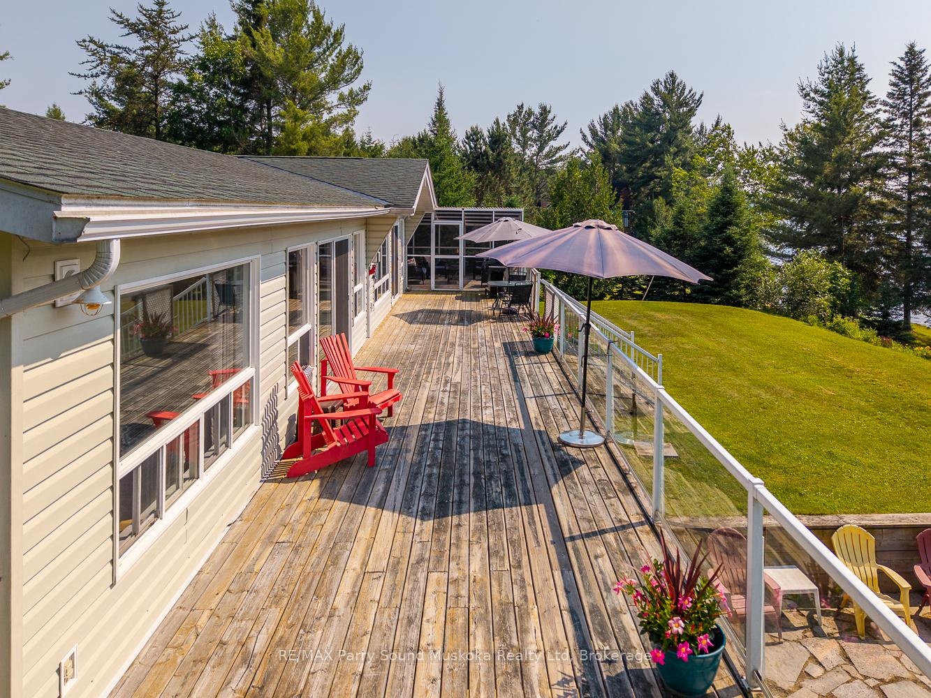 Western exposure open concept Viceroy lake house on a four season road enjoying private panoramic views over Whitestone Lake. With a shoreline of 205 feet, you will experience the large beach along with deep water off of the dock. The property has mature evergreens lending to its great privacy which is highly sought after in cottage country. This waterfront getaway is great for entertaining with its specious open concerpt main floor or relax in the permanent 3 season sunroom. There is a big 4 season porch, main floor laundry and deck that spans the width of the lake house allowing for enjoyment of endless sunsets. The walkout basement features a large rec room and additional bedroom. The garage has a 250 sq ft 4 season studio in the back which is great for stained glass making, pottery, she shed or a man cage to name a few options. Come see 97 Gibson Bay Road and start making your cottage country memories.