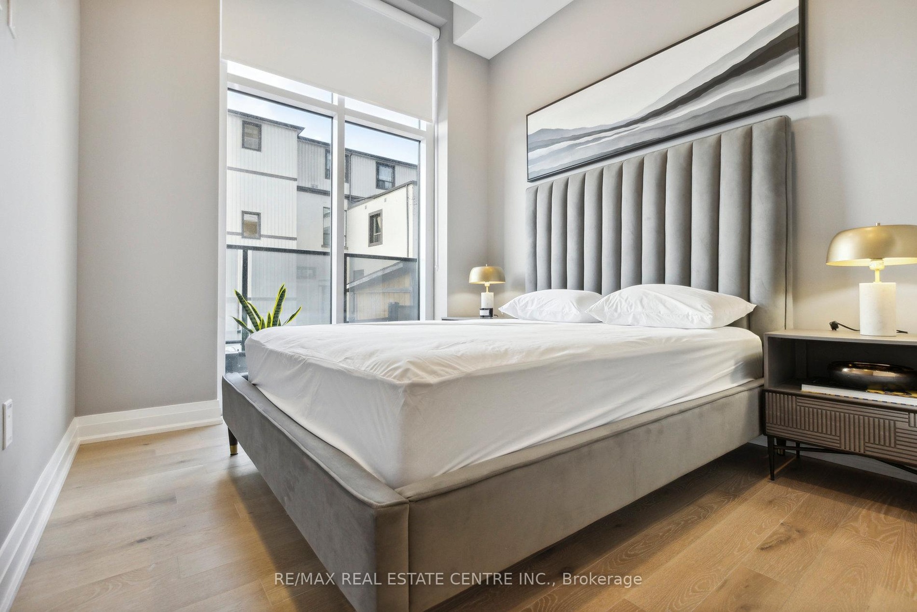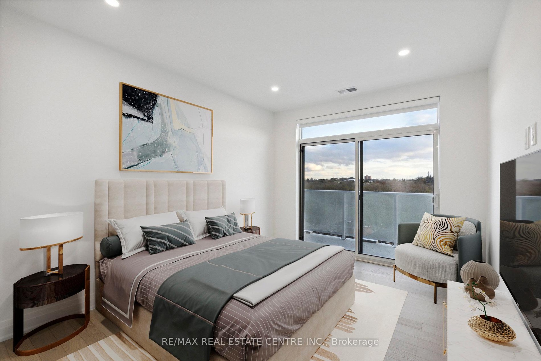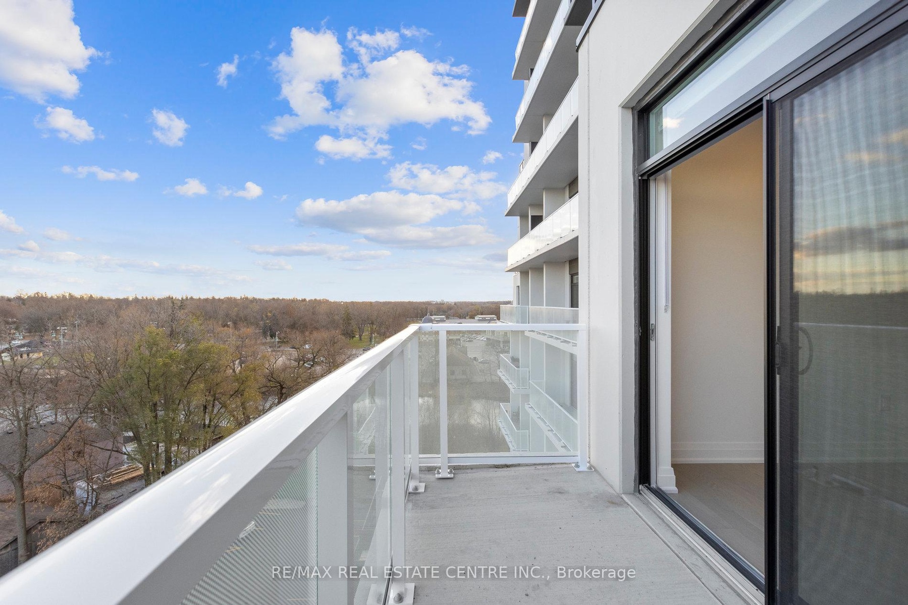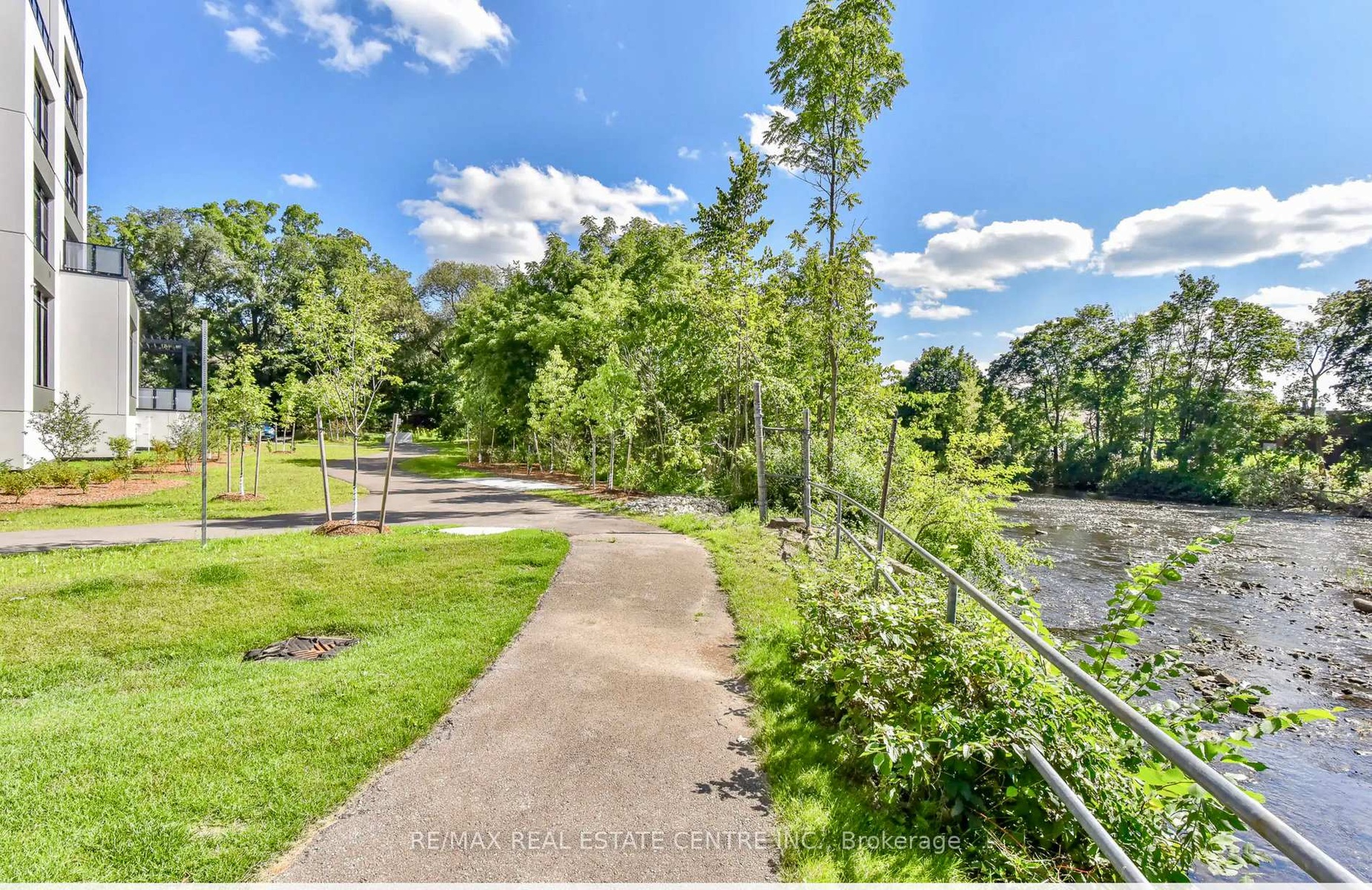 Experience the perfect blend of luxury and urban sophistication at The Edgewater Condominium, located just steps from the vibrant heart of Downtown Guelph.This exceptional 2Ka suite on the 6th floor redefines modern city living, offering two spacious bedrooms, two elegant bathrooms, a versatile den, and two private balconies one 50 sq. ft. and the other 55 sq. ft. each showcasing stunning vistas.The gourmet kitchen, seamlessly integrated with the open-concept living and dining area, makes entertaining or relaxing effortless. The principal bedroom features a luxurious en-suite, walk-in closet, and its own private balcony. The second bedroom, also with a walk-in closet and private balcony, is conveniently located near the main four-piece bathroom.Thoughtfully upgraded, this suite includes enhanced pot lighting, a waterfall-edge kitchen island, heated bathroom floors, and premium flooring throughout. Edgewater's impressive amenities elevate your lifestyle enjoy a spacious social lounge, state-of-the-art fitness centre, guest suite, golf simulator, and a residents lounge offering breathtaking panoramic views the perfect backdrop for social gatherings. Step outside to the beautifully appointed dining terrace and BBQ area, ideal for outdoor entertaining.Live a lifestyle beyond the ordinary.