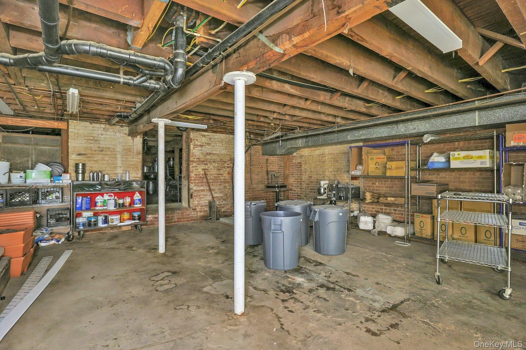 - Unfinished below grade area with brick wall