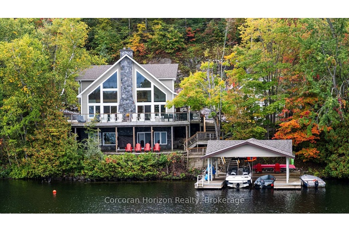 DescriptionEscape to your dream retreat on the shores of Gloucester Pool, just steps from the Big Chute. This 5-bedroom, 3-bathroom cottage home delivers the best of waterfront living with a balance of adventure, relaxation, and charm.The main level, with custom granite fireplace, features a spacious eat-in kitchen, open-concept dining and living areas with vaulted ceilings, and a seamless walkout to a large deck overlooking the lake. A cozy recreation room offers the perfect space to unwind after a day outdoors. Set against rugged granite outcroppings and surrounded by mature trees, the property offers privacy, landscaped grounds for family fun, and multiple outdoor living areas designed for entertaining. At the shoreline, a well-built double boat port with cable lift and additional docking makes lake life effortless, with deep, clean water ideal for swimming and boating.This location is a four-season playground: direct access to the Trent-Severn Waterway for boaters, excellent fishing from your own shore, and nearby snowmobile and ATV trails for winter adventure. Hiking trails, golf, and ski hills are all within easy reach. Whether gathering with family, hosting friends, or seeking a peaceful escape, this Gloucester Pool property is the complete package, a true four-season escape.Virtual Tour: https://vimeo.com/1122722761?fl=pl&fe=shAmenities- Boat Lift