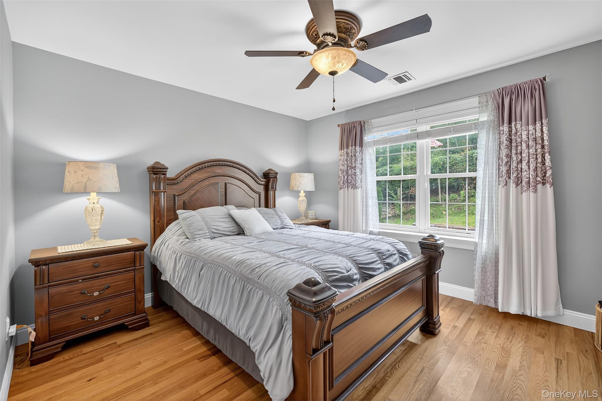 - Bedroom featuring light wood-style flooring and a ceiling fan
