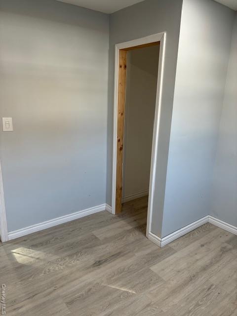 - Unfurnished room featuring light wood-type flooring and baseboard heating