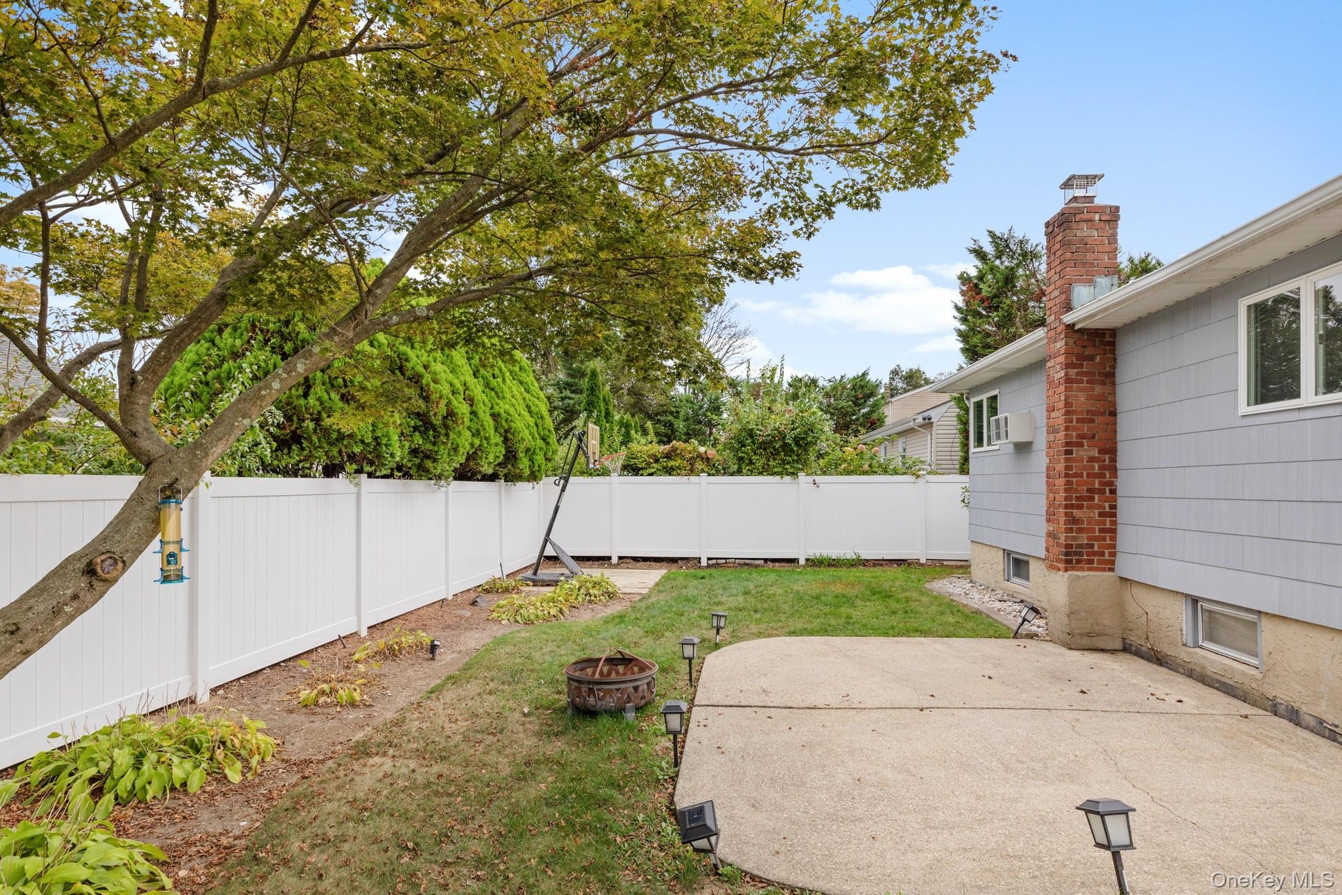 - Fenced backyard featuring a patio and an outdoor fire pit