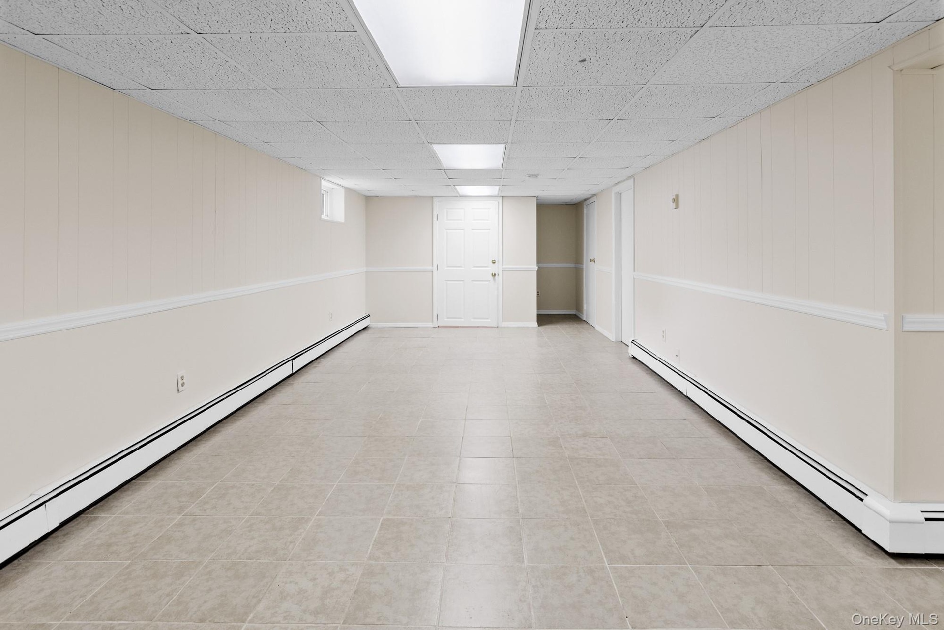 - Spare room featuring baseboard heating, wooden walls, and a paneled ceiling