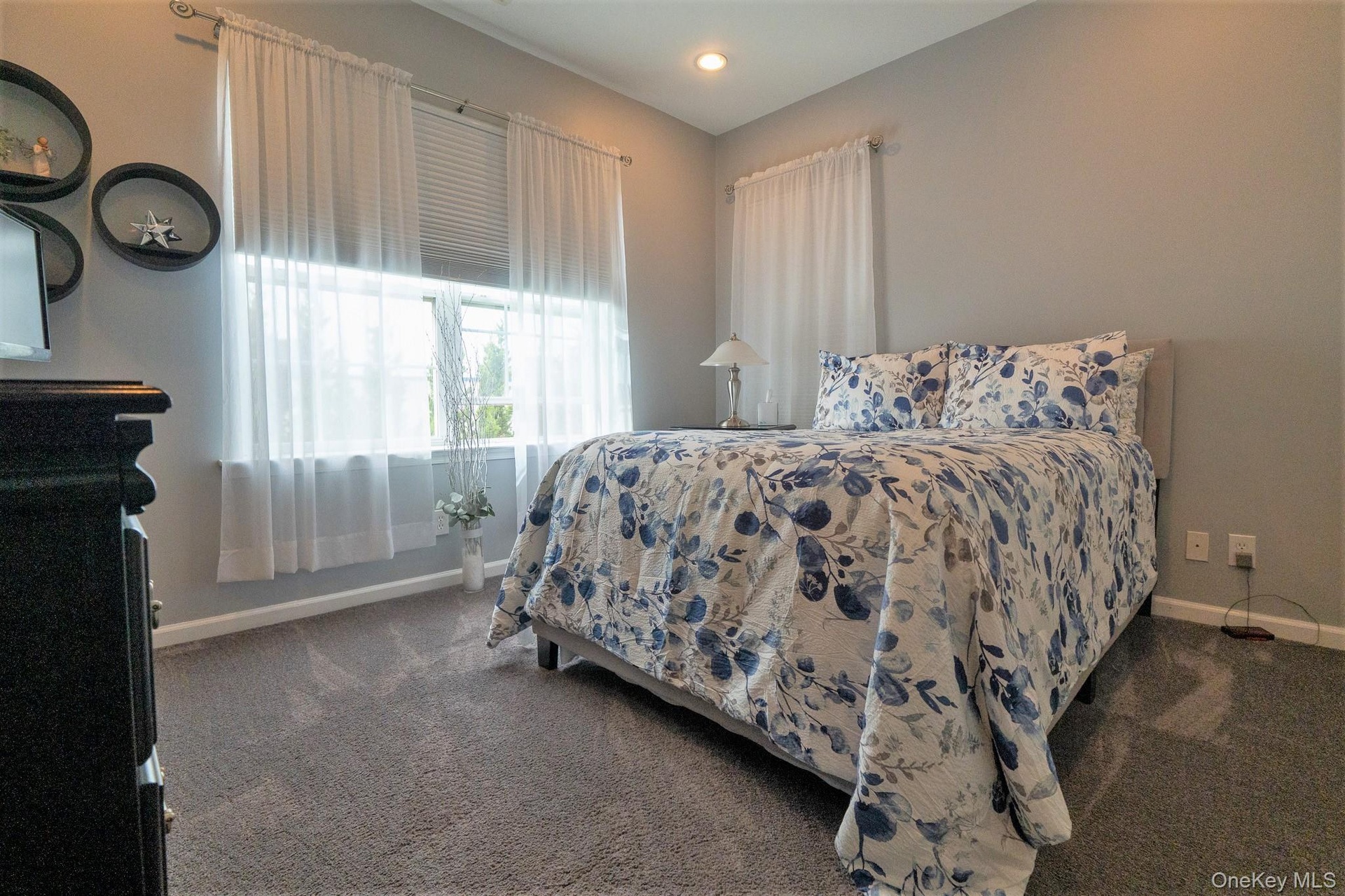 - Carpeted bedroom featuring baseboards and recessed lighting