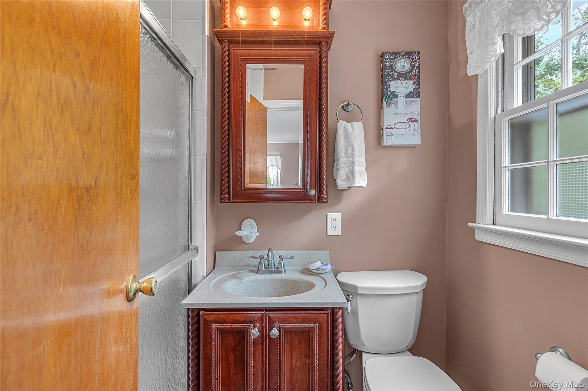 - Bathroom with a baseboard radiator, plenty of natural light, wallpapered walls, vanity, and light tile patterned floors