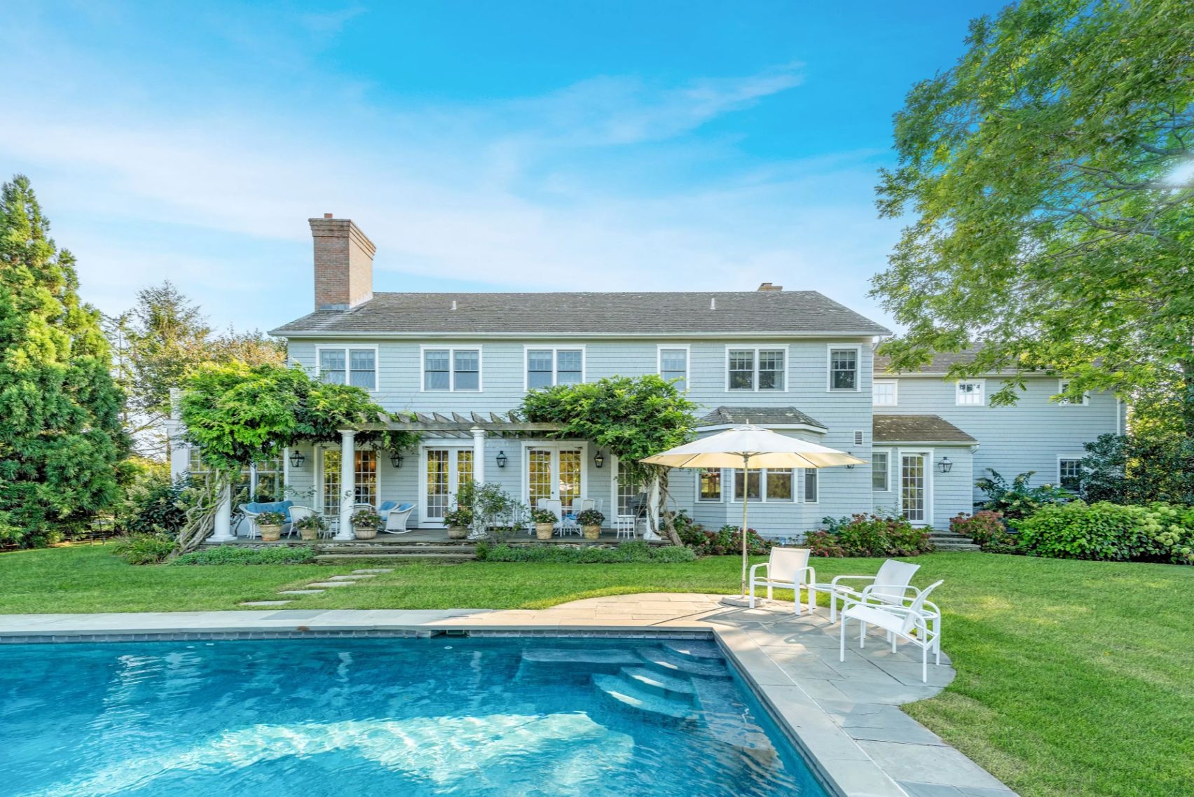 This 5 bed, 6 bath estate is down the road from some of the best beaches Sagaponack has to offer. Whether you're enjoying summer by the pool, playing tennis, cooking in the kitchen with top of the line appliances, or eating under the pergola, your summer is sure to be one you won't forget. The main floor features the living room, dinning room, sunroom, guest bedroom, and kitchen. On the upper level you'll find the primary bedroom as well as 4 addition en-suite bedrooms.