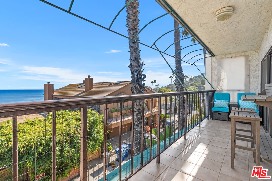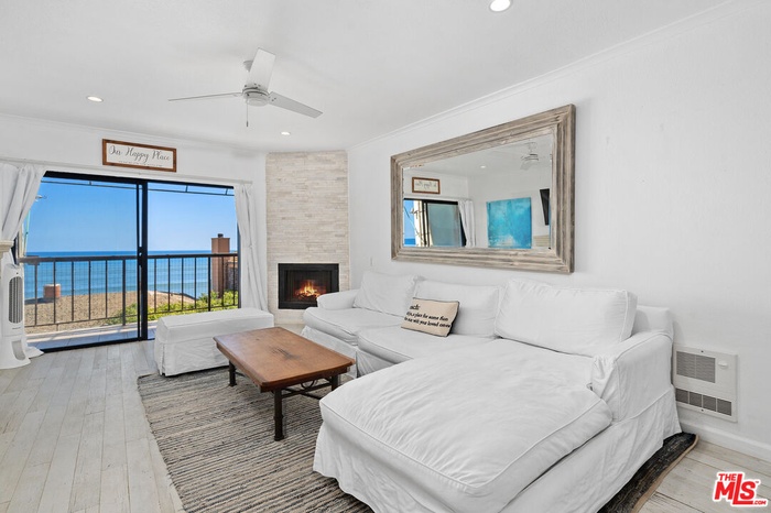 Breathtaking oceanviews from this totally remodeled, spacious one bedroom, one bath condo in the front row of Tivoli Cove. Fall asleep to the soothing sound of waves and see the glorious sunrise from your bed in the morning! Enjoy long beach walks to fabulous Paradise Cove. Steps to secluded beach. Fabulous views of the Queen's necklace and Catalina. Sit by the cozy fireplace in the living room and relax on the sun drenched large balcony with whitewater views. Additional large bonus room just across from the unit with wifi. Resort style living at it's finest with two tennis courts, heated pool, large spa, gym, sauna, and bbq's on the beach! Three miles from Pepperdine University and fabulous shopping and dining. Live the dream!