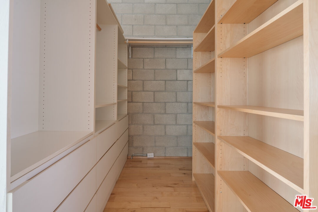 Corner live-work loft now available in one of Hollywood's few fully commercially-zoned (LAC2) condo complexes in the flourishing "Media District" just blocks from Tartine and Petit Trois and directly opposite Pizzeria Mozza on Melrose Ave. Built in 2005, the Highland Lofts are a live/work community for creative-class professionals, artists, and all who appreciate industrial architecture. All the lofts have private entrances, true open plans, soaring ceilings and large windows. This rear corner unit, one of the largest in the complex, has an ample bedroom-level terrace featuring open views west towards Century City. Two full en suite baths and a sliding translucent glass wall on the main floor below, one flight above the entry, allows for a second bedroom or private office. The 2-car garage within the lower level was designed to be flex space and is currently used entirely as a bespoke design workshop. Private entry into the unit is from a path screened from the alley by mature bamboo and a tall custom metalwork fence. Vehicles access the private garage from a gate and common driveway partially below grade. Enjoy remarkably low monthly HOA dues for a unit of this size and quality. Owners pay gas+ electric; remaining DWP costs paid by HOA.