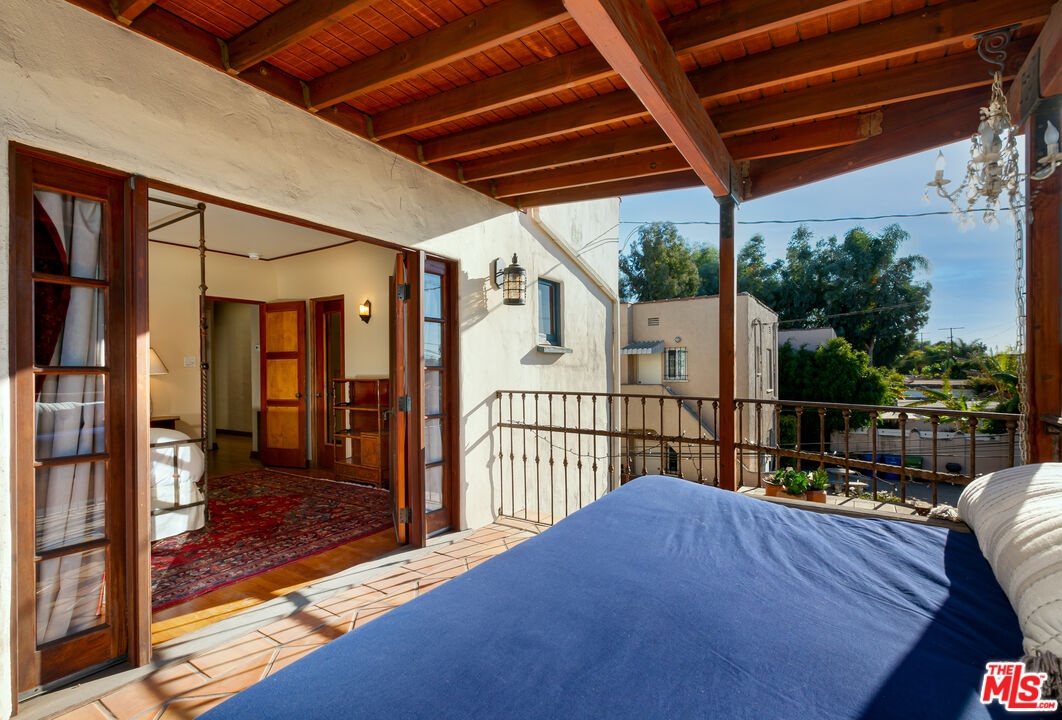 DescriptionUpper level, 3 bed/3 bath, with 1/1 ADU back casita - This castle inspired Spanish Duplex is located in the historic Carthay Square district, just minutes from Beverly Hills. This stunning duplex has been restored to its vintage 1920's splendor. 2,000 sq ft. Glistening HARDWOOD FLOORS throughout, ARCHED DOORWAYS, high beamed ceilings, hand crafted ARTISAN TILE. Wood burning fireplace. Beautifully furnished with original art, hand woven rugs. Den with large flat screen TV. Fabulous for entertaining. Link to a 360 degree tour available. Comes fully equipped with immaculate appliances: gas range/stove, microwave, dishwasher, refrigerator, central heating, CENTRAL AIR, washer/dryer. (ADU has kitchen, bedroom area, & w/d in unit. Perfect for guests or a private office).Amenities- Balcony