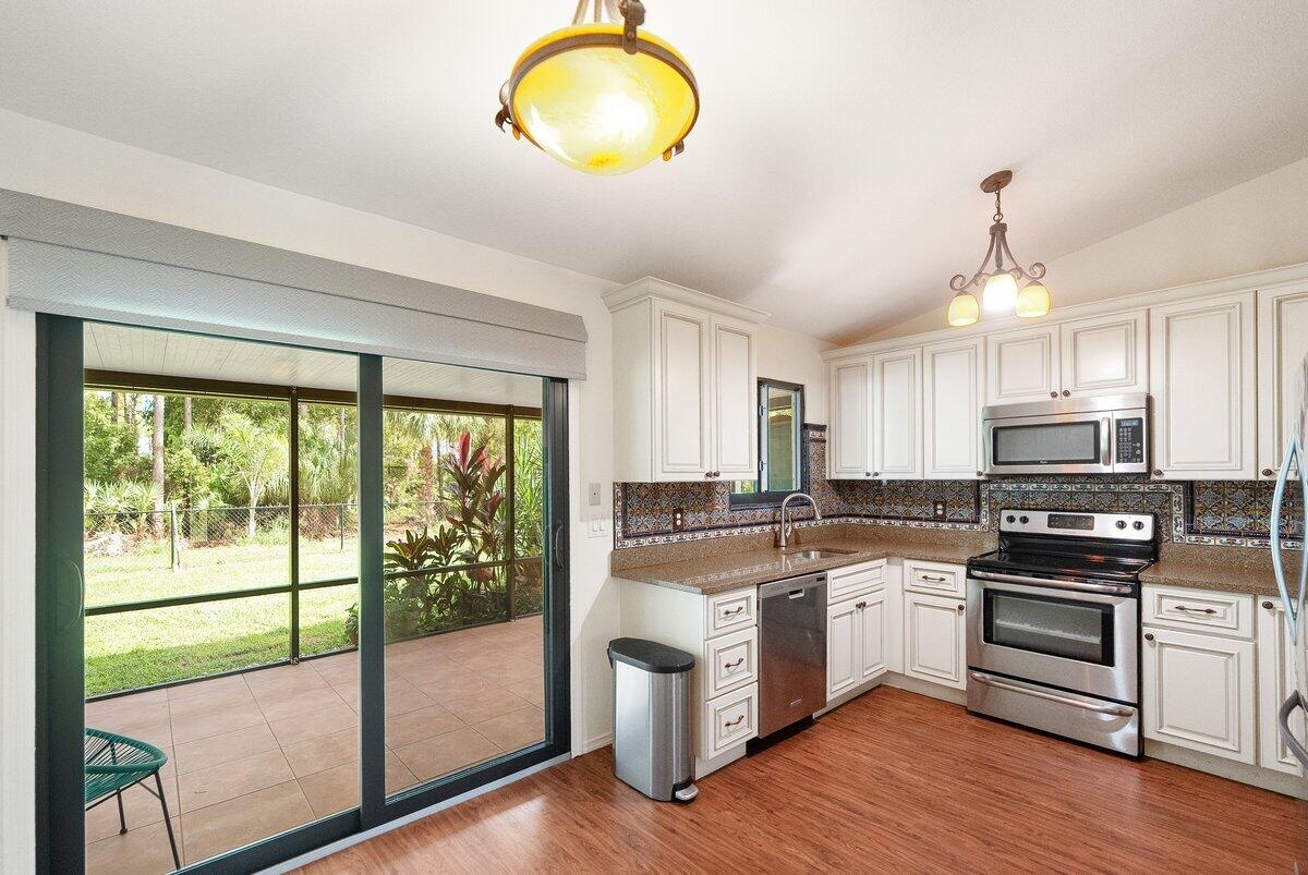 DescriptionThis move-in ready home has been well maintained and beautifully updated. Gorgeous granite countertops in the kitchen and in both bathrooms. Kitchen has been updated with a stunning backsplash, fine cabinetry and stainless steel appliances. Vinyl floors throughout the entire home. This home also comes with upgrades such as a 2017 tile roof, COMPLETE IMPACT GLASS WINDOWS AND DOORS, and a Generac generator installed in 2021. Plenty of room for entertaining with the large 20x14 living room and TWO screened porches. 2022 fenced yard is private as it backs up to the woods and has plenty of space to add a swimming pool. Quiet street with a neighborhood park just one block away with volleyball, basketball, playground and baseball. NO HOA FEE!!! Schedule your tour today before this one is sold!