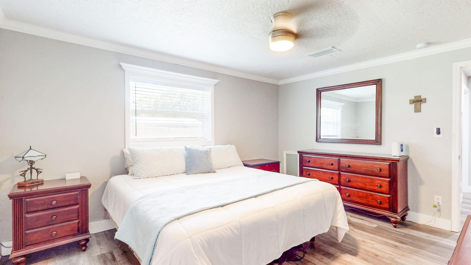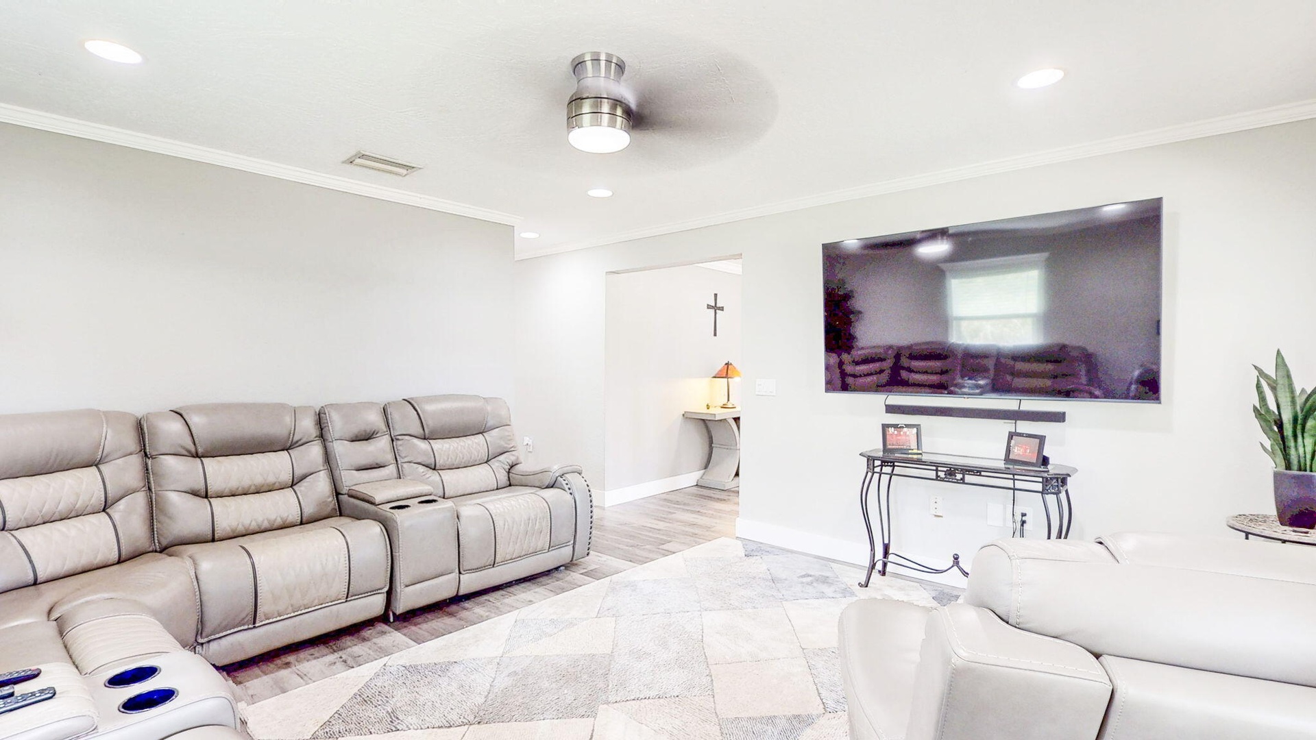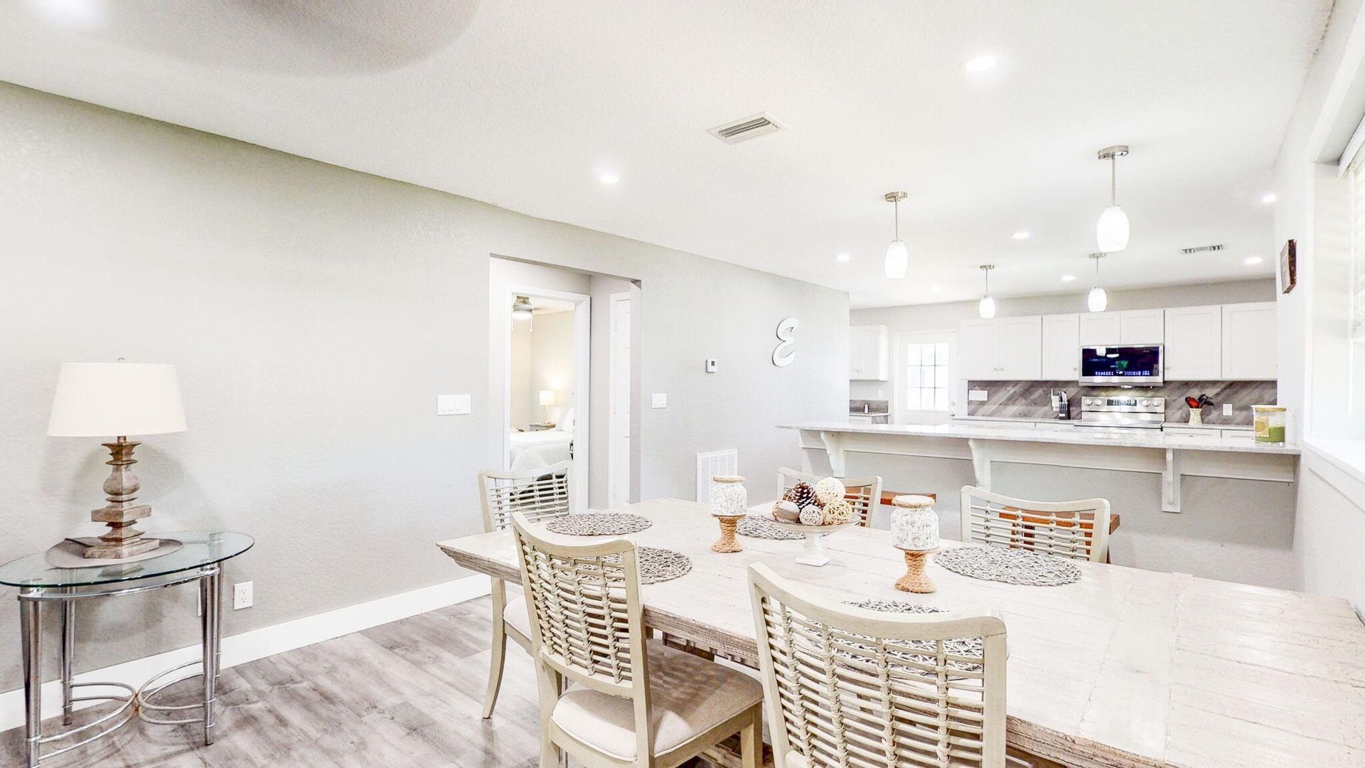 Welcome to this beautifully remodeled 4-bedroom, 3-bathroom home. Designed for both comfort and functionality, the property offers a spacious layout and a wide range of modern enhancements. Inside,you'll find luxury vinyl flooring throughout, two new air conditioning systems and two new hot water heaters, The guest bathroom features a jacuzzi tub, and impact windows and doors provide energy efficiency and storm protection. The home is also equipped with a setup for a whole-house generator. The kitchen, baths, and living spaces have all been completely remodeled, creating a fresh and move-in ready environment. Outdoor living is maximized with a wrap-around porch finished with Trex decking, a fire pit in the front yard, a carport, and a detached garage. The expansive yard is irrigated by