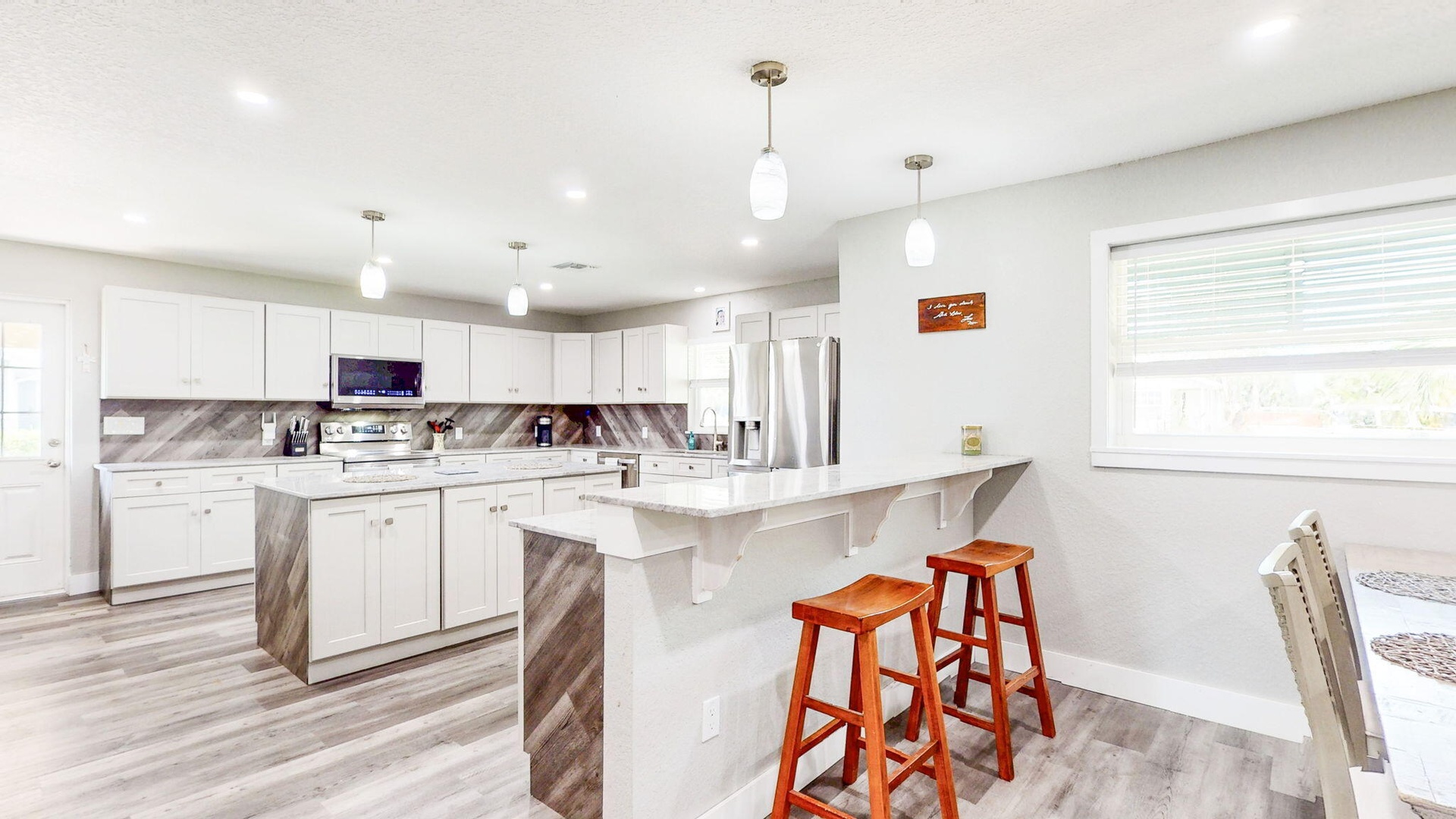 DescriptionWelcome to this beautifully remodeled 4-bedroom, 3-bathroom home. Designed for both comfort and functionality, the property offers a spacious layout and a wide range of modern enhancements. Inside,you'll find luxury vinyl flooring throughout, two new air conditioning systems and two new hot water heaters, The guest bathroom features a jacuzzi tub, and impact windows and doors provide energy efficiency and storm protection. The home is also equipped with a setup for a whole-house generator. The kitchen, baths, and living spaces have all been completely remodeled, creating a fresh and move-in ready environment. Outdoor living is maximized with a wrap-around porch finished with Trex decking, a fire pit in the front yard, a carport, and a detached garage. The expansive yard is irrigated by