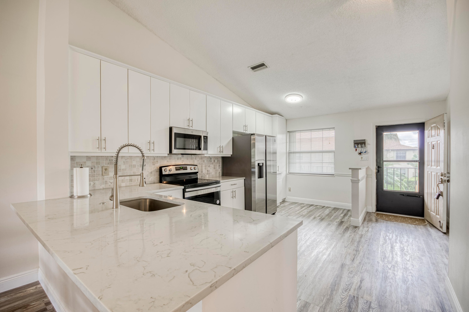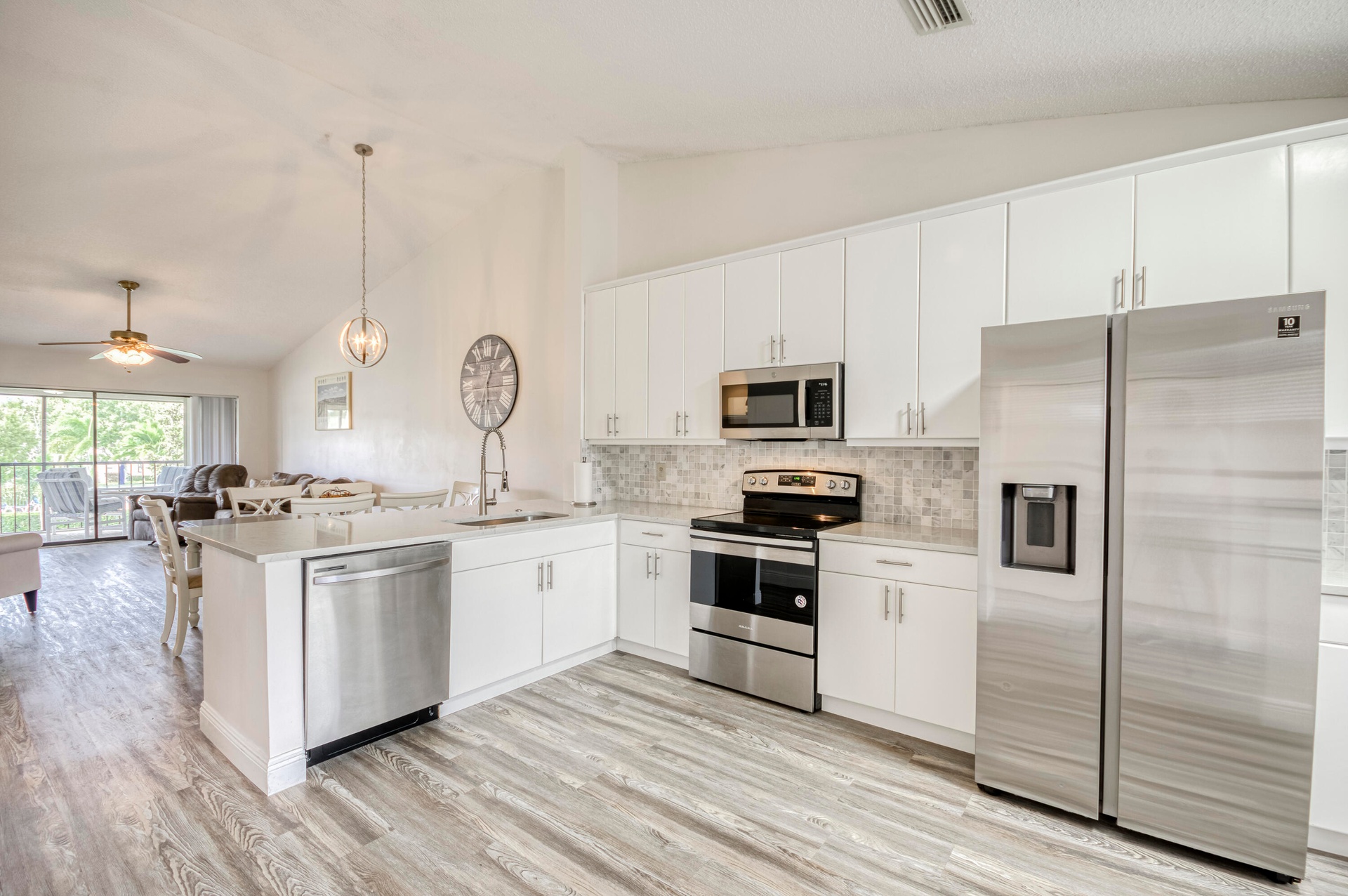 DescriptionBEAUTIFULLY RENOVATED, TURNKEY, and spacious second-floor corner 2 bedroom, 2 bath condo w/vaulted ceilings. Step inside to a 2021 kitchen w/custom cabinetry, quartz countertops, tile backsplash, and modern appliances. The living room, bright and airy, opens to an oversized enclosed lanai w/views of the pool, lake, and fountain--perfect for morning coffee or evening gatherings. Updates include luxury vinyl plank flooring, refreshed vanities, updated breakers, 2024 roof, 2021 water heater, and 2017 AC. Community amenities feature tennis, pickleball, pool w/BBQ area, and clubhouse w/full kitchen. Stroll to the Golf Club of Jupiter for golf, driving range, and dining. Why vacation when you can call Jupiter home? Well-managed HOA lowering fees in 2026. A MUST SEE!