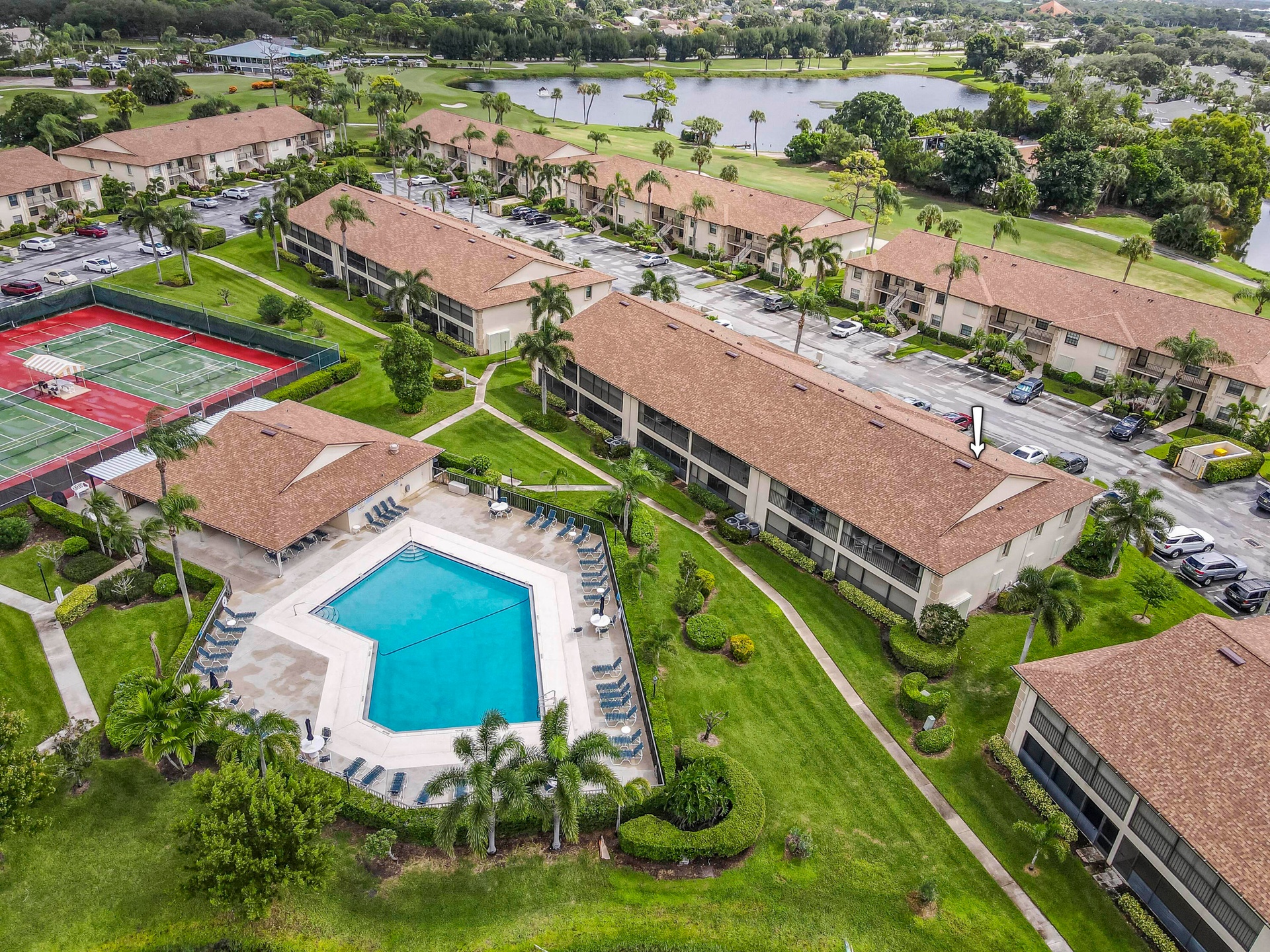 BEAUTIFULLY RENOVATED, TURNKEY, and spacious second-floor corner 2 bedroom, 2 bath condo w/vaulted ceilings. Step inside to a 2021 kitchen w/custom cabinetry, quartz countertops, tile backsplash, and modern appliances. The living room, bright and airy, opens to an oversized enclosed lanai w/views of the pool, lake, and fountain--perfect for morning coffee or evening gatherings. Updates include luxury vinyl plank flooring, refreshed vanities, updated breakers, 2024 roof, 2021 water heater, and 2017 AC. Community amenities feature tennis, pickleball, pool w/BBQ area, and clubhouse w/full kitchen. Stroll to the Golf Club of Jupiter for golf, driving range, and dining. Why vacation when you can call Jupiter home? Well-managed HOA lowering fees in 2026. A MUST SEE!