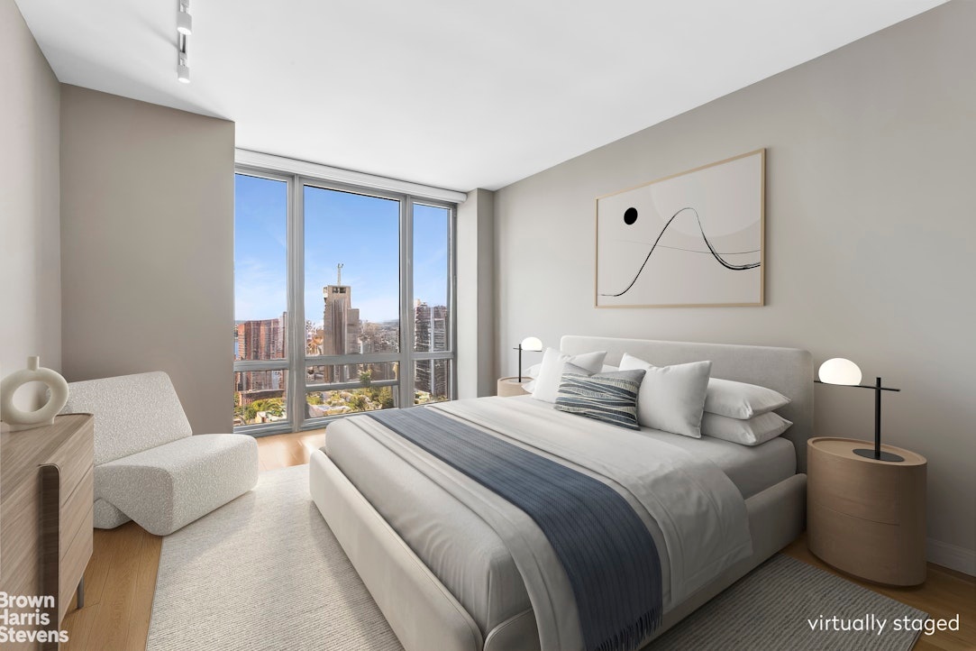 Perched high above Midtown, Residence 28B at The Link Condominium is a sun-filled, corner two-bedroom, two-and-a-half-bath spanning over 1,300 SF. Walls of glass frame cinematic vistas: majestic Hudson River views to the west, sweeping open cityscapes to the south and east, and vibrant sunsets that fill every room with light.