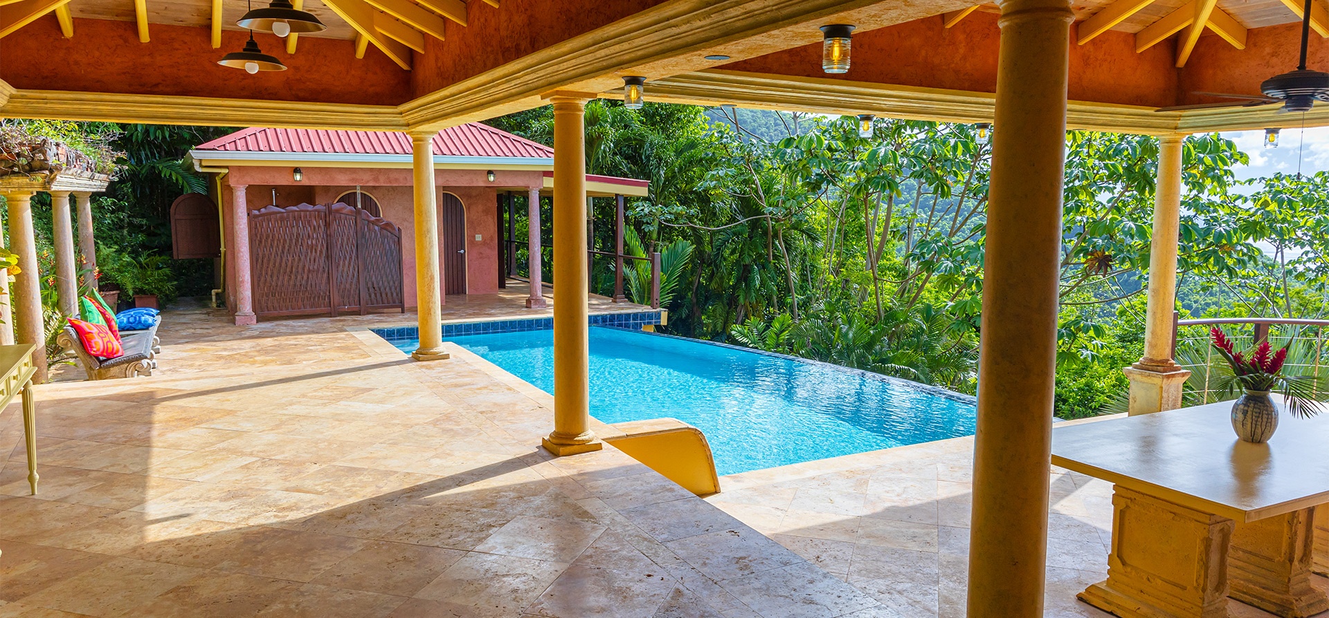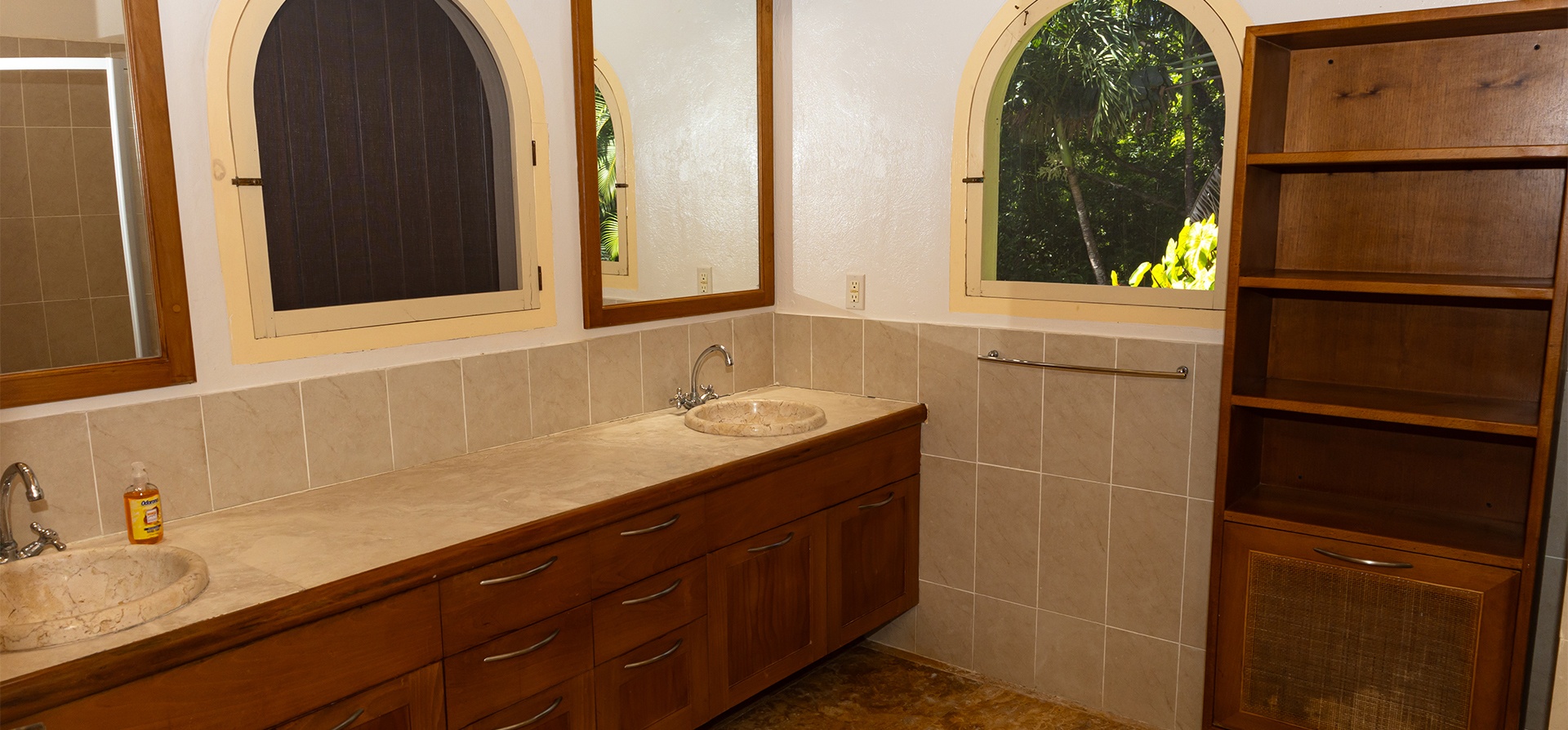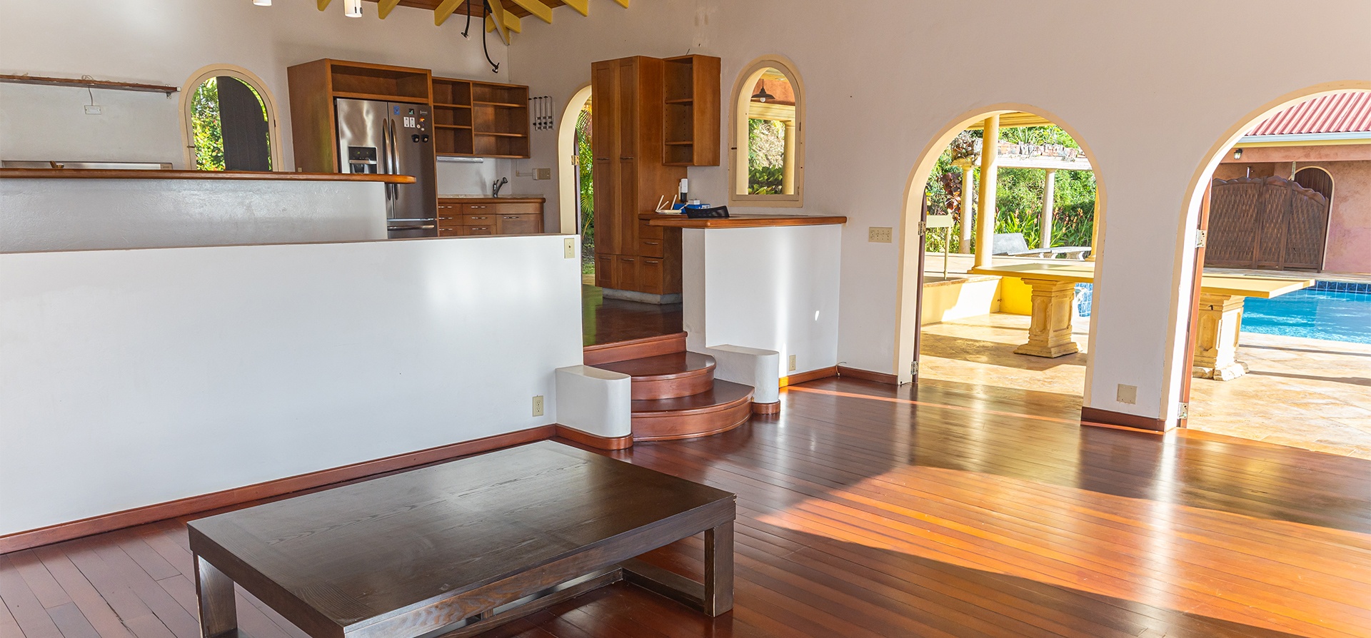 With over 4,500 sf of covered living space this is a property that lends itself to indoor/outdoor living. The main house is on two levels with the upper lever offering a large open plan kitchen and reception room and a primary bedroom with ensuite and walk in wardrobe. There are hard wood floors throughout and high ceilings and multiple large wooden doors that opens to the pool and the covered decks offering ocean views. The lower level offers a further three bedrooms and two full bathrooms, a large foyer that could be a playroom or office area and a large laundry room. In addition on the upper level there is a standalone bedroom with ensuite which is a perfect escape for visiting friends and family.