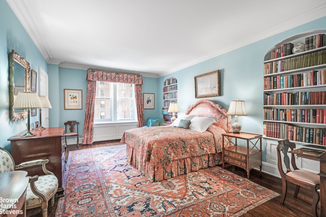This grand and sophisticated duplex residence is located in the esteemed Rosario Candela-designed building at 770 Park Avenue in the heart of the Upper East Side. The apartment boasts a gracious layout with superb prewar details throughout. The entertaining rooms and three of the four bedrooms have an eastern exposure overlooking Park Avenue. Upon entering, you are greeted by an impressive entrance gallery with a sweeping curved staircase. The dramatic 30-foot living room with a wood-burning fireplace is sun-flooded through floor-to-ceiling windows with Juliet balconies. It is adjacent to the library with its own wood-burning fireplace and handsome built-in bookcases. The beautifully proportioned corner formal dining room is ideal for entertaining. The windowed gourmet eat-in kitchen offers custom cabinetry, ample countertops, two Subzero refrigerators, Viking 6-burner range, an additional oven, two sinks, two dishwashers and an icemaker. A staff room with full bath is conveniently located off the kitchen, as is a windowed laundry room that leads to the secondary staircase.