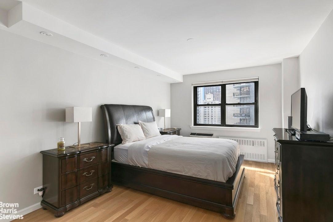 This newly renovated, move-in ready one-bedroom, with bright southern exposures is a rare find. Apartment features golden-toned wood floors, new customized ceiling lighting, new electrical, and through-the-wall A/C units. The generous-sized bedroom has two closets and easily accommodates a king-sized bed. The kitchen has sleek, modern cabinets, stainless steel appliances and Silestone counter tops. All five closets including a tremendous walk-in have custom shelving and lighting. The bathroom features basket-weave marble flooring, contemporary subway tiled walls a Toto toilet, rain shower with hand spay and a floating vanity.