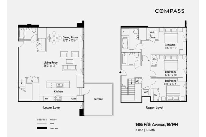 Welcome to Apartment 18/19H, a sun-drenched, expansive duplex home offering three bedrooms and three bathrooms with the luxury of a 210 square foot private terrace. Thoughtfully designed, the lower level boasts a large living, dining, and entertainment space, while the upper level hosts three generous bedrooms, including a primary suite with an ensuite bath, and a separate laundry room.
