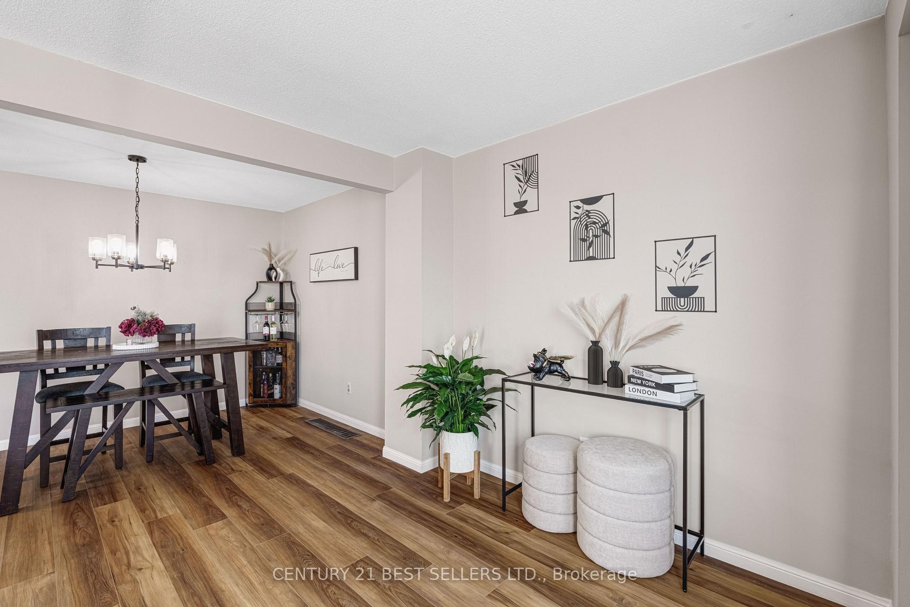 Welcome to this well-maintained and tastefully updated townhome, offering exceptional value in one of Milton's most sought-after neighbourhoods. Freshly painted throughout, the home features refinished kitchen cabinetry, stylish modern light fixtures, and brand new laminate flooring on the main level, adding to the clean, contemporary feel. Flooded with natural light, the spacious open-concept main floor is ideal for both everyday living and entertaining. The bright, airy layout creates a warm and welcoming atmosphere you'll feel the moment you walk through the door. Situated in a friendly, family-oriented community, this home is just minutes from top-rated schools, parks, shopping, public transit, and all essential amenities. Plus, with convenient access to Highway 401, commuting or weekend getaways are a breeze. Whether you're a first-time buyer, downsizer, or investor, this move-in-ready home is a fantastic opportunity in a high-demand area.