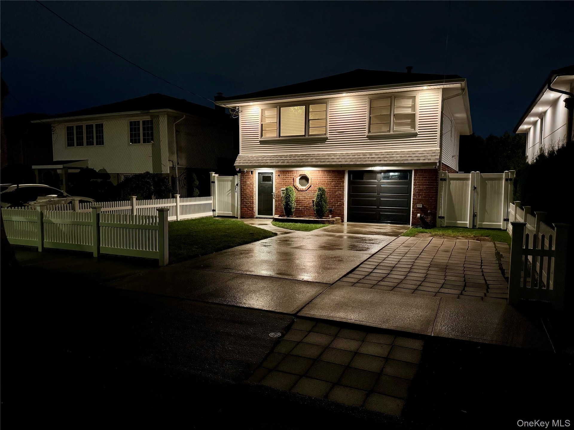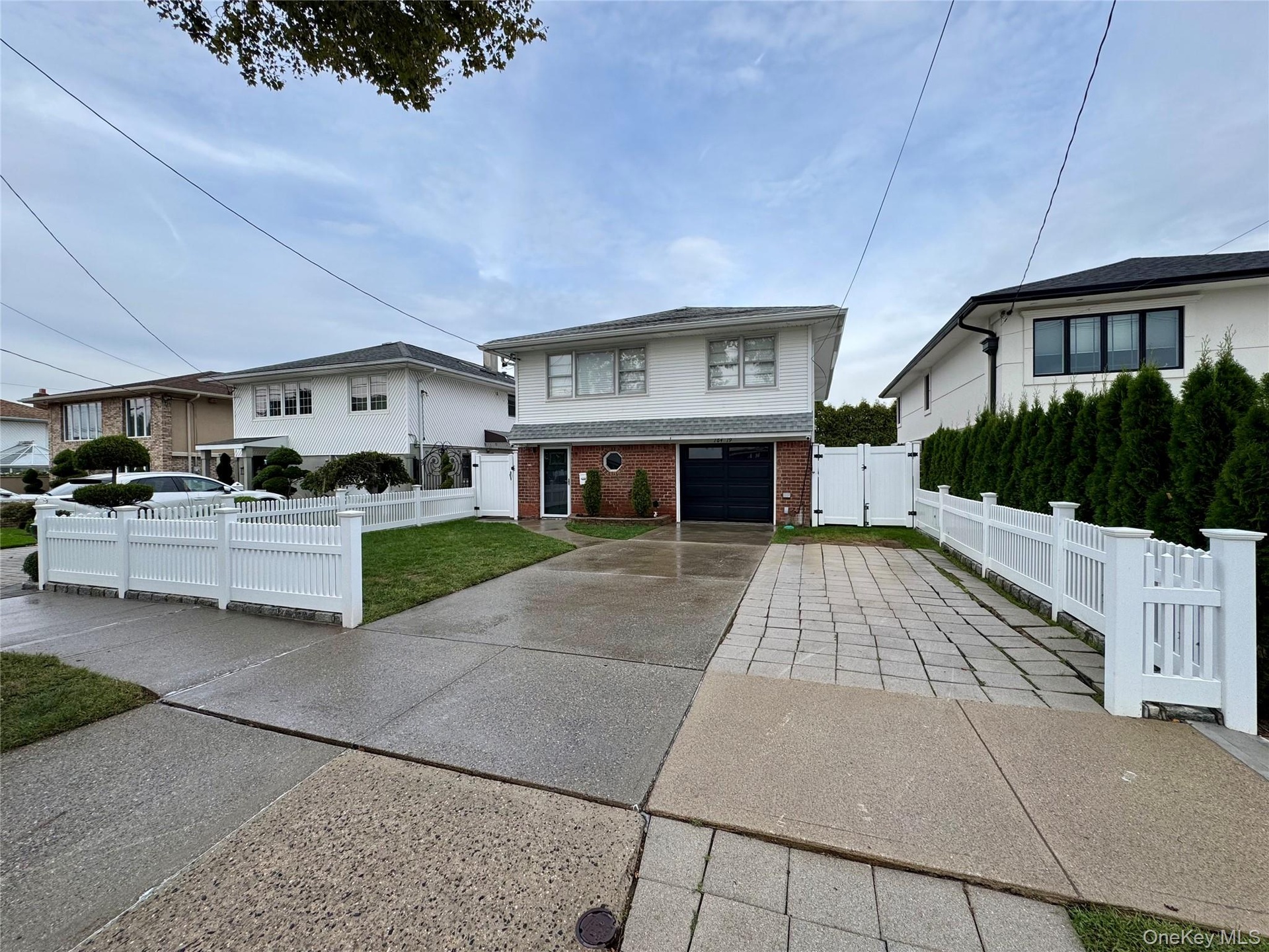 - Traditional-style house with a gate, brick siding, and concrete driveway