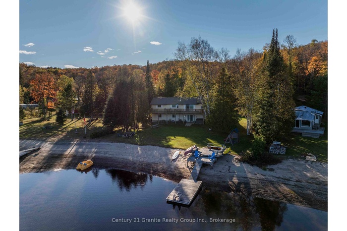 DescriptionWake up to sunrise views over Haliburton Lake, spend your afternoons swimming from your private sandy shoreline, and end the day soaking in your own lakeside hot tub. This stunning 5-bedroom, 3-bathroom year-round home or cottage offers the perfect blend of modern comfort and relaxed waterfront living on the highly sought-after Haliburton-Oblong 2-lake chain. With 2,256 sq ft of finished living space across two bright, above-grade levels, there's plenty of room for family and friends. The main floor features an open-concept living and dining area with a cozy brick wood-burning fireplace and a walkout to a wrap-around deck with sweeping lake views. The spacious chefs kitchen includes an island, ample cabinetry, and picturesque sightlines over the water. A versatile den is ideal for a reading nook, office, or media room. Three bedrooms complete the main level, including a large primary suite with a beautifully renovated ensuite. The lower level is designed for entertaining, offering a sunlit rec room, games area, two generous bedrooms, and a 3-piece bath. Step outside to the hot tub overlooking the lake, perfect for unwinding after a day of boating, fishing, or swimming. Outdoors, the level lot makes lakeside living effortless. Enjoy your private sand beach, dock your boat with ease, and explore the 2-lake chain at your doorstep. A detached 1-car garage provides storage for all your gear. This turn-key property has been recently upgraded with a new HVAC system (2023) and comes fully furnished, just arrive and enjoy. Whether you're seeking a family retreat, a year-round home, or a rental investment, this property offers it all. Located just 5 minutes from Fort Irwin, 30 minutes to Haliburton Village, and only 2.5 hours from the GTA, this lakeside getaway is both accessible and private. Rare opportunities on Haliburton Lake don't last long, book your private showing today and start your lakefront lifestyle.Amenities- Beach Front