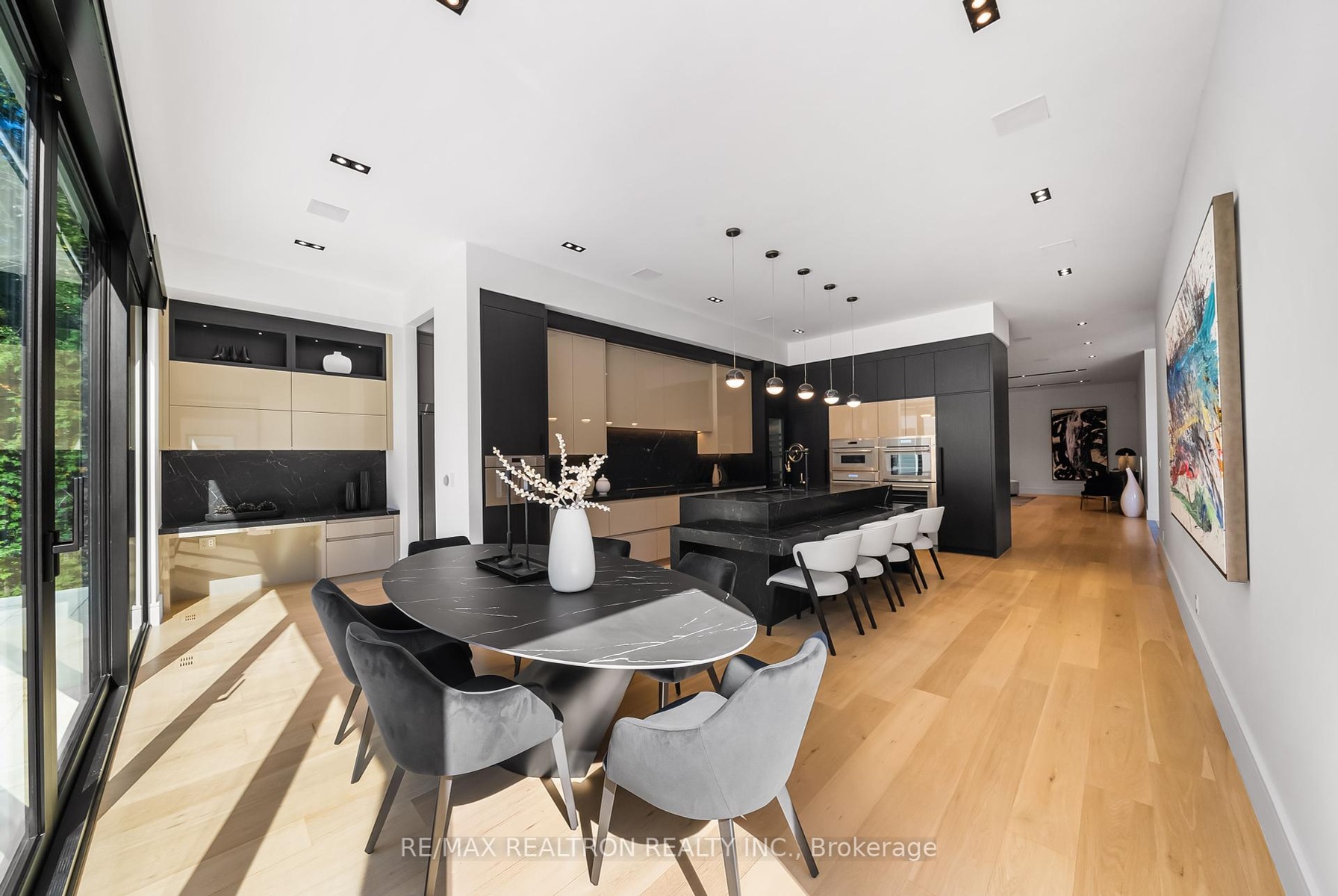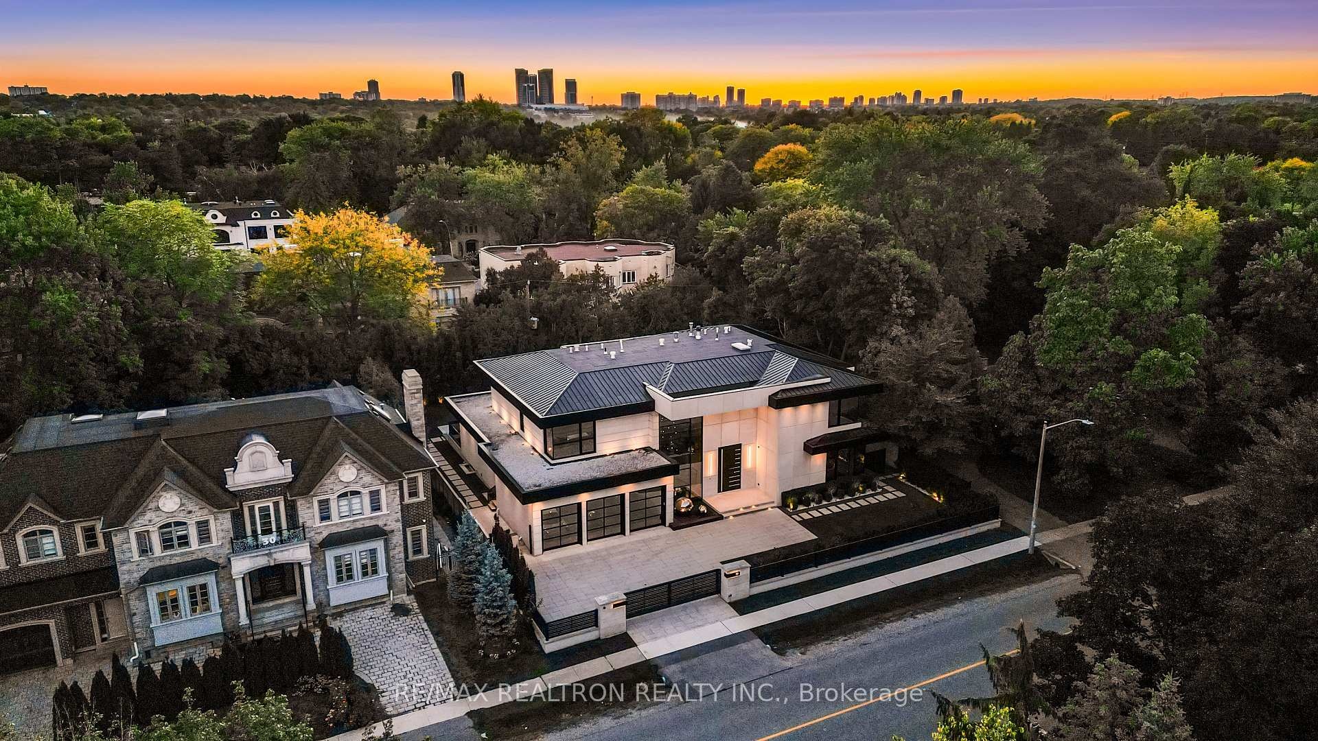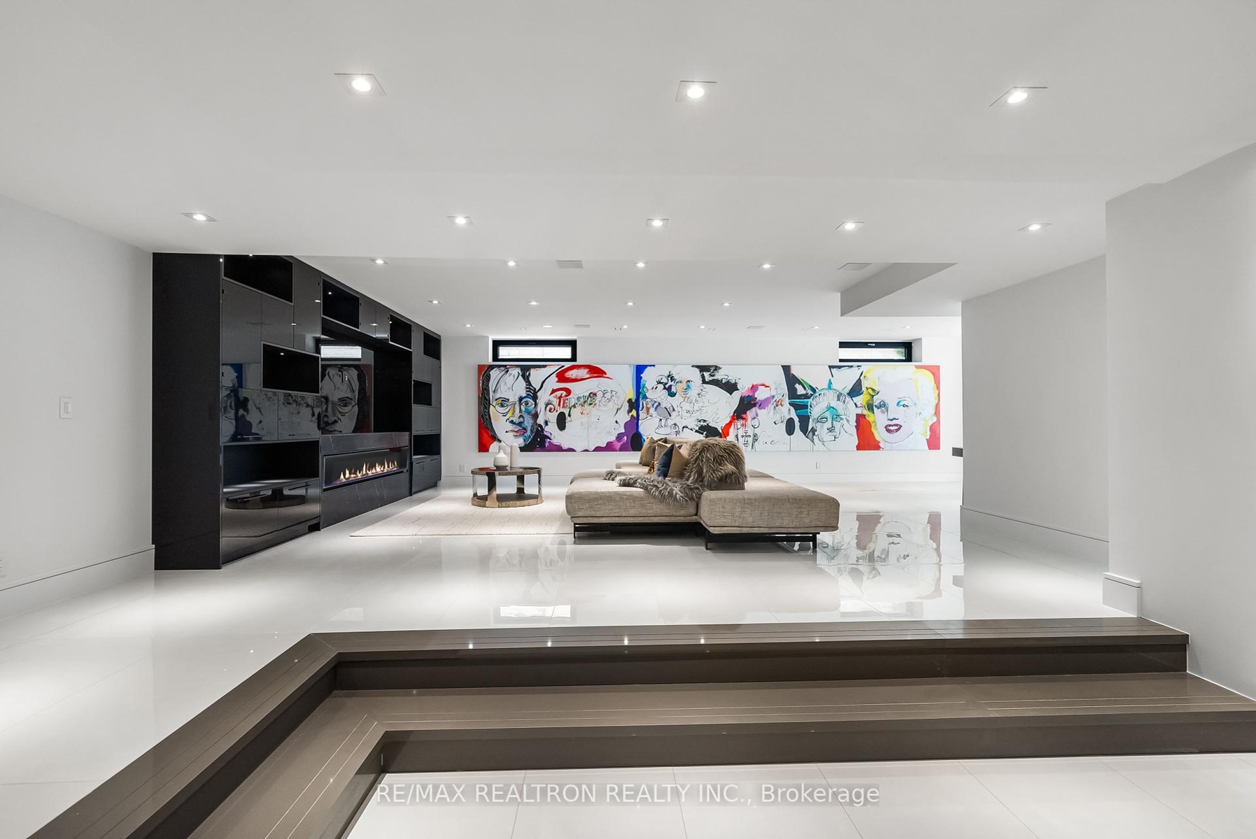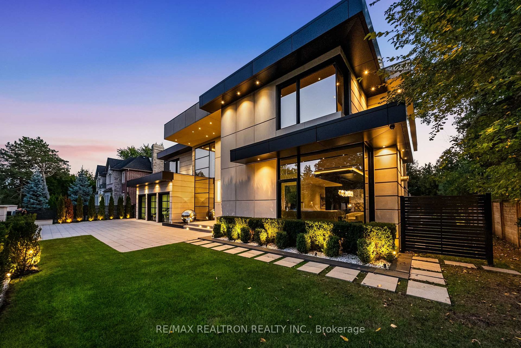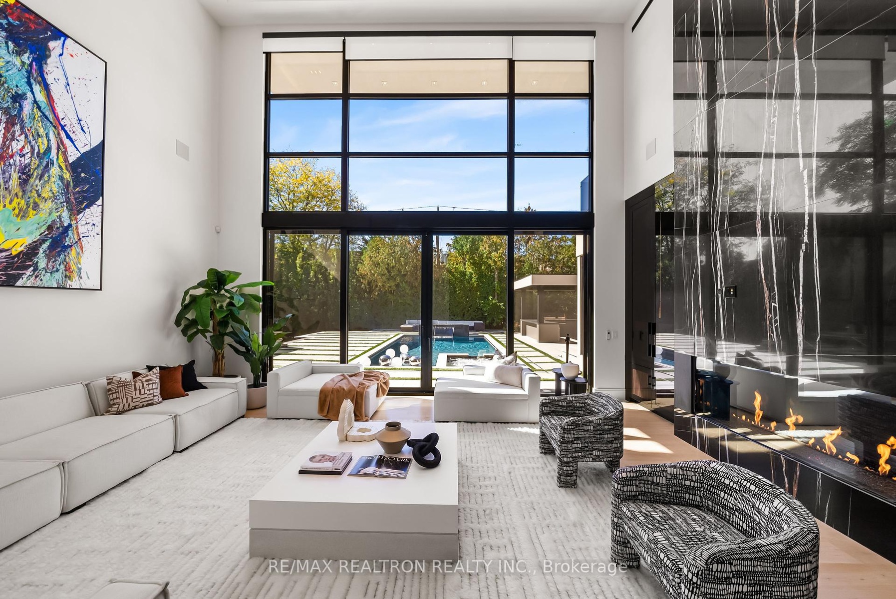 Gated Modern Masterpiece in Prestigious Bayview Glen. A striking showpiece in the exclusive Bayview Glen community, this estate is defined by bold design and uncompromising luxury. The exterior pairs Indiana limestone slabs with ACM panels, European aluminum tilt & slide windows, and a lifetime metal roof. Remote-access security gates and an 11-foot European pivot door create a dramatic first impression. Inside, soaring 24-foot ceilings define the family room, anchored by a marble fireplace and framed by floor-to-ceiling windows with integrated speakers. A floating glass staircase and elevator connect all three levels. Comfort is unmatched with heated main and lower levels, plus heated garages, driveway, steps, walkways, and pathways leading to the cabana. The chefs kitchen offers custom cabinetry, Thermador appliances, a Gaggenau wine cooler, and a waterfall island with leathered marble countertop, complemented by a full prep kitchen. The formal dining room is highlighted by an illuminated onyx wall and designer chandelier, while the living room boasts a backlit onyx fireplace as a dramatic focal point. The primary suite is a private sanctuary with boutique walk-in closet, balcony, fireplace, and spa-inspired ensuite with steam shower. In total, the home offers 5+1 bedrooms and 10 bathrooms. The entertainers lower level features a 26-foot bar with Mario Romano backsplash, 7.2 Dolby Atmos theatre with 150 screen and skylight, wine cellar, nanny suite, fitness room with steam sauna, and a spacious lounge with 100 fireplace and walk-up to yard. Outdoors, southwest exposure frames a resort setting: a Todd saltwater pool, Jacuzzi with independent controls, cascading waterfall with gas fireplace and heated pathways. The cabana doubles as an outdoor kitchen with barbecue, fridge, cabinetry, outdoor TV, shower, 2-piece bath, and built-in speakers. An LA-inspired showpiece in Bayview Glen, blending contemporary design with world-class finishes.