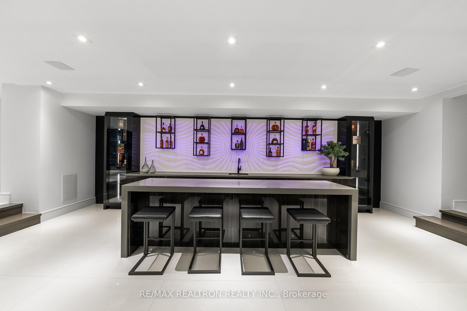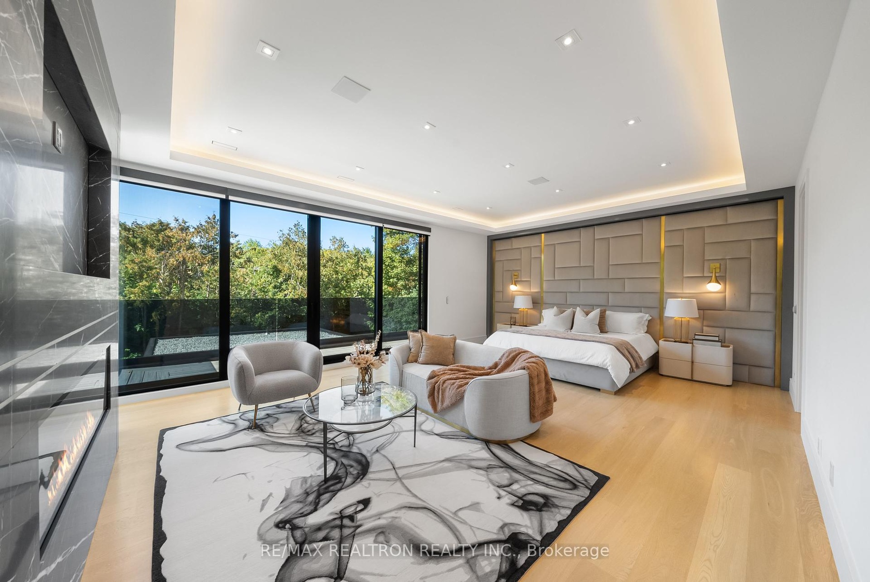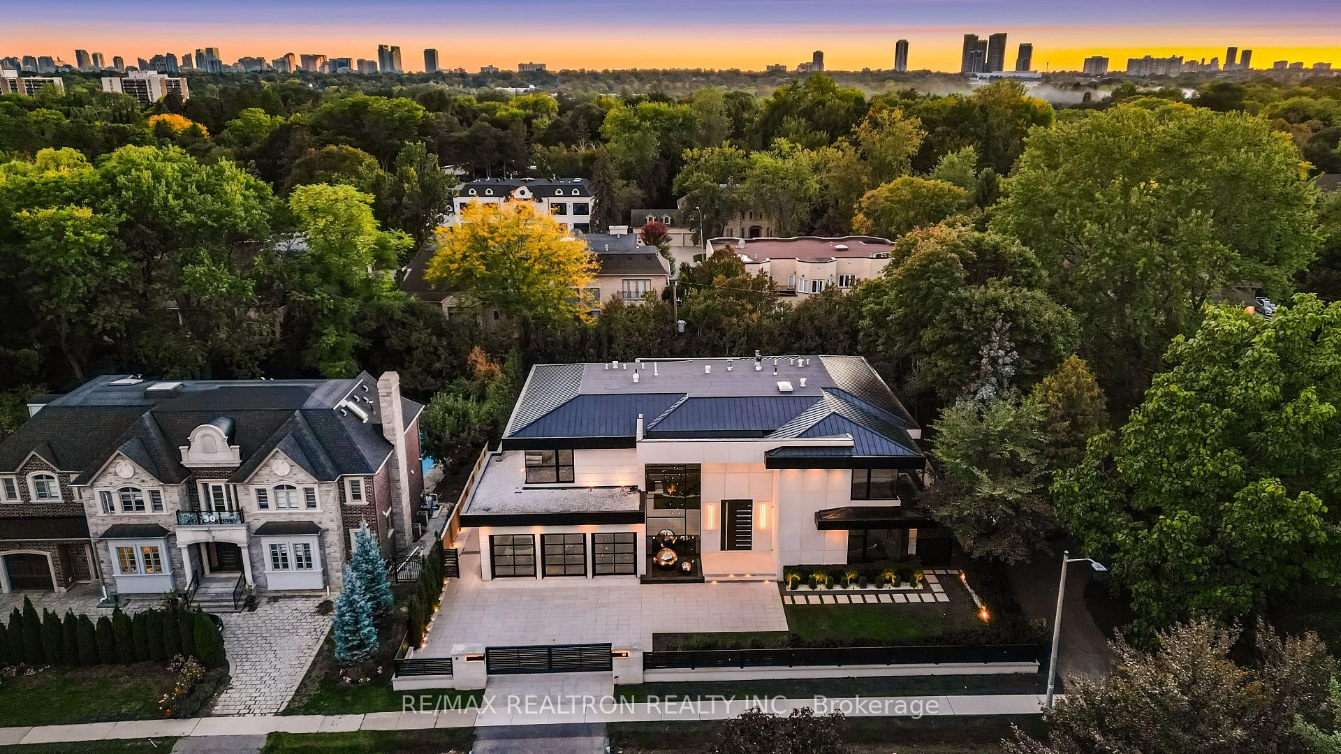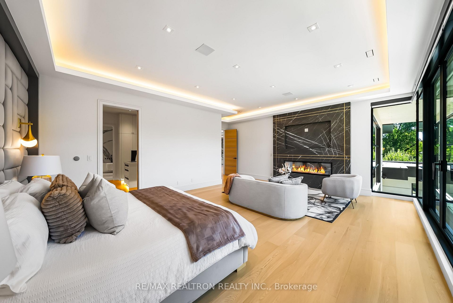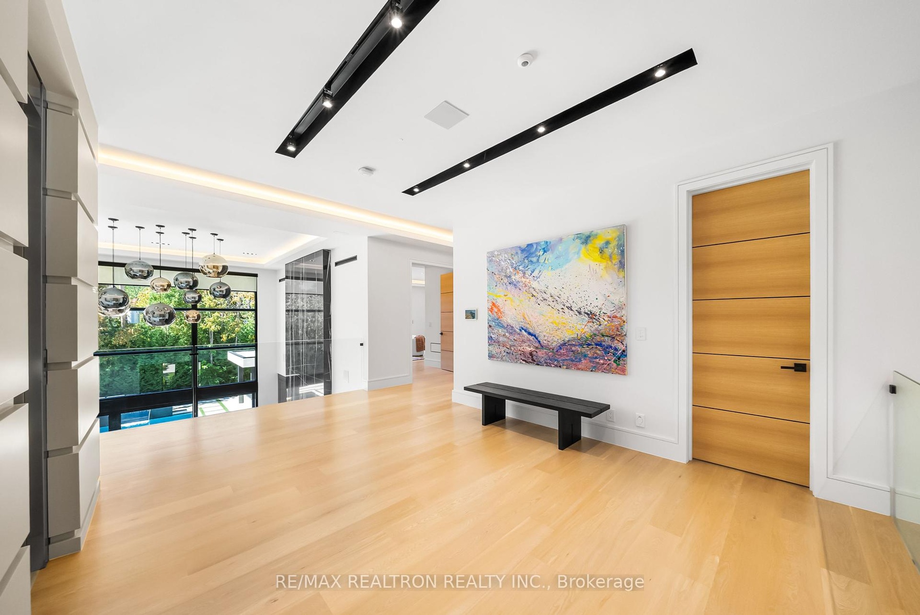 Gated Modern Masterpiece in Prestigious Bayview Glen. A striking showpiece in the exclusive Bayview Glen community, this estate is defined by bold design and uncompromising luxury. The exterior pairs Indiana limestone slabs with ACM panels, European aluminum tilt & slide windows, and a lifetime metal roof. Remote-access security gates and an 11-foot European pivot door create a dramatic first impression. Inside, soaring 24-foot ceilings define the family room, anchored by a marble fireplace and framed by floor-to-ceiling windows with integrated speakers. A floating glass staircase and elevator connect all three levels. Comfort is unmatched with heated main and lower levels, plus heated garages, driveway, steps, walkways, and pathways leading to the cabana. The chefs kitchen offers custom cabinetry, Thermador appliances, a Gaggenau wine cooler, and a waterfall island with leathered marble countertop, complemented by a full prep kitchen. The formal dining room is highlighted by an illuminated onyx wall and designer chandelier, while the living room boasts a backlit onyx fireplace as a dramatic focal point. The primary suite is a private sanctuary with boutique walk-in closet, balcony, fireplace, and spa-inspired ensuite with steam shower. In total, the home offers 5+1 bedrooms and 10 bathrooms. The entertainers lower level features a 26-foot bar with Mario Romano backsplash, 7.2 Dolby Atmos theatre with 150 screen and skylight, wine cellar, nanny suite, fitness room with steam sauna, and a spacious lounge with 100 fireplace and walk-up to yard. Outdoors, southwest exposure frames a resort setting: a Todd saltwater pool, Jacuzzi with independent controls, cascading waterfall with gas fireplace and heated pathways. The cabana doubles as an outdoor kitchen with barbecue, fridge, cabinetry, outdoor TV, shower, 2-piece bath, and built-in speakers. An LA-inspired showpiece in Bayview Glen, blending contemporary design with world-class finishes.