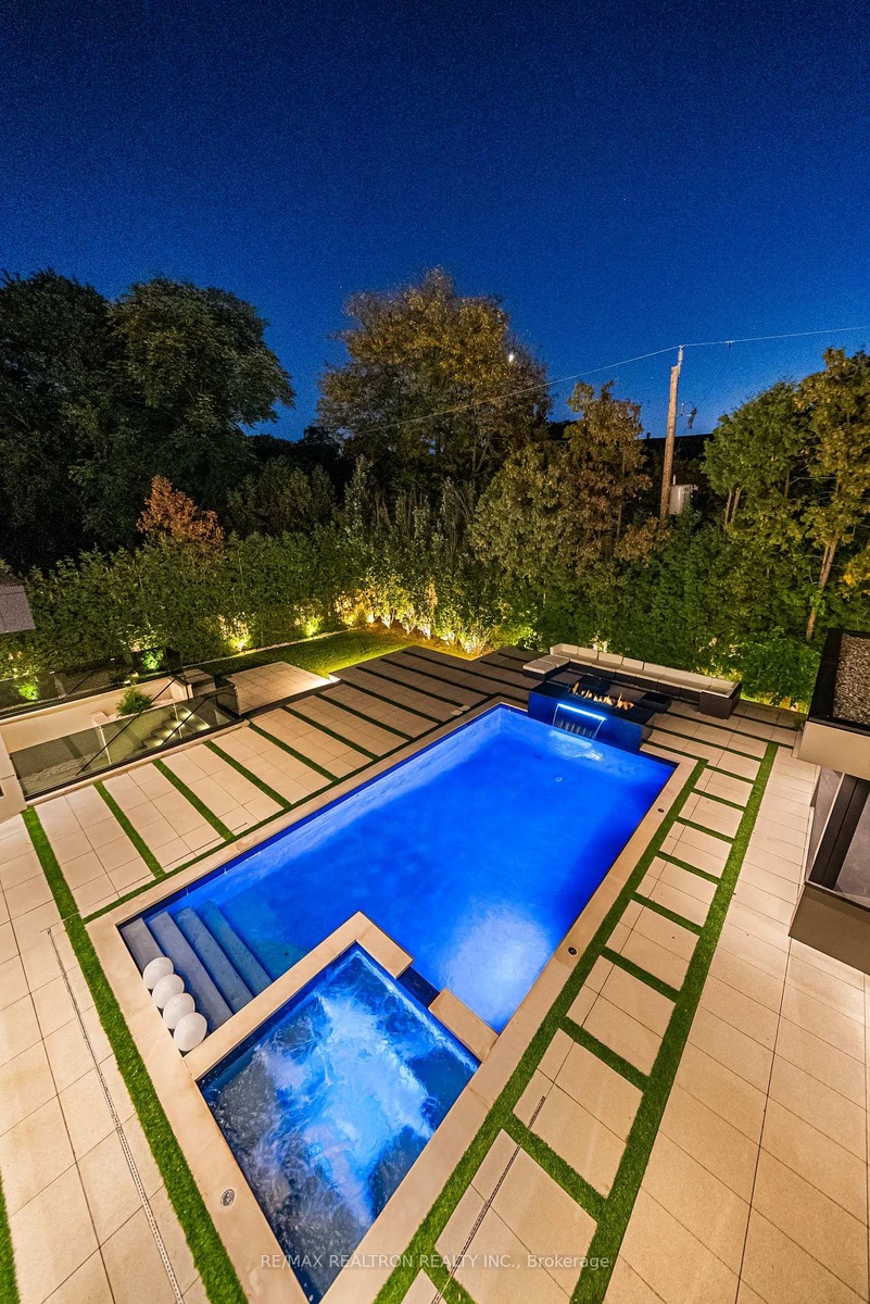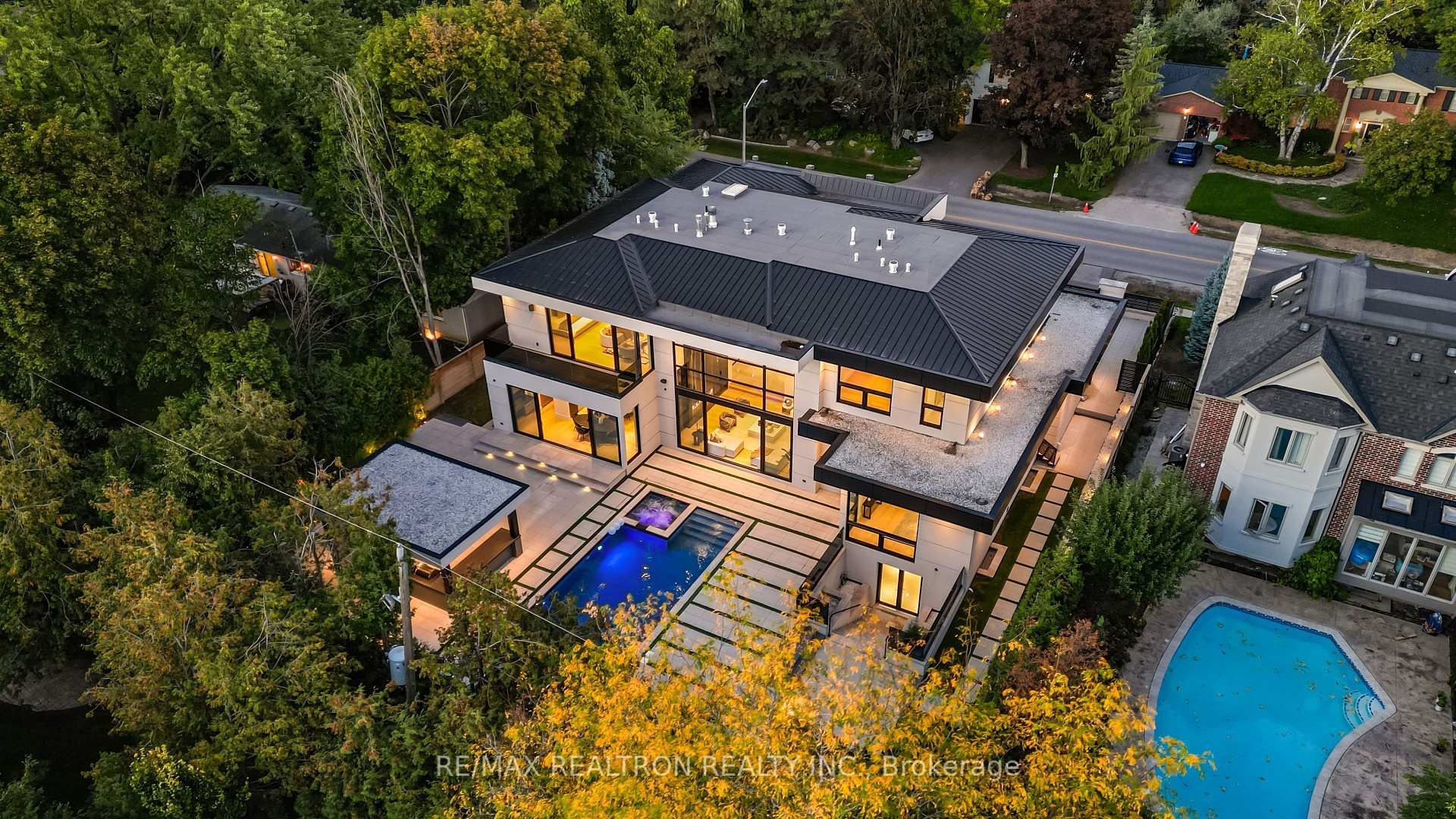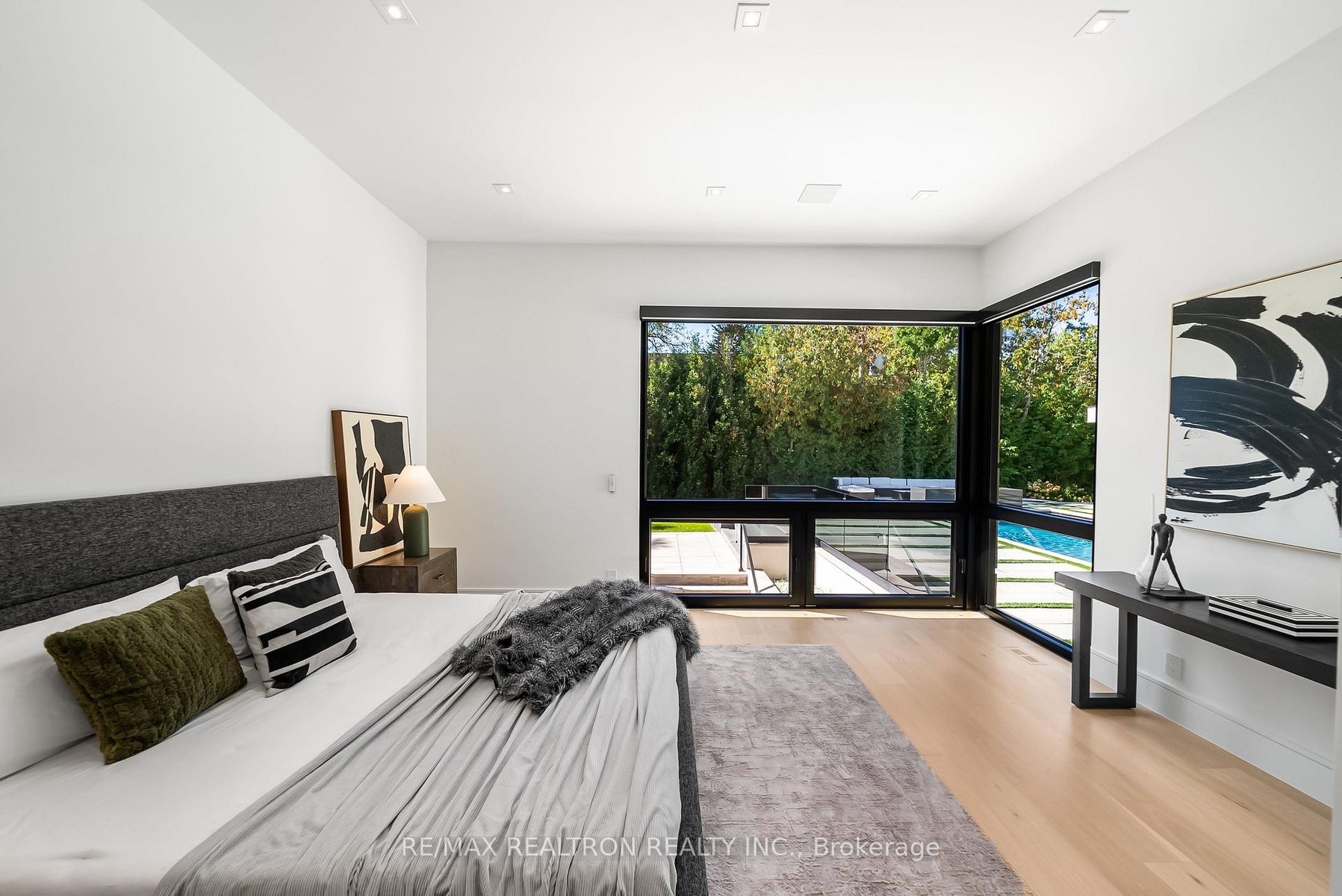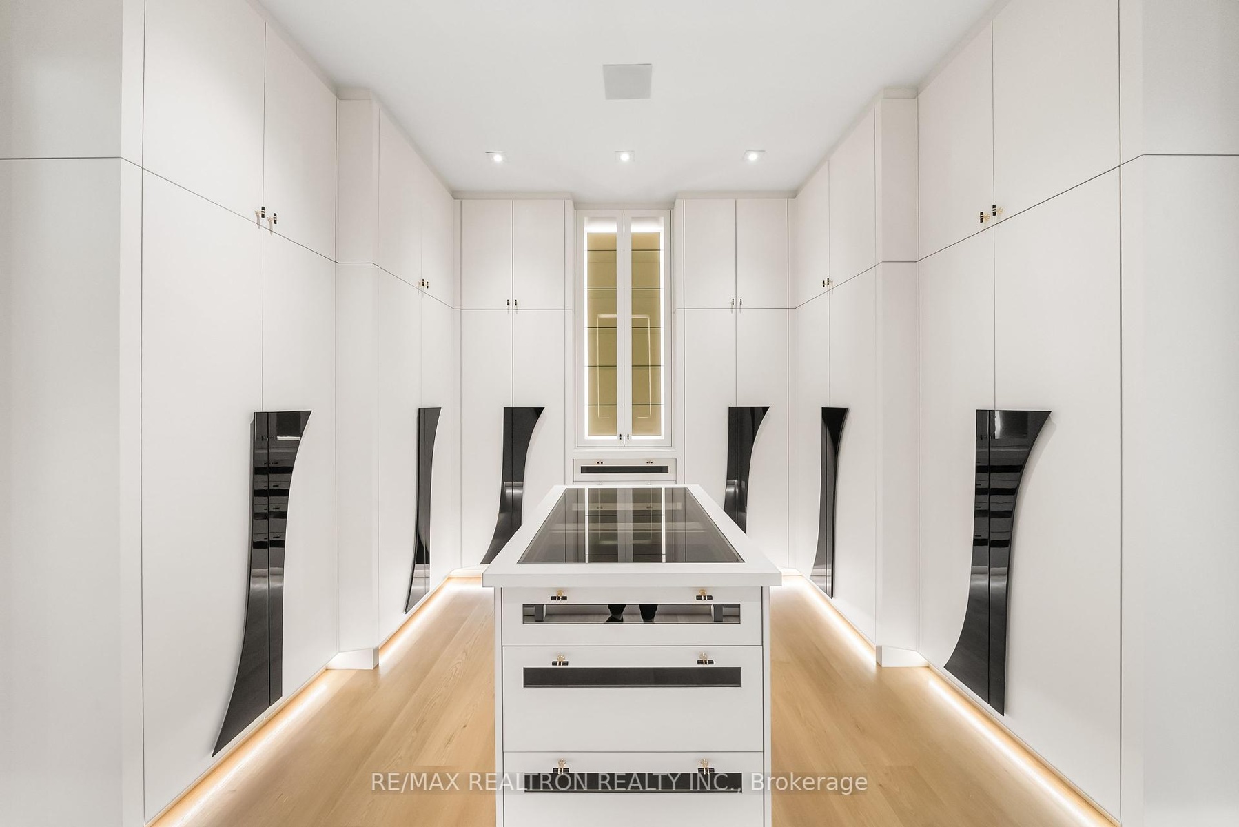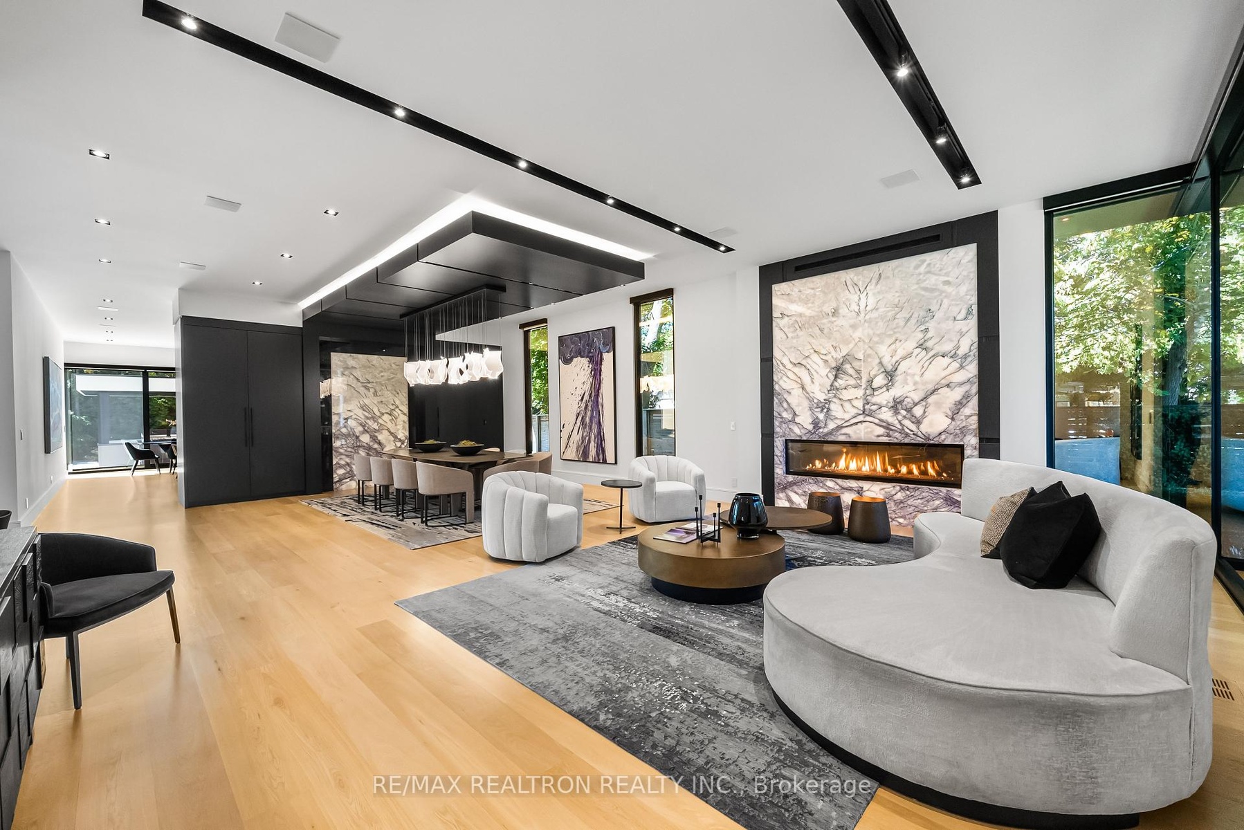 Gated Modern Masterpiece in Prestigious Bayview Glen. A striking showpiece in the exclusive Bayview Glen community, this estate is defined by bold design and uncompromising luxury. The exterior pairs Indiana limestone slabs with ACM panels, European aluminum tilt & slide windows, and a lifetime metal roof. Remote-access security gates and an 11-foot European pivot door create a dramatic first impression. Inside, soaring 24-foot ceilings define the family room, anchored by a marble fireplace and framed by floor-to-ceiling windows with integrated speakers. A floating glass staircase and elevator connect all three levels. Comfort is unmatched with heated main and lower levels, plus heated garages, driveway, steps, walkways, and pathways leading to the cabana. The chefs kitchen offers custom cabinetry, Thermador appliances, a Gaggenau wine cooler, and a waterfall island with leathered marble countertop, complemented by a full prep kitchen. The formal dining room is highlighted by an illuminated onyx wall and designer chandelier, while the living room boasts a backlit onyx fireplace as a dramatic focal point. The primary suite is a private sanctuary with boutique walk-in closet, balcony, fireplace, and spa-inspired ensuite with steam shower. In total, the home offers 5+1 bedrooms and 10 bathrooms. The entertainers lower level features a 26-foot bar with Mario Romano backsplash, 7.2 Dolby Atmos theatre with 150 screen and skylight, wine cellar, nanny suite, fitness room with steam sauna, and a spacious lounge with 100 fireplace and walk-up to yard. Outdoors, southwest exposure frames a resort setting: a Todd saltwater pool, Jacuzzi with independent controls, cascading waterfall with gas fireplace and heated pathways. The cabana doubles as an outdoor kitchen with barbecue, fridge, cabinetry, outdoor TV, shower, 2-piece bath, and built-in speakers. An LA-inspired showpiece in Bayview Glen, blending contemporary design with world-class finishes.