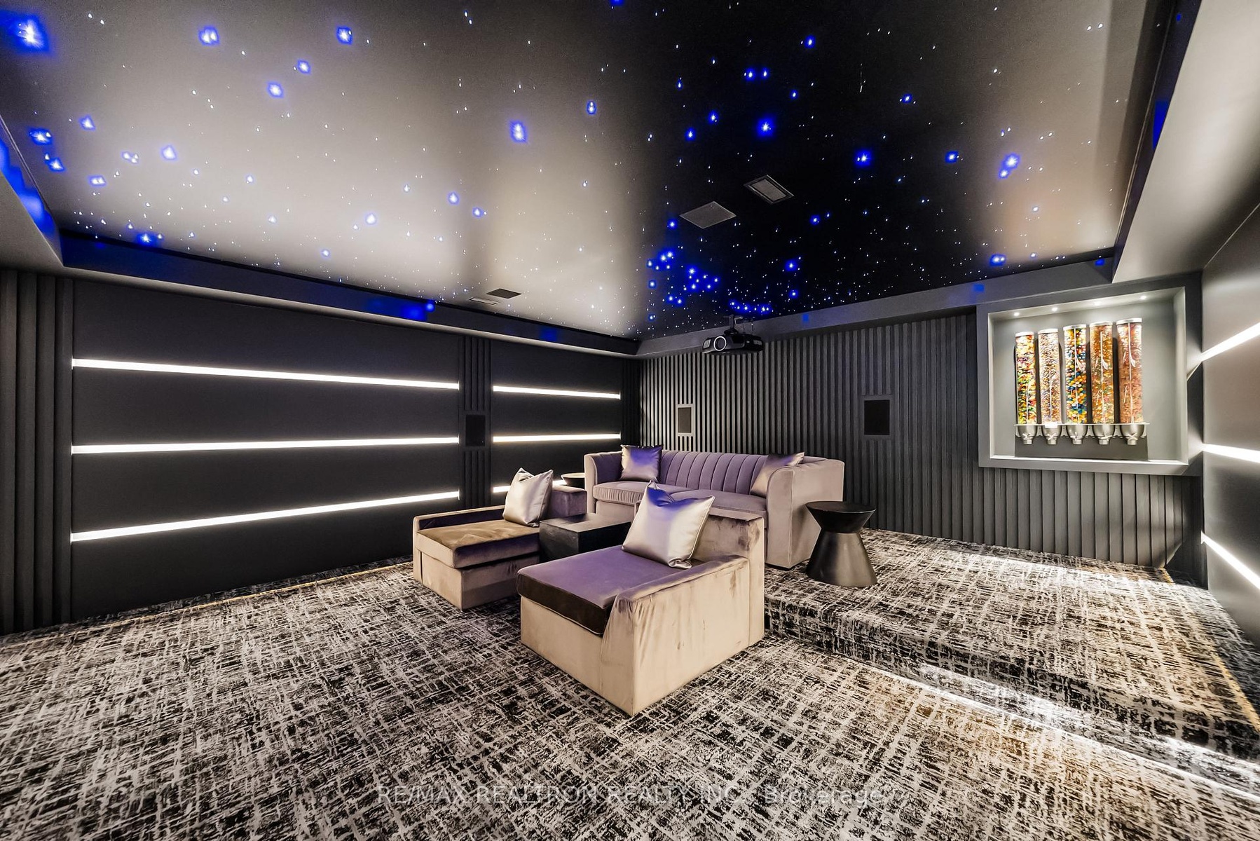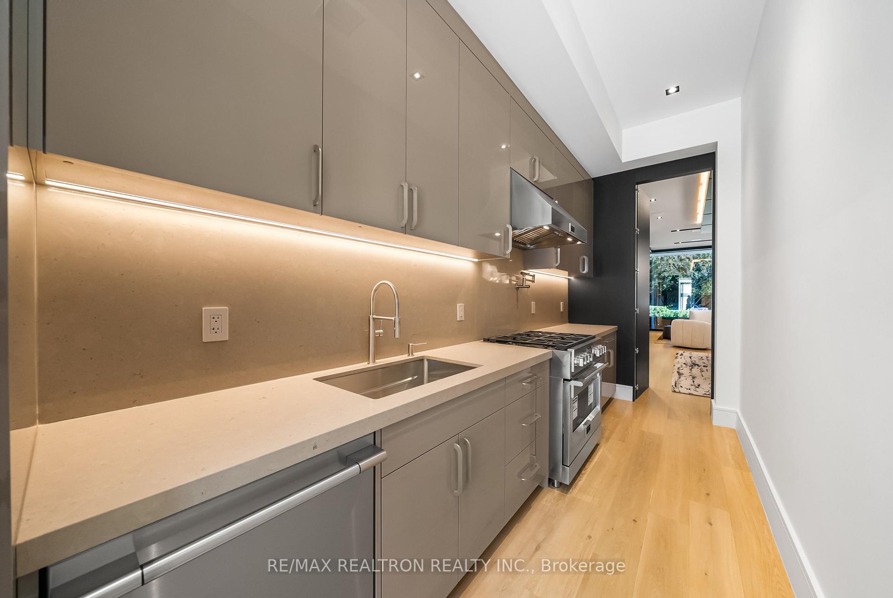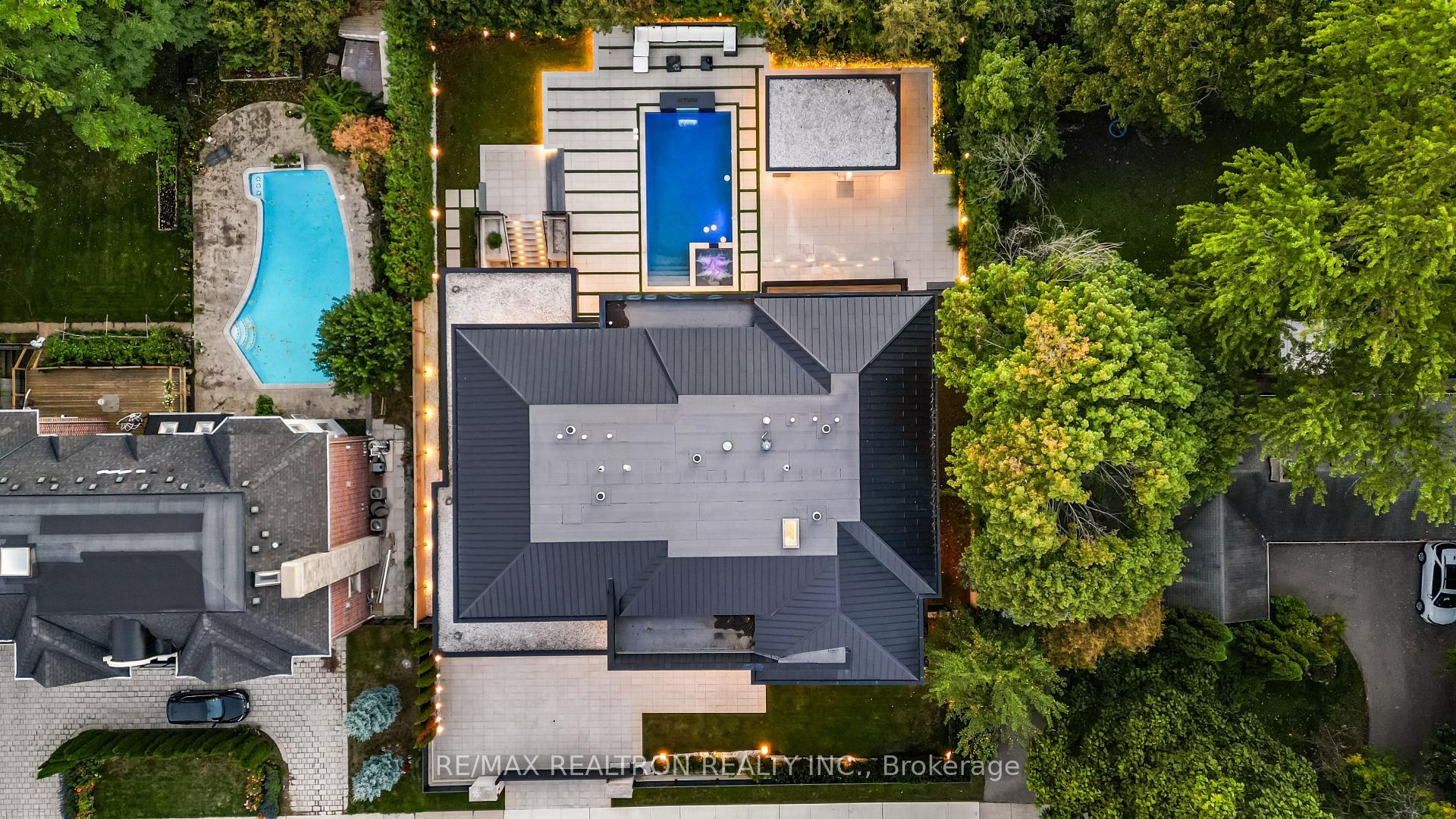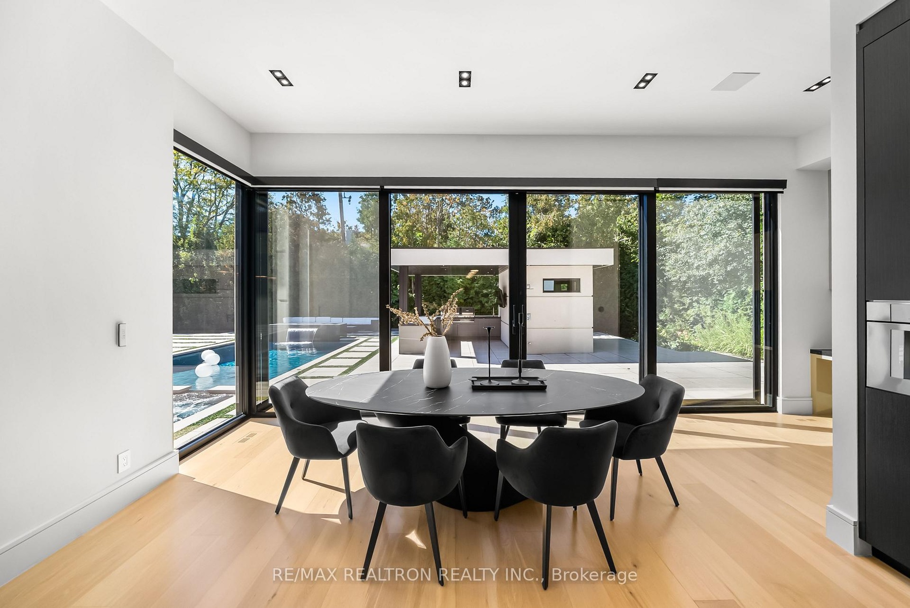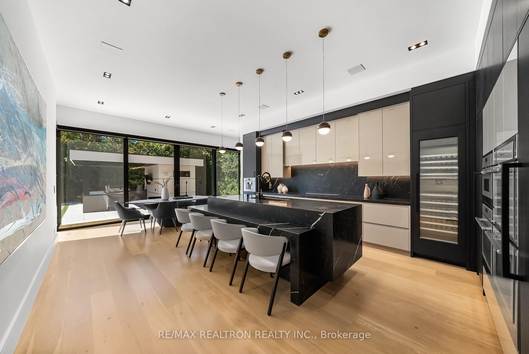 Gated Modern Masterpiece in Prestigious Bayview Glen. A striking showpiece in the exclusive Bayview Glen community, this estate is defined by bold design and uncompromising luxury. The exterior pairs Indiana limestone slabs with ACM panels, European aluminum tilt & slide windows, and a lifetime metal roof. Remote-access security gates and an 11-foot European pivot door create a dramatic first impression. Inside, soaring 24-foot ceilings define the family room, anchored by a marble fireplace and framed by floor-to-ceiling windows with integrated speakers. A floating glass staircase and elevator connect all three levels. Comfort is unmatched with heated main and lower levels, plus heated garages, driveway, steps, walkways, and pathways leading to the cabana. The chefs kitchen offers custom cabinetry, Thermador appliances, a Gaggenau wine cooler, and a waterfall island with leathered marble countertop, complemented by a full prep kitchen. The formal dining room is highlighted by an illuminated onyx wall and designer chandelier, while the living room boasts a backlit onyx fireplace as a dramatic focal point. The primary suite is a private sanctuary with boutique walk-in closet, balcony, fireplace, and spa-inspired ensuite with steam shower. In total, the home offers 5+1 bedrooms and 10 bathrooms. The entertainers lower level features a 26-foot bar with Mario Romano backsplash, 7.2 Dolby Atmos theatre with 150 screen and skylight, wine cellar, nanny suite, fitness room with steam sauna, and a spacious lounge with 100 fireplace and walk-up to yard. Outdoors, southwest exposure frames a resort setting: a Todd saltwater pool, Jacuzzi with independent controls, cascading waterfall with gas fireplace and heated pathways. The cabana doubles as an outdoor kitchen with barbecue, fridge, cabinetry, outdoor TV, shower, 2-piece bath, and built-in speakers. An LA-inspired showpiece in Bayview Glen, blending contemporary design with world-class finishes.
