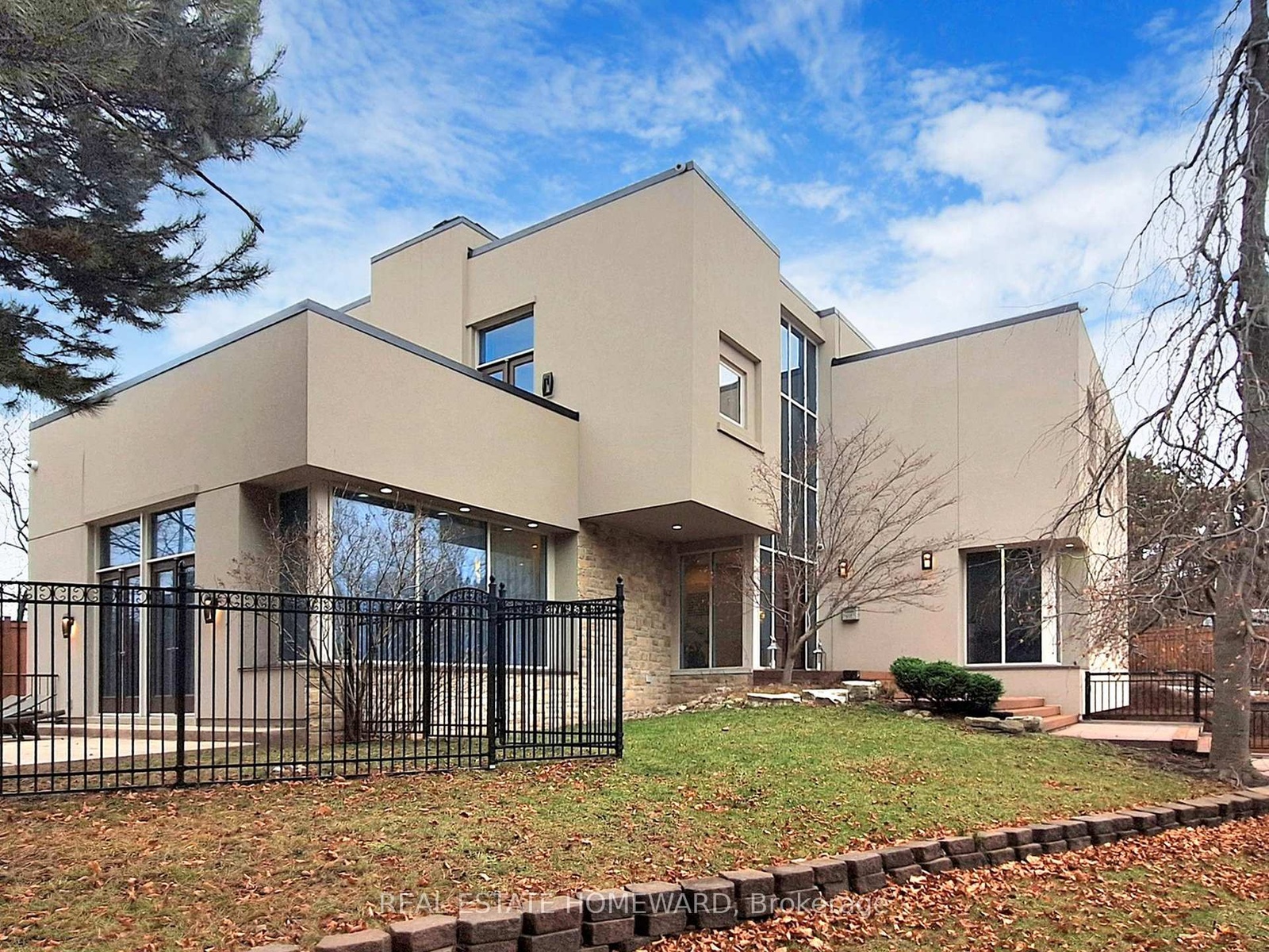 This exceptional home was designed by renowned architect Susan Black, whose visionary work earned an award for this very design. The house showcases her signature blend of innovation and elegance, making it not just a residence but a piece of architectural history. ***Built On Two Lots,***. Featured in the Globe and Mail on November 20 2005 , this house is celebrated as "Thoroughly modern but never cold" . The main floor boasts five expansive living areas seamlessly connected , with no doors to divide the space yet offering an intimate sense of privacy. A stunning 14 foot cathedral ceiling, loft inspired design elements, and open spaces create an atmosphere of grandeur. Four glass doors lead to different areas of the backyard, ensuring a harmonious indoor-outdoor flow. With 6 fireplaces scattered throughout, this home becomes the ultimate destination for both vibrant entertaining and cozy family evenings. The master suite is truly a dream come true, a retreat with two walks-out to a private terrace the size of a one-bedroom condo . This luxurious space is set apart from the rest of the second floor by a floating passage, offering tranquility and exclusivity. A diagonal skylight spans the entire second floor, flooding the home with natural light. The spa-like ensuite pampers you with a hidden sauna, while the extended skylight illuminates the walk-in closet and the hallway leading to the second floor common area . Here, you'll find a cozy space, perfect for a reading nook or a nightly gathering before bedtime. This area connects three generously sized bedrooms and invites you to pause , reflect and take in the beauty of life. Floor to ceiling loft-sized windows stretch from ground to roof, framing breathtaking views of each season , filling the house with light. This one-of-a-kind residence , is designed for those who value elegance , openness and the perfect balance of modern comfort and timeless warmth.