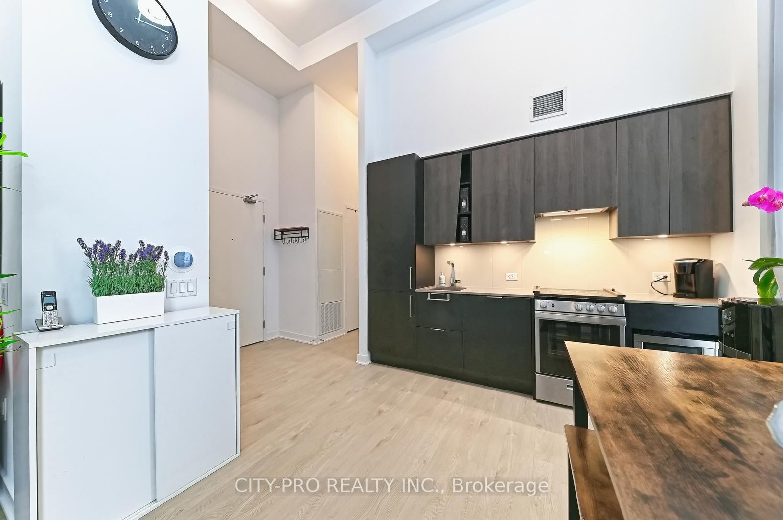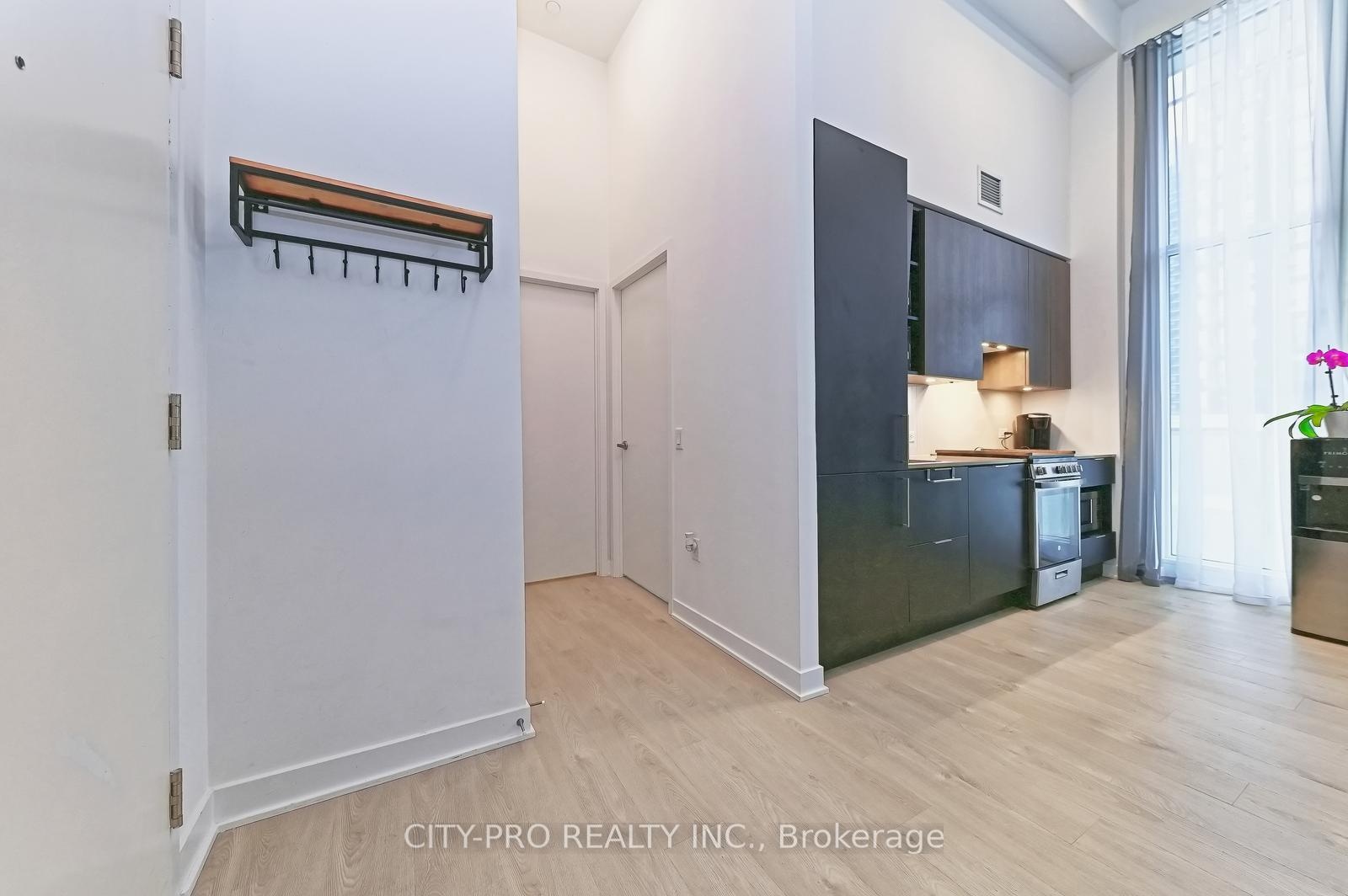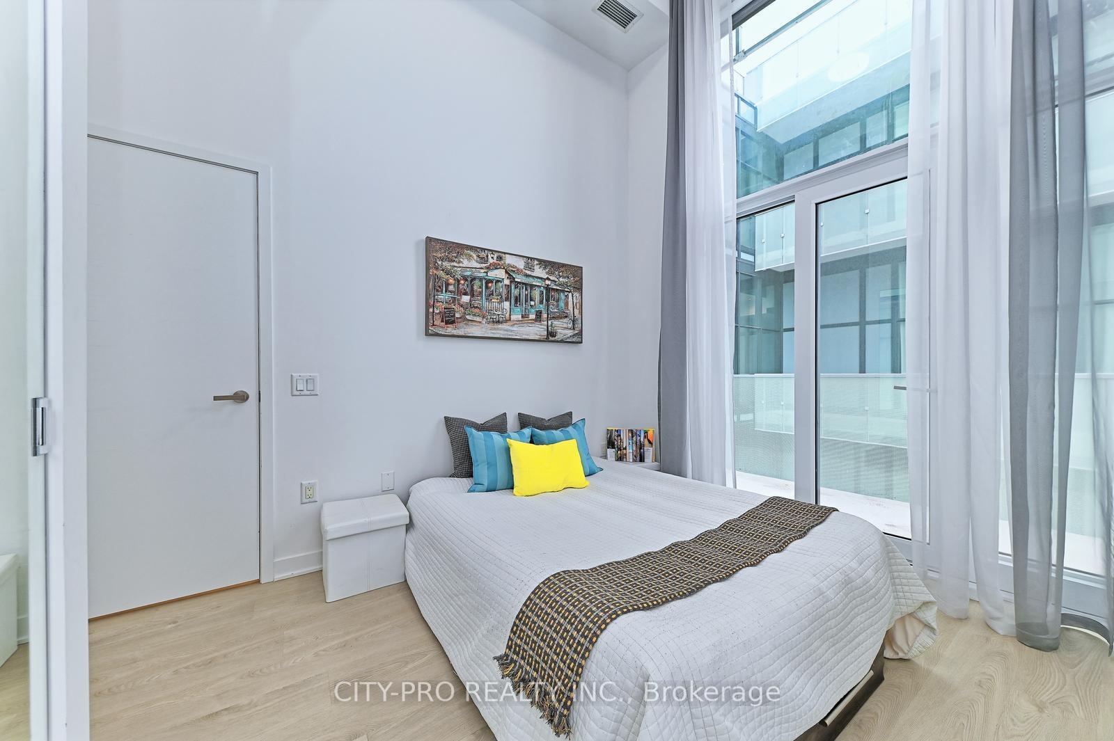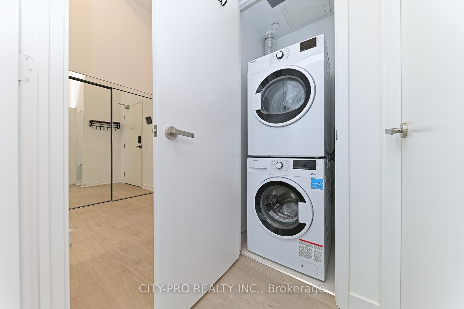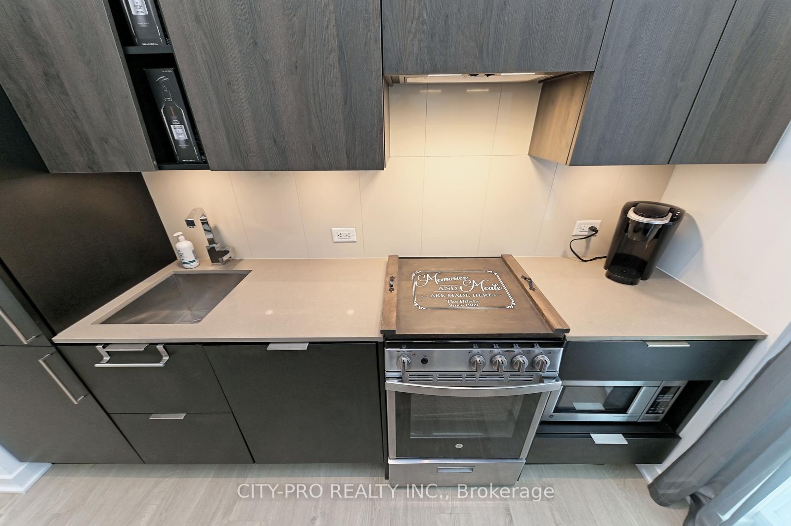Discover urban luxury in this stunning M City 1 residence. This two-bedroom, two-bathroom + Den Condo is defined by its dramatic 14-foot ceilings and floor-to-ceiling windows that flood the space with light. The expansive, 296 sq. ft. wrap-around balcony, accessible from both the living area and bedrooms, offers breathtaking city views. The modern kitchen is equipped with integrated appliances and boasts beautifully crafted custom cabinets. The interior is thoughtfully appointed with mirrored sliding closet doors in the master suite, second bedroom, and hallway. The unit is complete with roller blinds in the bedrooms, and elegant draperies throughout the living and dining areas for a finished, move-in-ready feel.