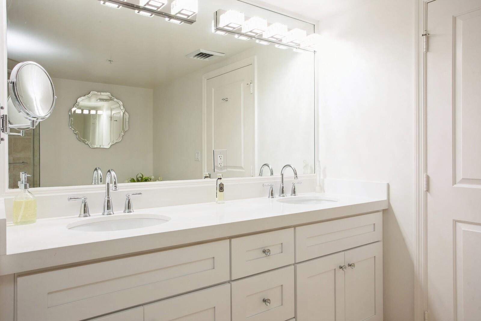 Exquisitely renovated luxury corner residence in the prestigious Metropolitan, ideally located in the heart of CityPlace, downtown West Palm Beach. Pristine and move-ready-just steps to world class shopping and fine dining. Elegant floor plan: 3 bedrooms, 2.5 baths, 1,608 sq feet on the 6th floor. Brand new wide-plank luxury flooring. Sleek modern kitchen with quartz waterfall island and top-tier appliances. Spa-style baths with matching quartz vanities and double sinks. Designer lighting and new A/C. Two premium garage spaces next to elevators. Expansive wraparound balcony with breathtaking skyline views. Amenities: 24/7 concierge, newly renovated rooftop pool, Zen garden, fitness center, club room.