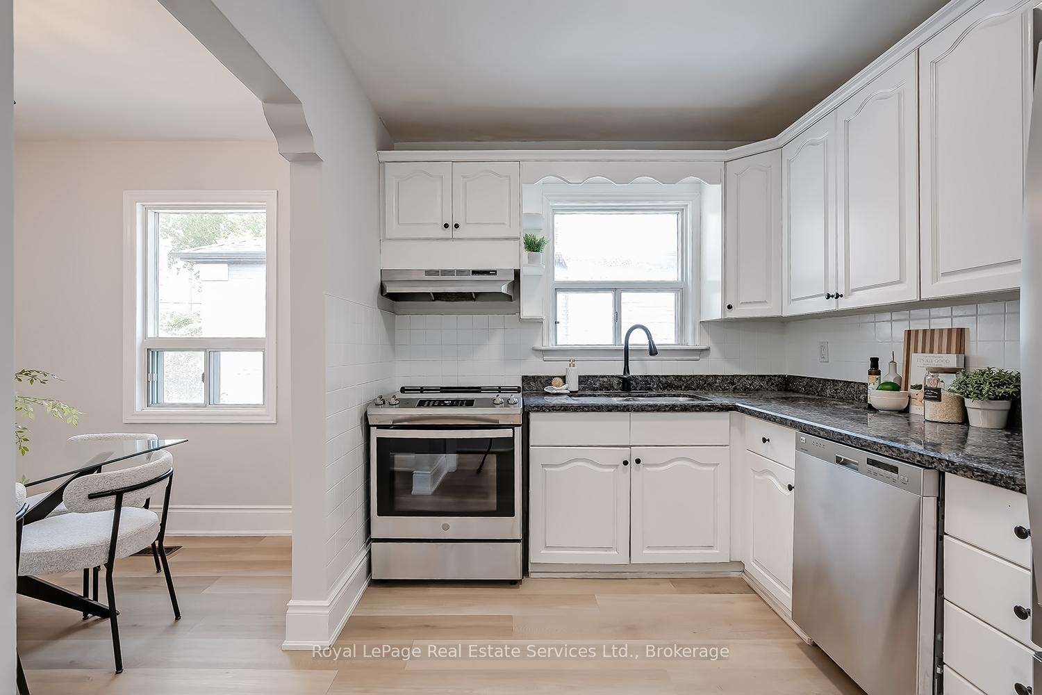 Wow! Attention First Time Homebuyers, Down-sizers, Commuters & Investors this is a Fantastic Detached Home recently updated in Walking Distance to Kerr Village, Downtown Oakville & the Lake. Located on a quiet Street only a few minute walk to shops & restaurants, public transit & the Oakville Go. This 3+2 Bed, 2 Bath Det. home w 2 Kitchens & Sep. Entrance to the basement has a Detached Garage & Private 44' x 138.25' lot backing onto the back field of the school. The main floor boasts Sep. Living & Dining Rms, Updated White Kitchen w Newer Stainless Steel Appliances (June '25), Three Good Sized Bedrooms, One w Walkout to back deck, 4 pc updated main bath. The lower level offers a sep. eat-in kitchen w Newer Stainless Steel Appliances (June'25), Sep. Sitting Area, Large Family Rm. or another Bedroom, 4th Bedroom & 4pc Updated Bath. The light fixtures, Trim, Hardware, Laminate Floors & Appliances are just some of the recent upgrades. The Private Backyard is Fully Fenced w Large Deck & backs onto the school field. Great space for Entertaining. Rare Double wide driveway for the area & parking for 5 cars. Don't miss this Amazing Opportunity to own a Detached Home in a Prime Location!