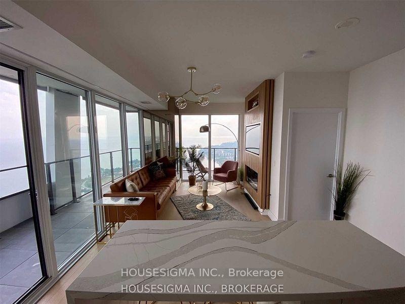 Stunning Corner Unit With Breathtaking Views of Lake Ontario and Downtown Toronto!Enjoy an expansive 800+ sq. ft. wraparound balcony perfect for relaxing or entertaining finished with elegant custom tiles for style and durability. Exclusive upgrades include full custom shelving in every closet, oak wood hallway panels, a striking oak feature wall with integrated TV and electric fireplace, and a showpiece book-matched island with built-in cabinets and dining section. The master bedroom is enhanced with a sophisticated designer bed-frame wall, creating a true retreat. Residents enjoy exclusive access to the Sky Lounge, VIP elevator, cigar room, and premium guest suite. Prime location steps to the lake, parks, shopping, transit, and top schools.