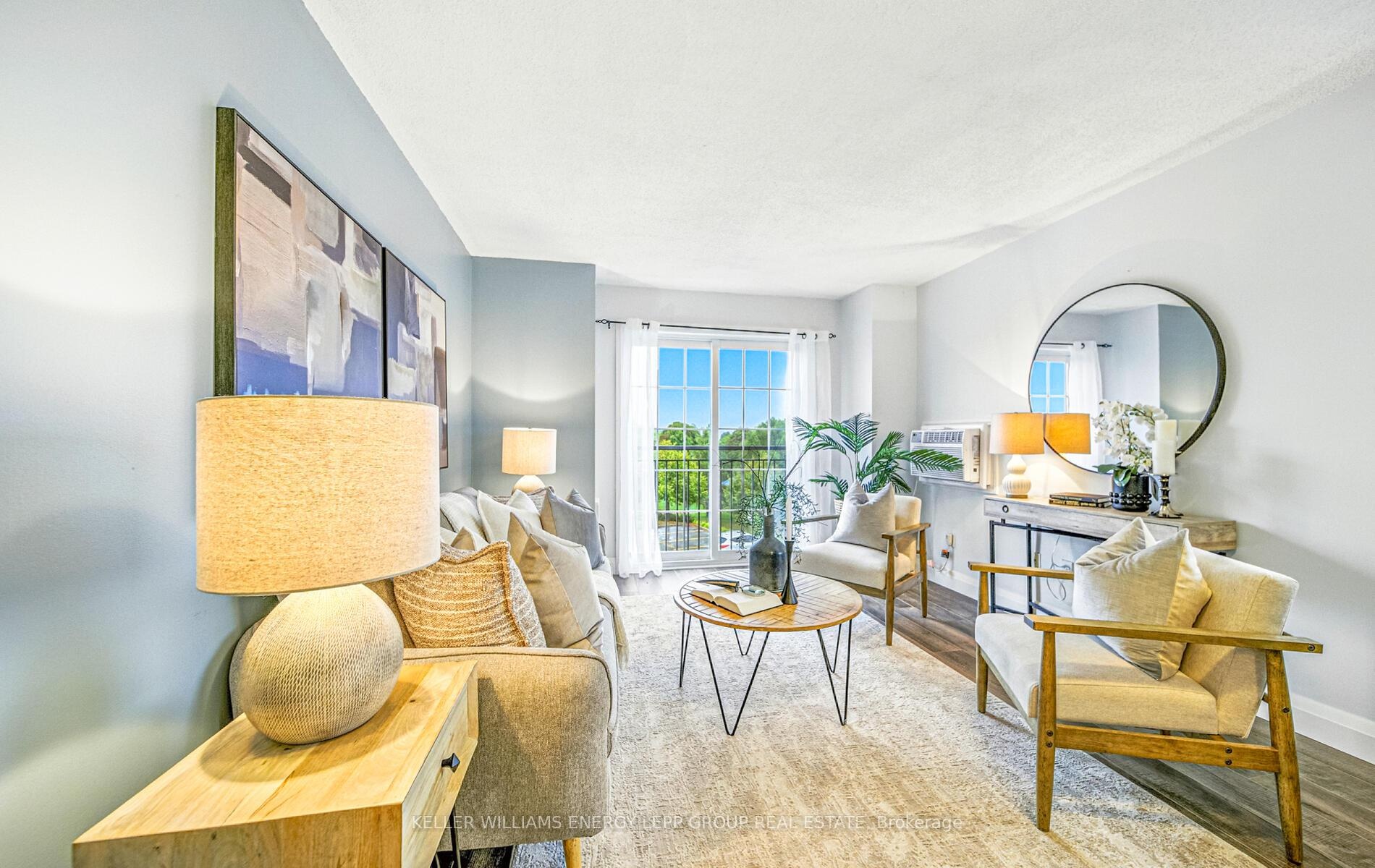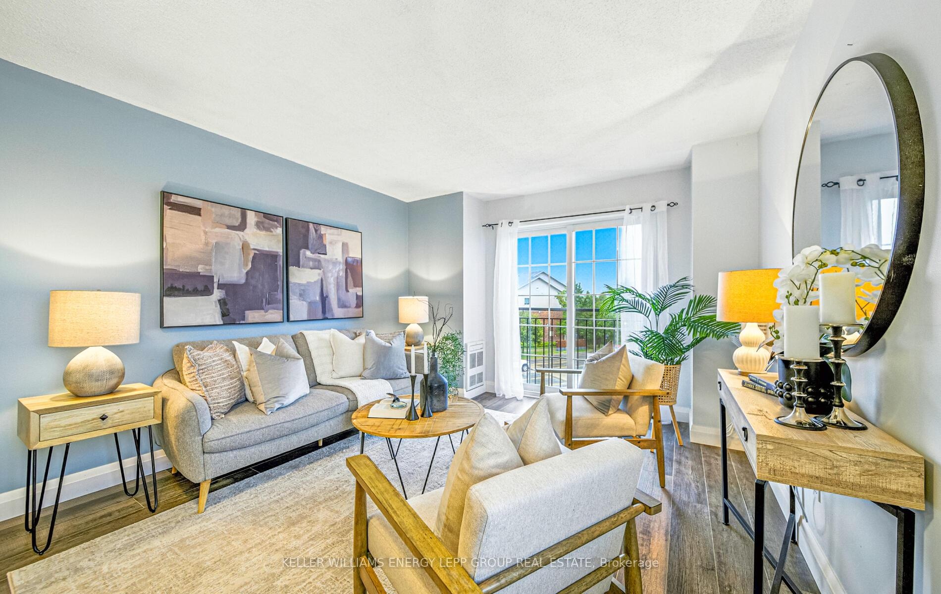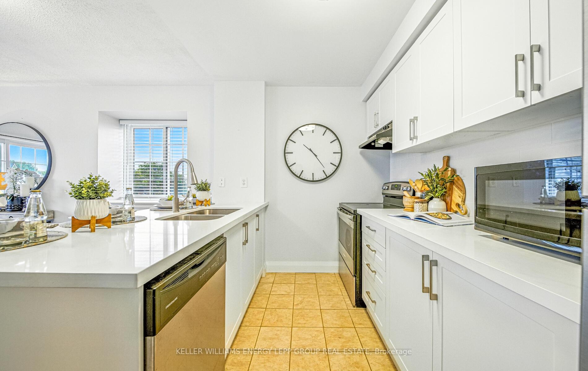 DescriptionBright and beautifully renovated south-facing corner unit in the heart of Bowmanville. This stunning 2-bedroom home offers rare privacy with no neighbours above and showcases a stylish open-concept layout. The kitchen features a centre island with bar seating, flowing seamlessly into a spacious living area with a Juliet balcony to enjoy the outdoor breeze. Renovated in October 2024, the home boasts a brand-new kitchen, bathroom, flooring, baseboards, and fresh paint, complemented by modern finishes and hardwood laminate flooring. The primary bedroom includes a walk-in closet, adding both function and luxury. Perfectly situated in a prime location with easy access to the 401, schools, parks, shopping, and public transit. Click the Realtor link for feature sheet, floor plan and you tube videoVirtual Tour: https://my.matterport.com/show/?m=NVDyomqpNR2&mls=1Amenities- Carpet Free