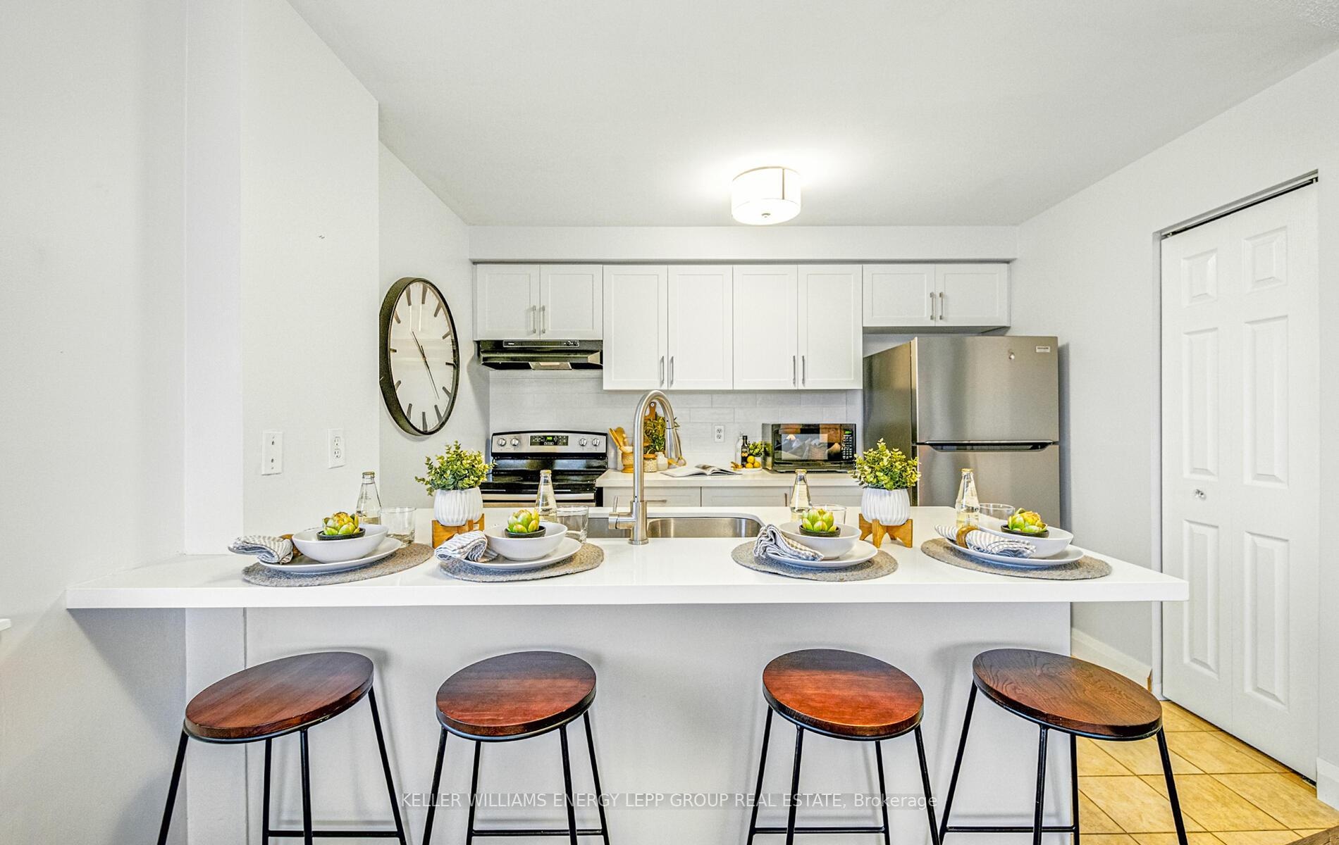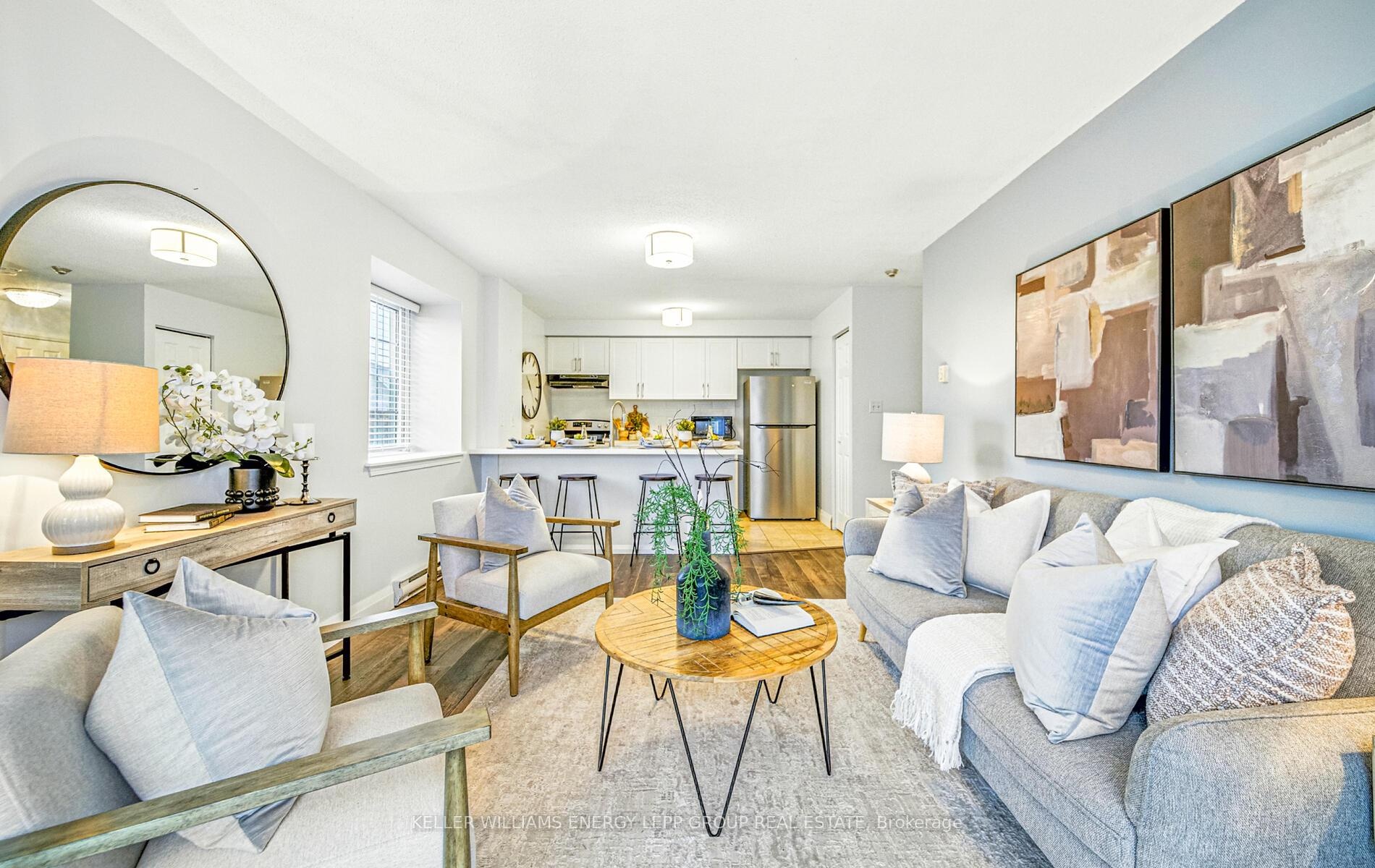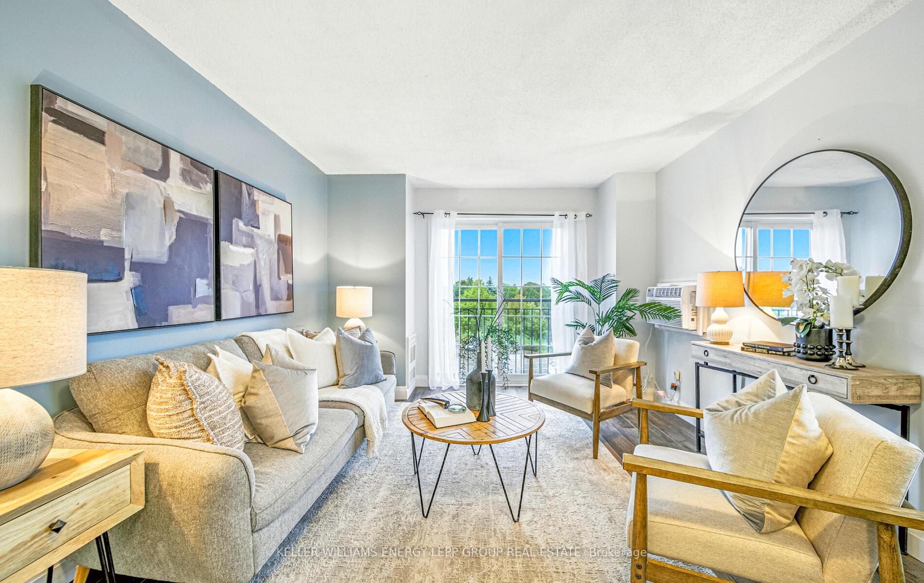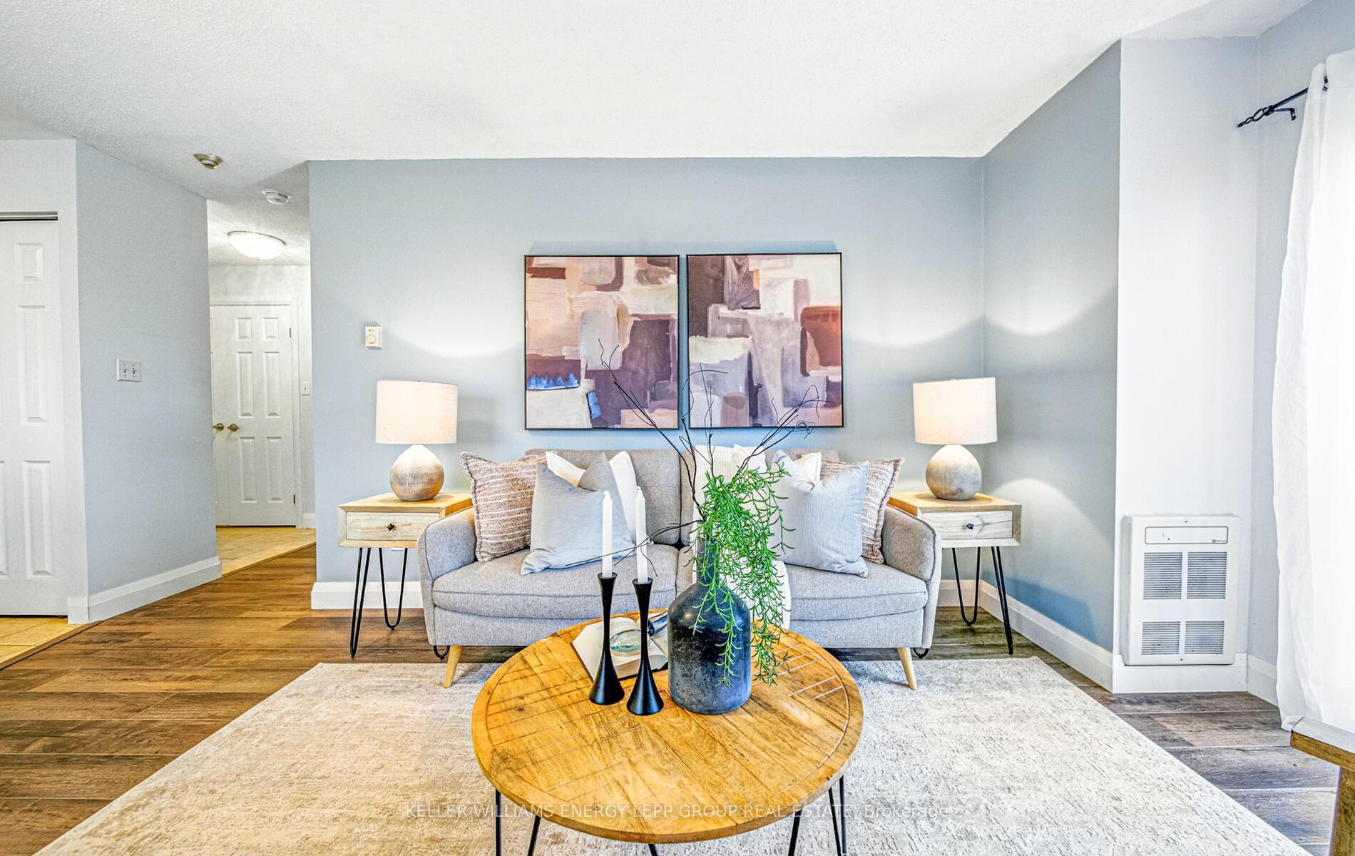 DescriptionBright and beautifully renovated south-facing corner unit in the heart of Bowmanville. This stunning 2-bedroom home offers rare privacy with no neighbours above and showcases a stylish open-concept layout. The kitchen features a centre island with bar seating, flowing seamlessly into a spacious living area with a Juliet balcony to enjoy the outdoor breeze. Renovated in October 2024, the home boasts a brand-new kitchen, bathroom, flooring, baseboards, and fresh paint, complemented by modern finishes and hardwood laminate flooring. The primary bedroom includes a walk-in closet, adding both function and luxury. Perfectly situated in a prime location with easy access to the 401, schools, parks, shopping, and public transit. Click the Realtor link for feature sheet, floor plan and you tube videoVirtual Tour: https://my.matterport.com/show/?m=NVDyomqpNR2&mls=1Amenities- Carpet Free