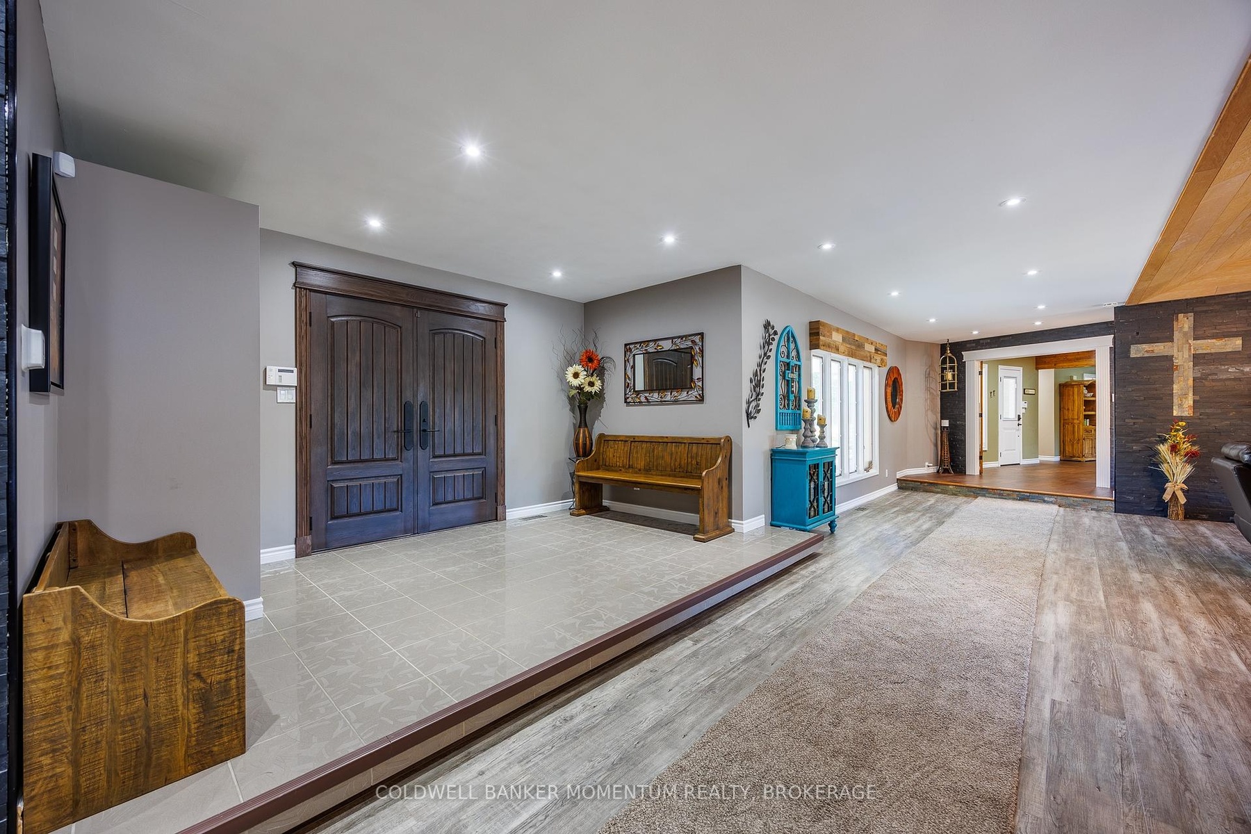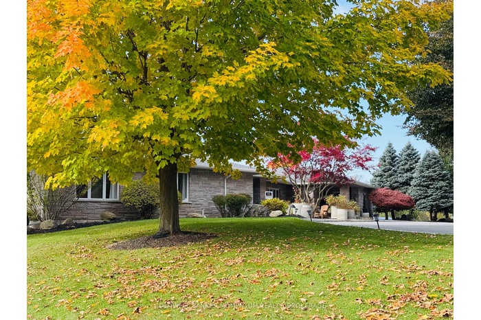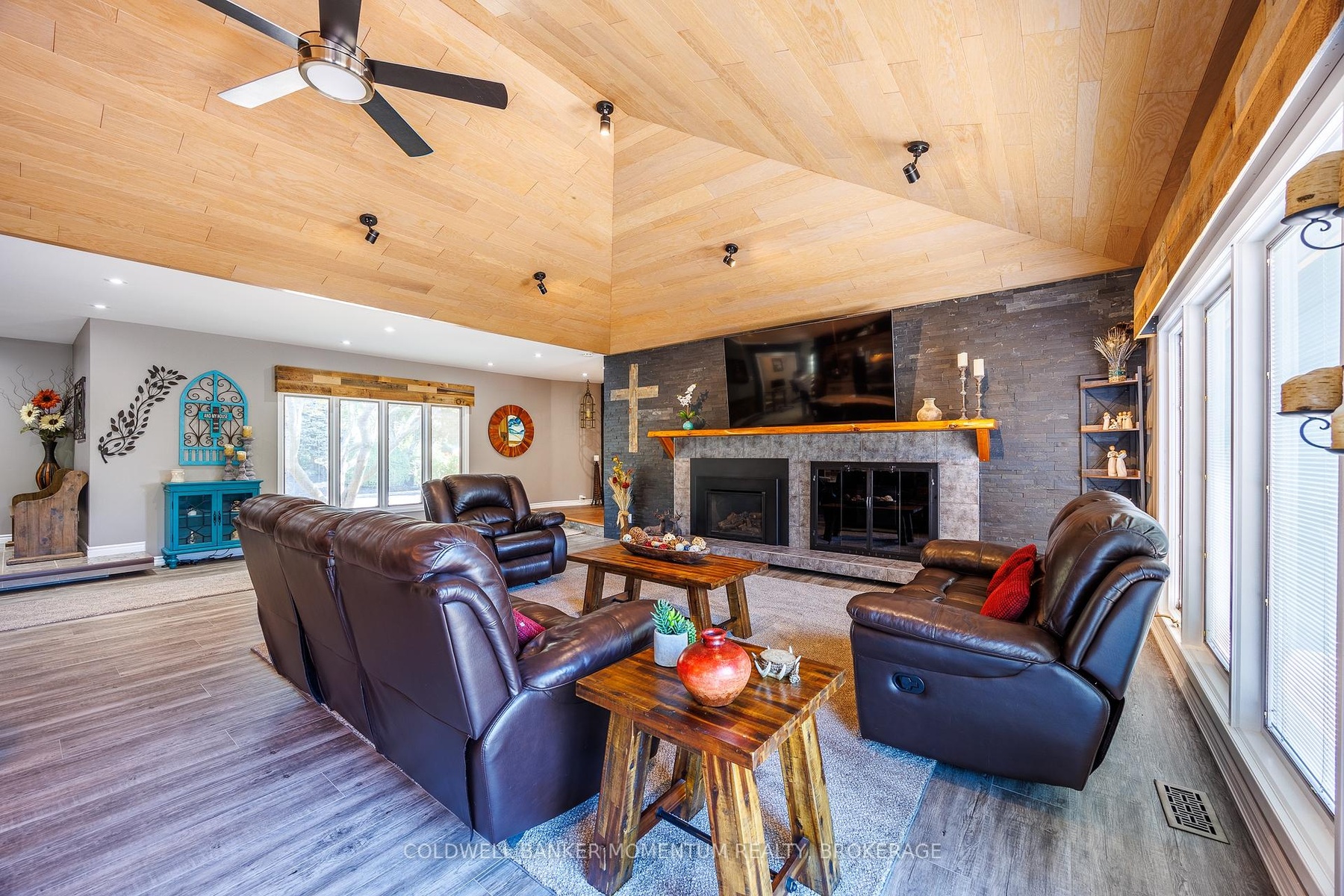 DescriptionWelcome to your dream home! This exquisite estate offers custom luxury and privacy on a sprawling 20+-acres with OS zoning for other potential business opportunities. Nestled alongside a pristine golf course and featuring two serene ponds, this property provides a picturesque retreat from the hustle and bustle of daily life. Over 8200 sq ft of luxurious living space. 6 spacious bedrooms with 5 having their own elegant ensuite bathrooms, and an office that can be easily converted to a bedroom, heated floor in primary bath with romance tub all custom. 7 bathrooms: 5 well-appointed ensuites with 2 being wheelchair assessable 2 gourmet kitchens with well equipped appliances in lower-level kitchen with industrial sink, upper level has large pantry and extended island , perfect for entertaining and everyday living. Main living room features vaulted wooden ceiling, fireplace, and professional designer bar area . Second living room features another fireplace & vaulted ceiling . Heated 3 car with roughed in area for a possible bathroom. Expansive living areas with exquisite finishes, multiple fireplaces, and custom details throughout. Beautifully landscaped grounds, water, hydro and internet to 3 tents with custom carpets and 40 car parking lot. Repaved driveway (2022), new roof (2019) with 3 skylights. Private pond/w bridge (2020) and electrical outlet, 3 large custom-built decks w/gazebo, walking distance to the golf course. Led spotlights throughout home (2021), large windows; two bay windows (2022) panoramic views, a grand entryway with custom 2 entry door (2022), ample front parking with wifi access. This estate combines the grandeur of an opulent residence with the tranquility of nature, creating a perfect sanctuary for relaxation and entertainment. Whether you're hosting elegant gatherings or enjoying quiet evenings by the pond, this property offers an exceptional lifestyle. Dont miss your chance to own this unparalleled estate with endless possibilities.Virtual Tour: https://vimeo.com/1002257843?share=copyAmenities- Bar Fridge