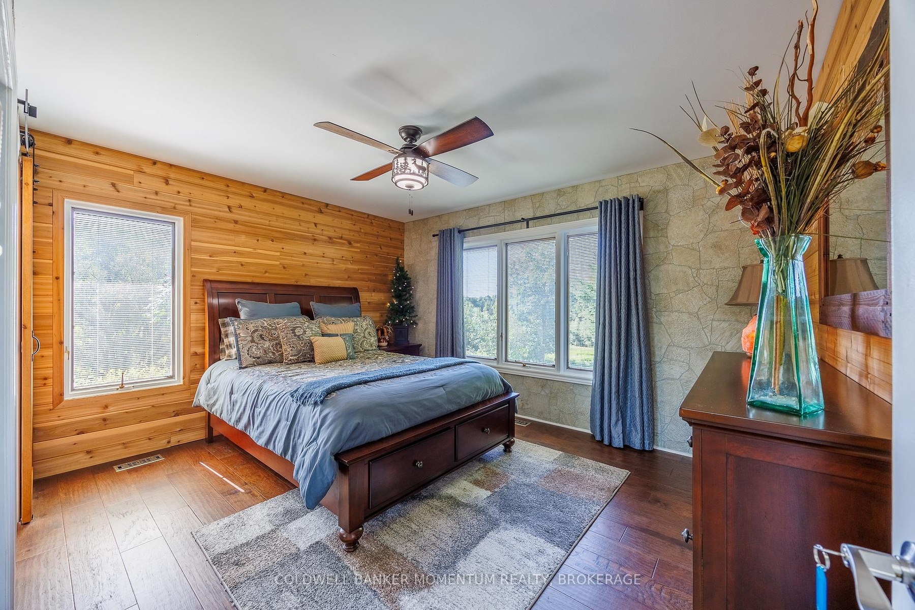 Welcome to your dream home! This exquisite estate offers custom luxury and privacy on a sprawling 20+-acres with OS zoning for other potential business opportunities. Nestled alongside a pristine golf course and featuring two serene ponds, this property provides a picturesque retreat from the hustle and bustle of daily life. Over 8200 sq ft of luxurious living space. 6 spacious bedrooms with 5 having their own elegant ensuite bathrooms, and an office that can be easily converted to a bedroom, heated floor in primary bath with romance tub all custom. 7 bathrooms: 5 well-appointed ensuites with 2 being wheelchair assessable 2 gourmet kitchens with well equipped appliances in lower-level kitchen with industrial sink, upper level has large pantry and extended island , perfect for entertaining and everyday living. Main living room features vaulted wooden ceiling, fireplace, and professional designer bar area . Second living room features another fireplace & vaulted ceiling . Heated 3 car with roughed in area for a possible bathroom. Expansive living areas with exquisite finishes, multiple fireplaces, and custom details throughout. Beautifully landscaped grounds, water, hydro and internet to 3 tents with custom carpets and 40 car parking lot. Repaved driveway (2022), new roof (2019) with 3 skylights. Private pond/w bridge (2020) and electrical outlet, 3 large custom-built decks w/gazebo, walking distance to the golf course. Led spotlights throughout home (2021), large windows; two bay windows (2022) panoramic views, a grand entryway with custom 2 entry door (2022), ample front parking with wifi access. This estate combines the grandeur of an opulent residence with the tranquility of nature, creating a perfect sanctuary for relaxation and entertainment. Whether you're hosting elegant gatherings or enjoying quiet evenings by the pond, this property offers an exceptional lifestyle. Dont miss your chance to own this unparalleled estate with endless possibilities.