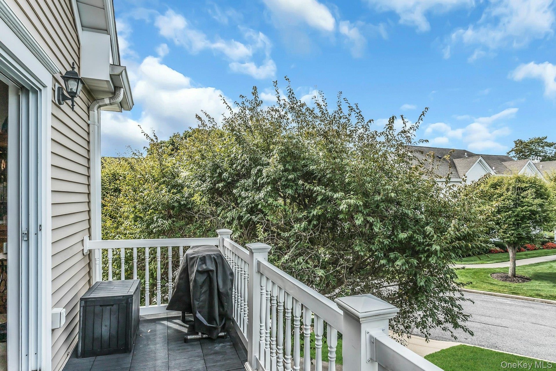 Newpointe Estates Upper 2 Bedroom 2 Bath, Corner Condo. Well Maintained Open Floor plan. Granite Kitchen w/counter seating for 6 w/new Refrigerator & Dishwasher. Formal Dining room w/Balcony. Primary Bedroom en-suite w/Large Walk-in/Closet. 2nd Bedroom w/Walk-in Closet & Balcony. Laundry Closet with Full Washer and Dryer. Large main Bath. Loft can be used as 3rd Bedroom or Guest Room w/Storage closet. Newer A/C, Water Heater, Plantation Shutters, Carpets, Newly Painted. Amenities include Clubhouse, Pool & Gym. Short Walk to LIRR and Village of Amityville.