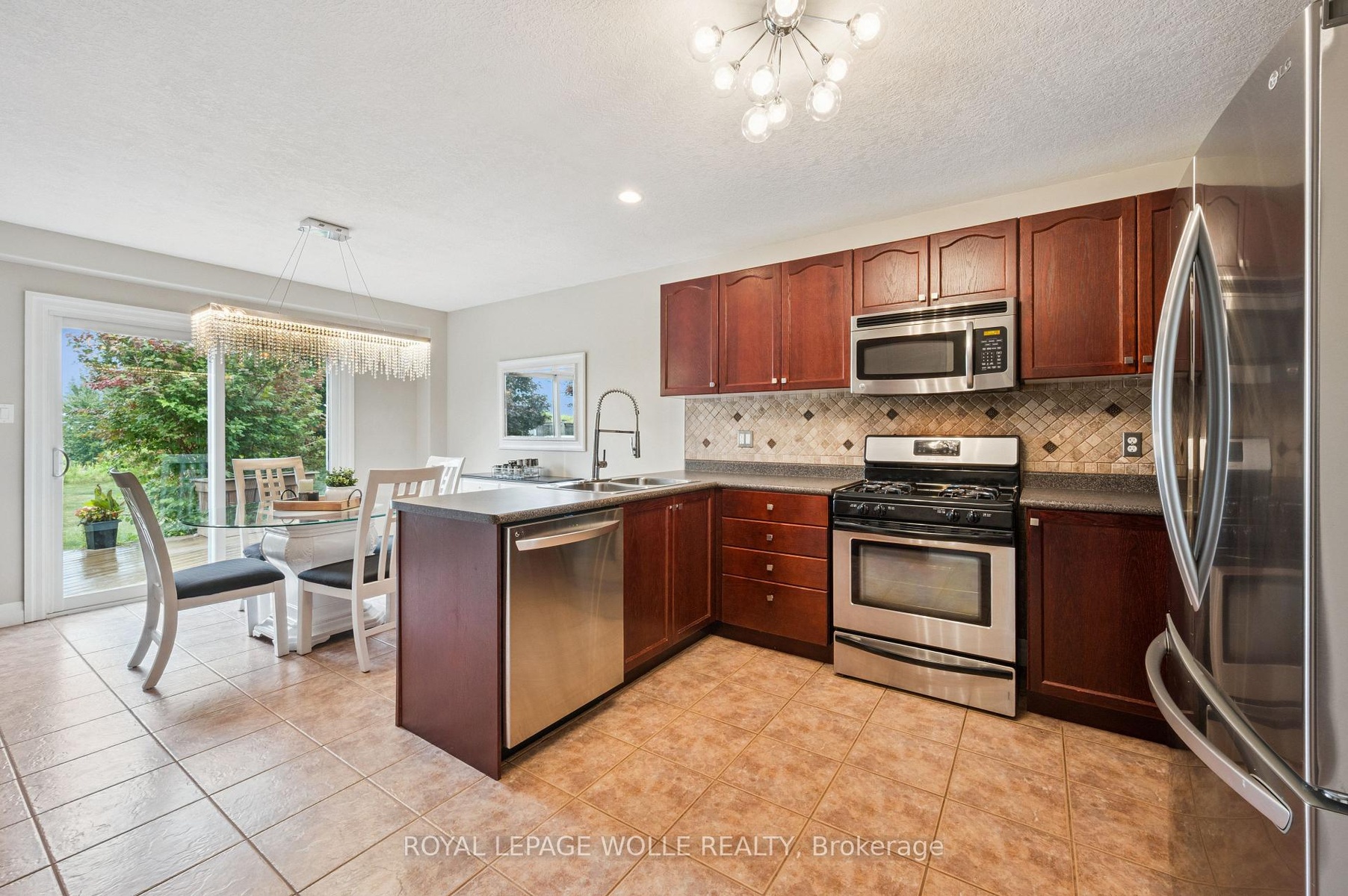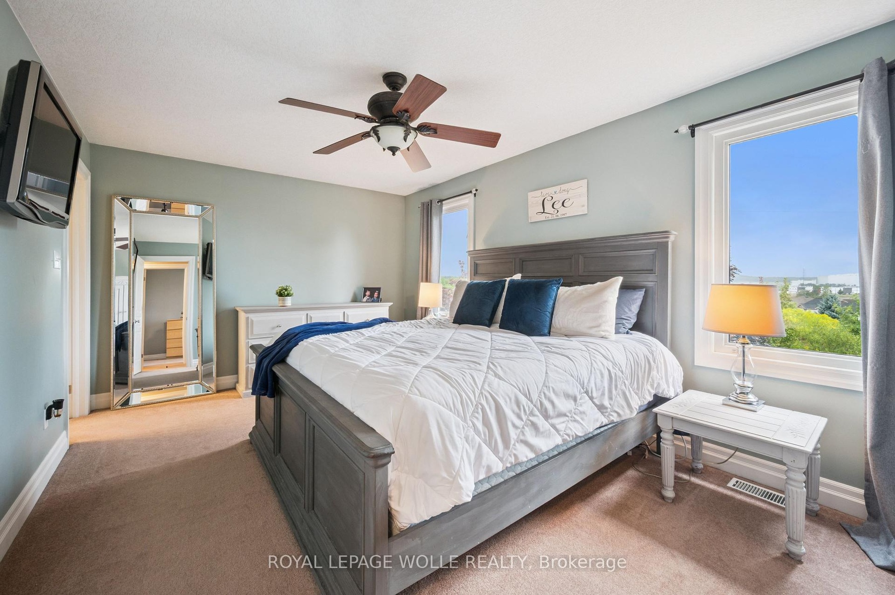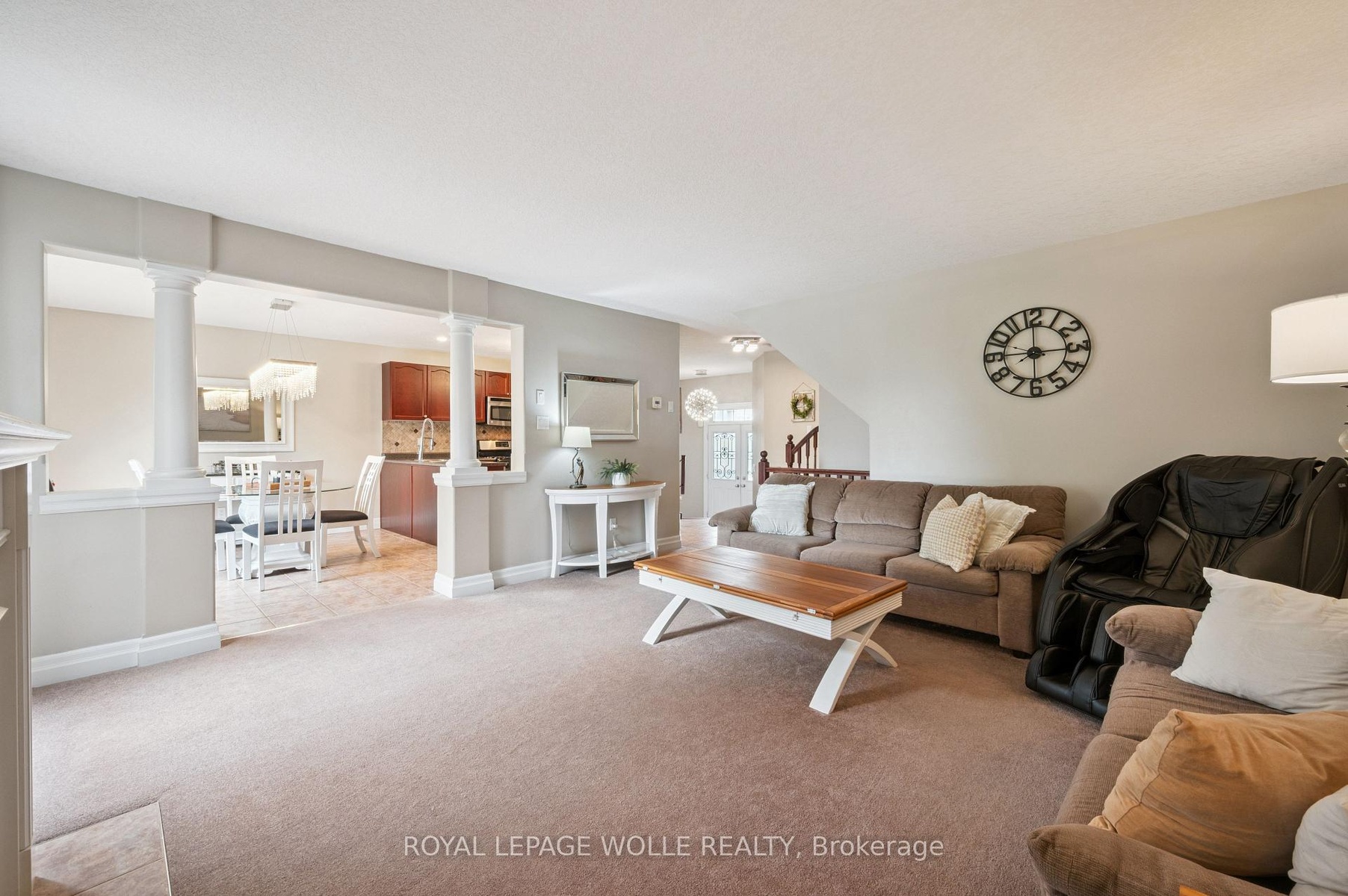 Nestled on a serene, PIE-SHAPED GREENBELT LOT in the coveted Huron Park neighborhood, this stunning Freure-built residence masterfully blends elegance with modern functionality. Step through the DOUBLE-DOOR ENTRY into a sun-drenched foyer, where sightlines immediately draw you toward the inviting living room, anchored by a COZY GAS FIREPLACE & MANTLE and flanked by transom windows that flood the space with light. Decorative pillars gracefully frame the entrance to the dining room, which flows seamlessly into a generous kitchenfeaturing ABUNDANT COUNTER SPACE, a tumbled marble backsplash, stainless steel appliances including a gas stove, and rich stained cabinetry with a practical side pantry. The CENTRAL ISLAND PENINSULA invites casual gatherings and overlooks the dining area, where sliding glass doors open onto a TWO-TIER ENTERTAINMENT-SIZED DECK, offering breathtaking views of the expansive backyard and uninterrupted greenspace stretching toward Banffshire Park. Upstairs, discover a VERSATILE FAMILY ROOM and convenient upper-floor laundry, along with a PRIMARY SUITE COMPLETE WITH A WALK-IN CLOSET AND A 3PC ENSUITE featuring a glass-enclosed tiled shower. Two additional bedrooms and a well-appointed family bathroom complete this level. The UNSPOILED LOWER LEVEL presents a blank canvas, bathed in natural light from large windows and equipped with rough-in plumbing for a future bathroom. PRACTICALITY MEETS FUNCTIONALITY with interior access to the double car garage, a newly paved driveway (2025) accommodating up to four vehicles, a new roof (2021), and updated lighting throughout. Embrace a lifestyle of effortless connectivity, with quick access to major routes including the Conestoga Parkway and Highway 401, and immerse yourself in the lush, natural beauty of the Huron Natural Area, just moments from your door. This is more than a houseits the backdrop for your next chapter.